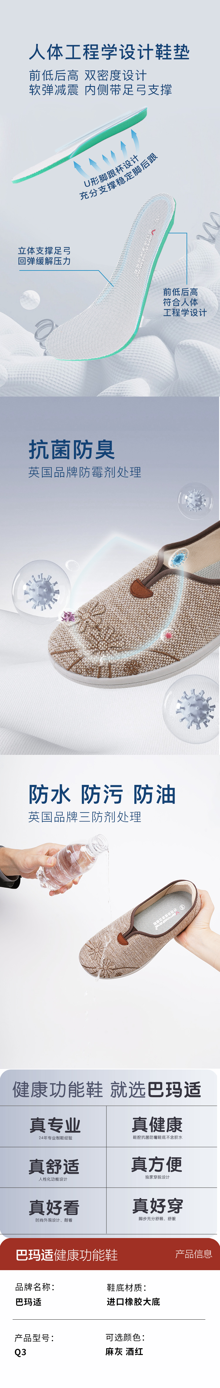 巴玛适软底软面女鞋透气加肥加宽老人鞋防滑轻便脚肿女宽松妈妈鞋Q3