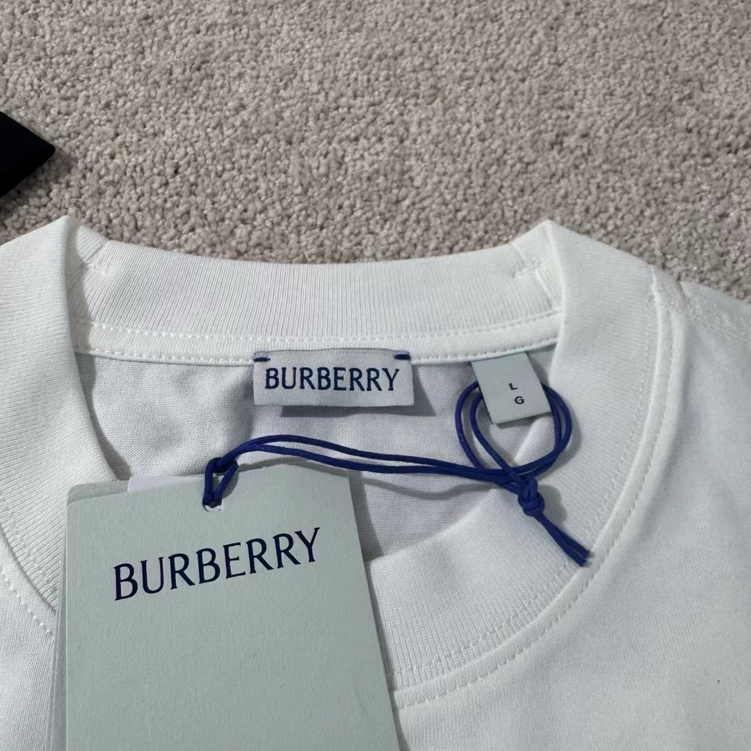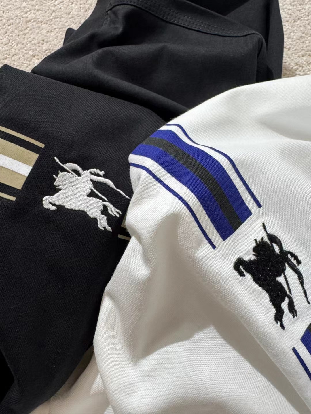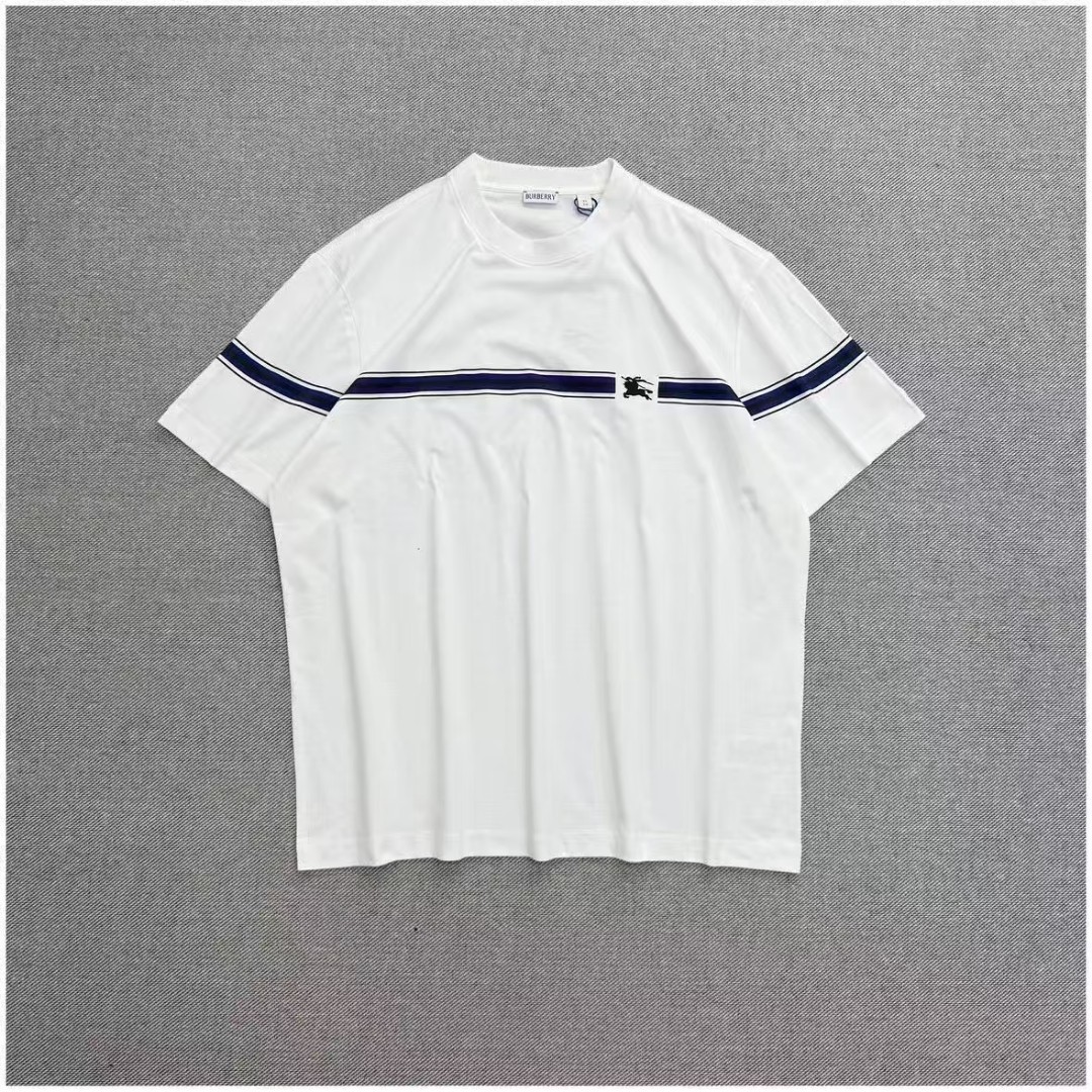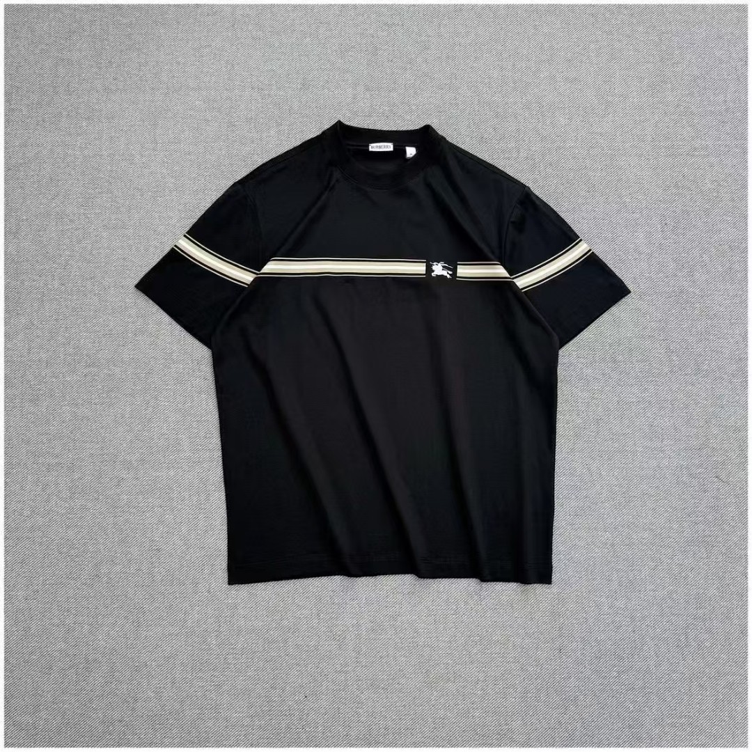 现货 巴宝莉BUR胸口战马刺绣条纹圆领短袖T 半环身印花