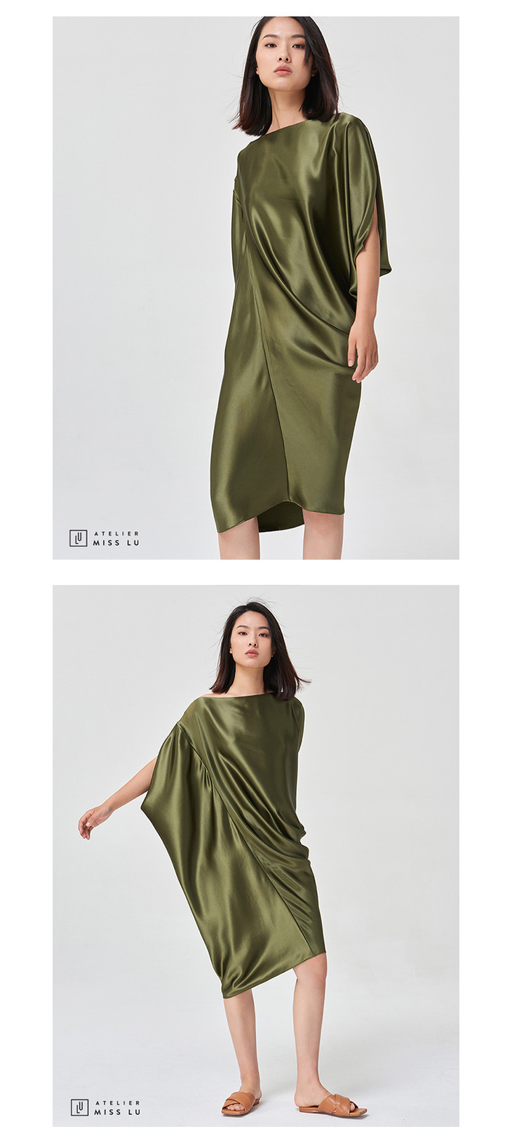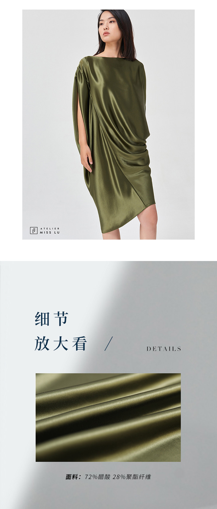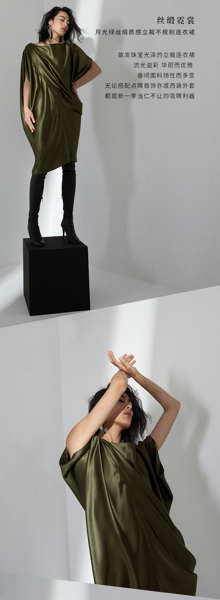 【丝缎霓裳】月光绿丝缎质感立裁不规则连衣裙