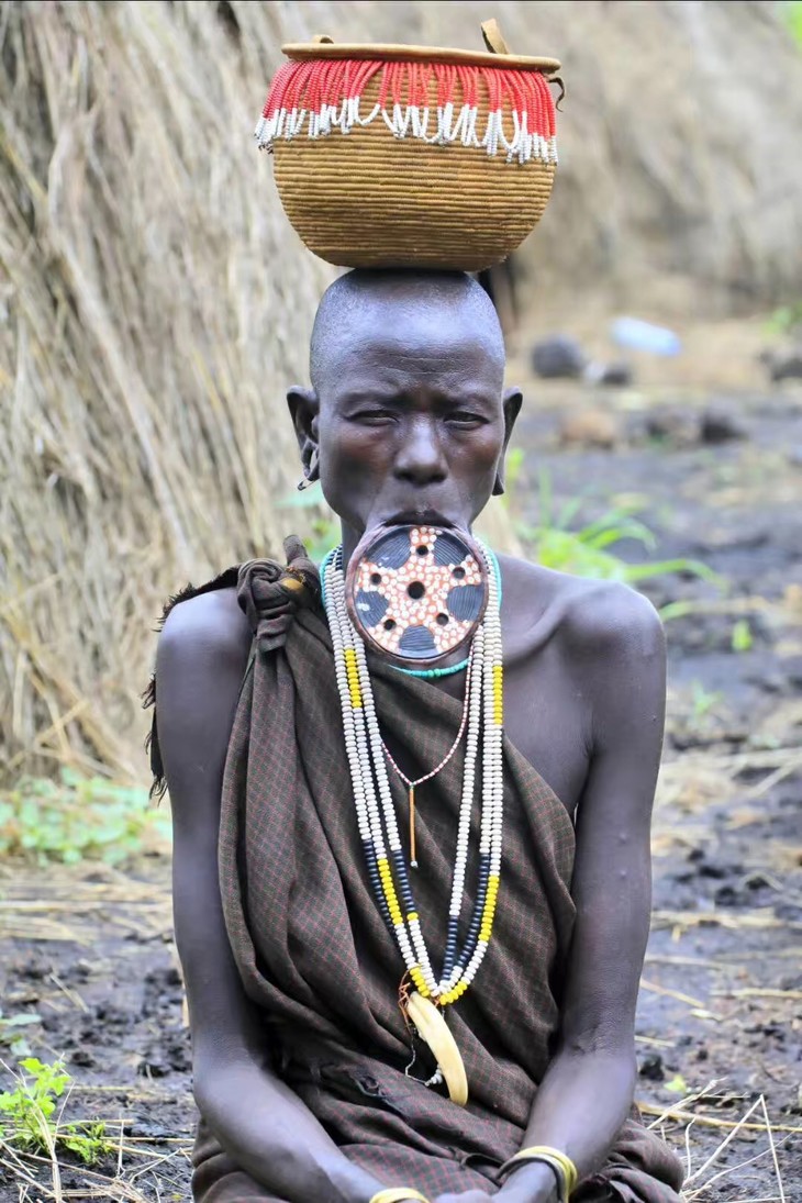 早餐后,驱车2小时左右到达居住在马戈国家公园深处的【摩西(Mursi)部落】 (也被称为唇盘族)。摩西女人从很小的时候就开始在下嘴唇划开一个小口,放入貌似树枝修剪的东西,将开口撑开(类似女人打耳洞),一段时间开口长好后,再放入一个小小的泥烧的盘子,随着年龄的增大,盘子的尺寸也逐渐增大,最大的能有20几公分。下午驱车前往图米。 傍晚参观【哈马尔(Hamar)部落】,哈马尔女人是这些个部落里最美丽的女人。她们的时装就 是一张羊皮裹在下身做裙子,头发编成无数的小辫子,头发上涂着牛油和红泥土混合的涂料,油亮的 棕色。哈马尔女人大多赤裸着上身,而脖子上的金属项圈会会告诉我们该女子的身份。