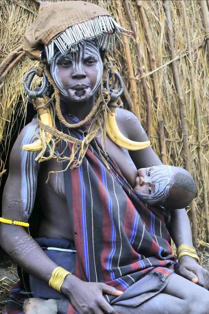 早餐饭后,驱车前往【乃加汤族(Nyangatom)部落】,部落的女人们的脖子上带满了各式各样,长短不一,颜色不同的项链,很是喜庆。参观完Nyangatom后,我们将前往居住在奥莫河畔的【卡洛(Karo)部落】,卡洛人喜欢在身上和面部涂上各种各样的花纹,世世代代悠闲地生活在奥莫河畔。 下午将参观住在奥莫河对岸的【达桑内科(Dassanech)部落】。部落位于距离肯尼亚边境大约28公里、距南苏丹大约150公里的边境小镇,部落人相对友好,女人们上身裸露,脖子上装饰着五颜六色的项链,下唇上插上不同的装饰物,孩子们跑前跑后让你拍照。