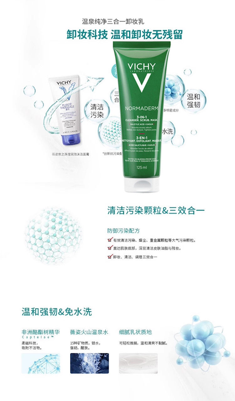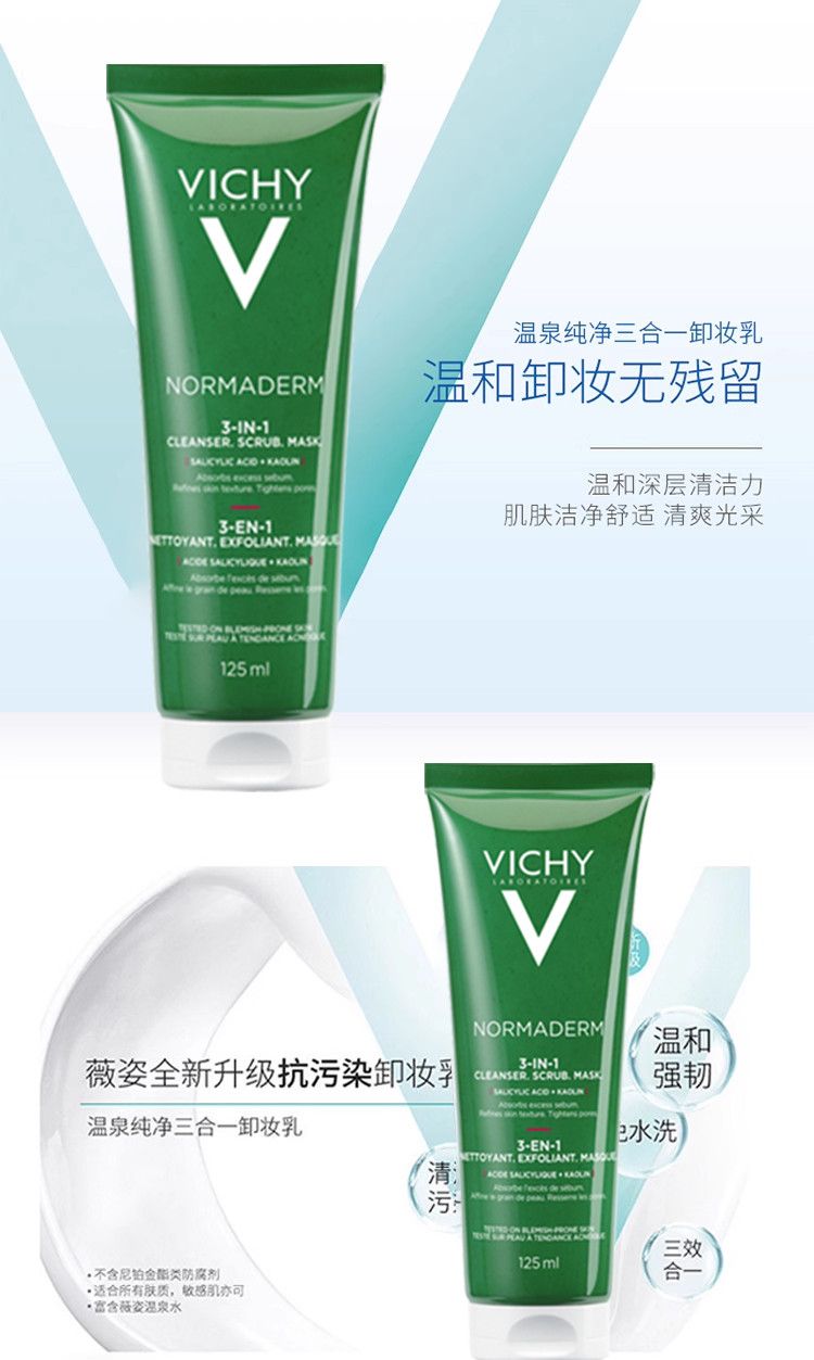 薇姿净颜无暇三合一磨砂面膜125ml补水保湿