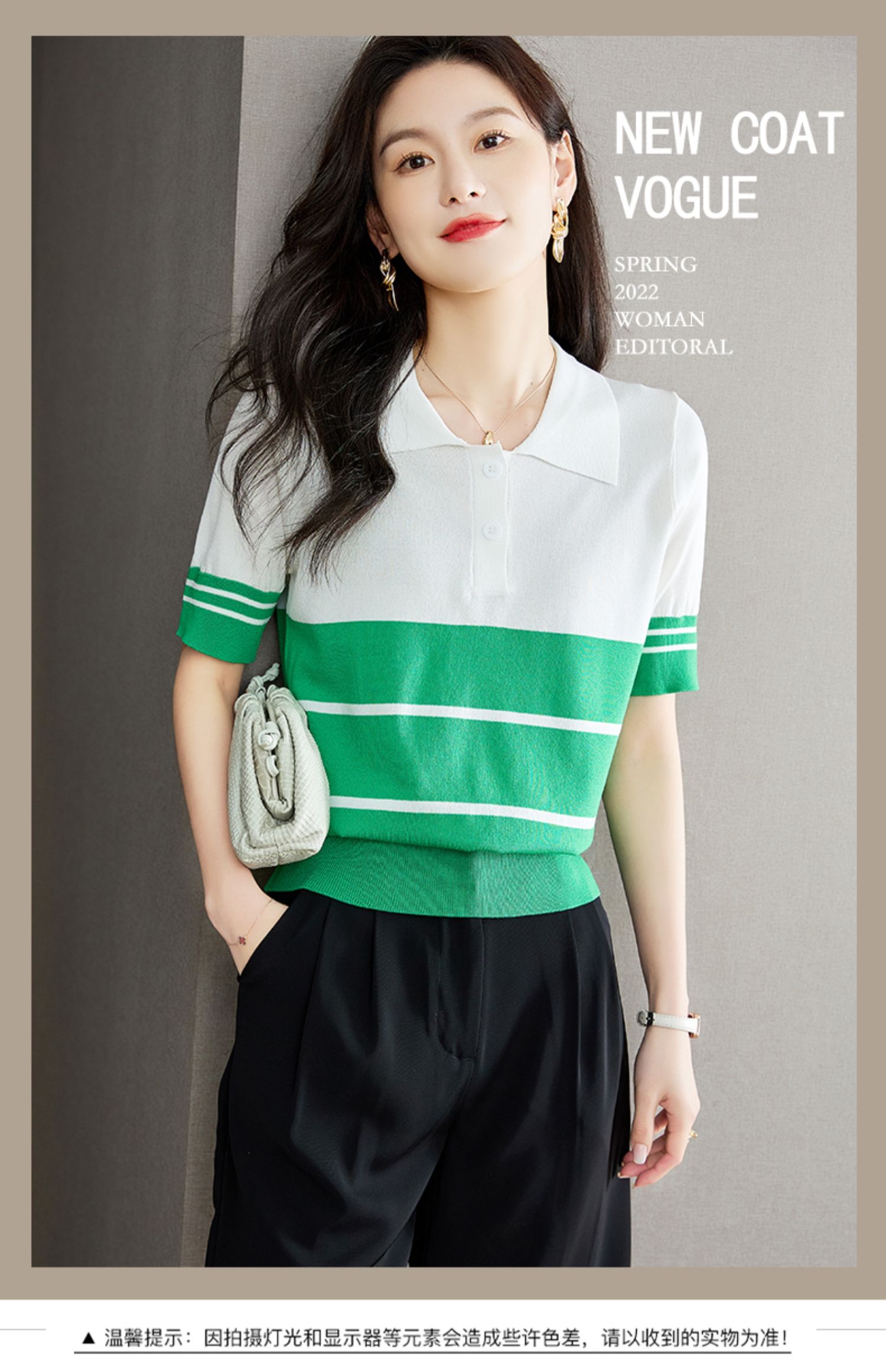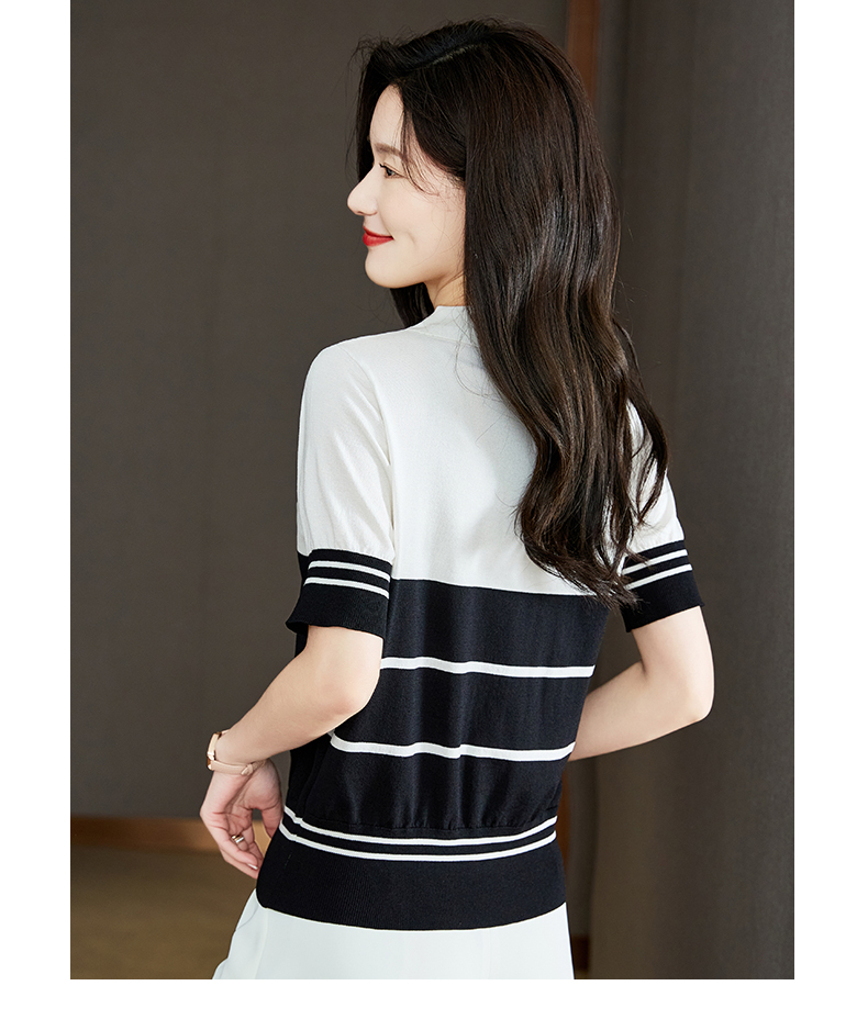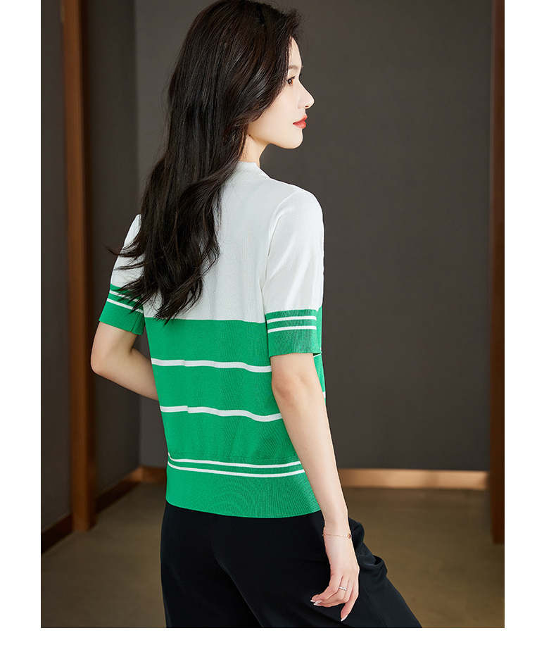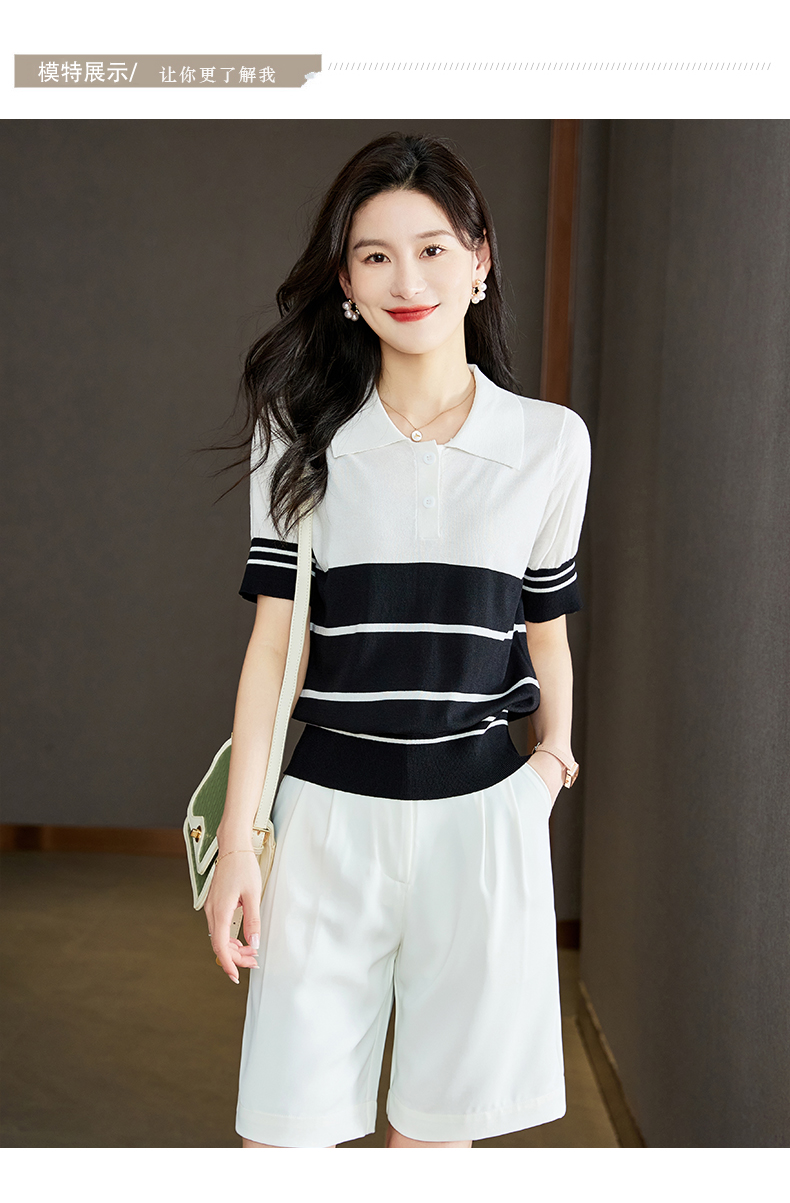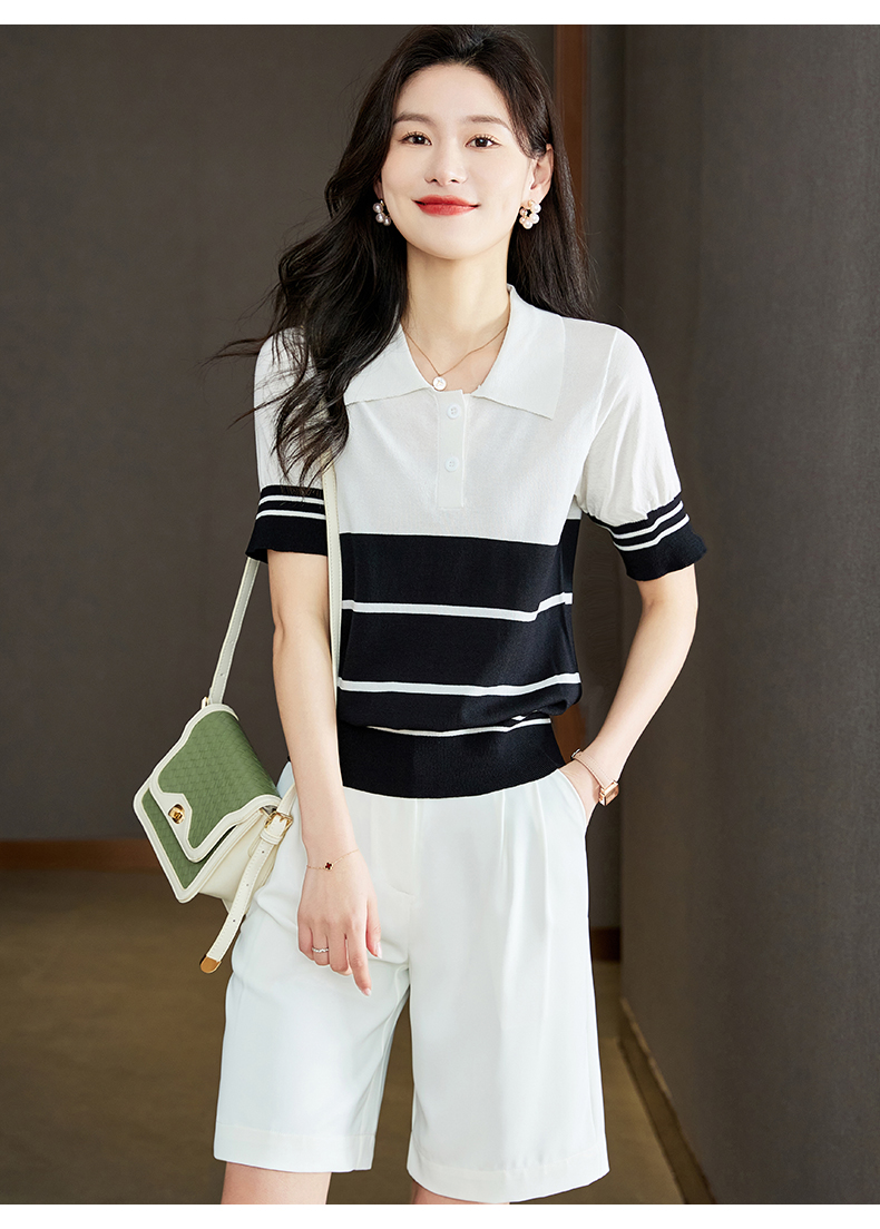 宽松撞色,短袖套头薄款翻领t恤打底冰丝针织衫CC-J211