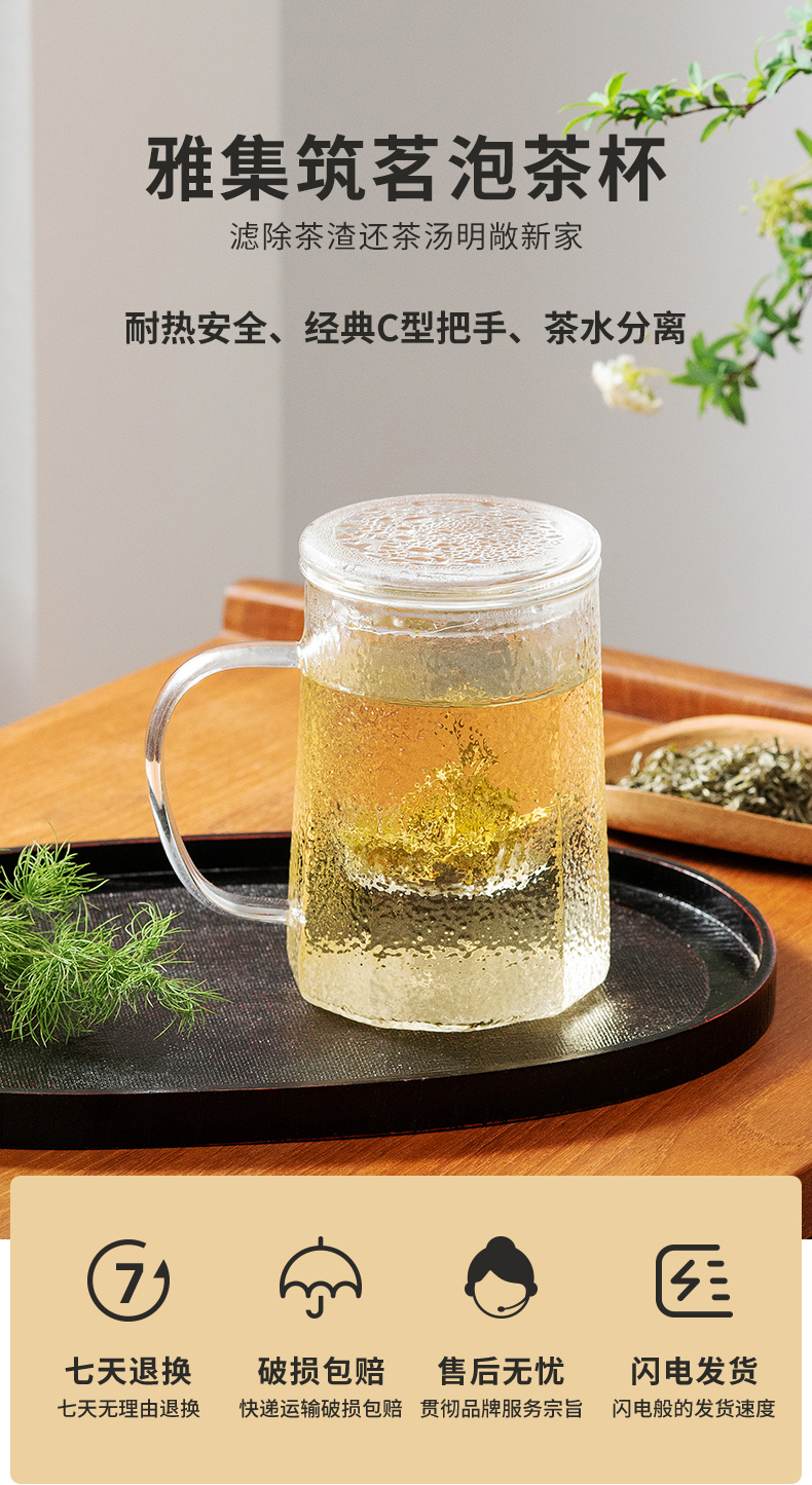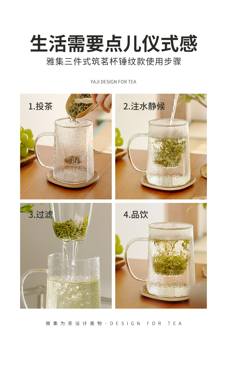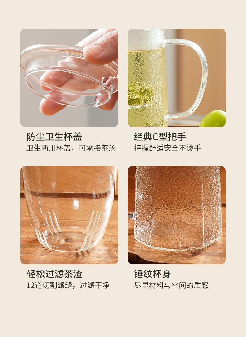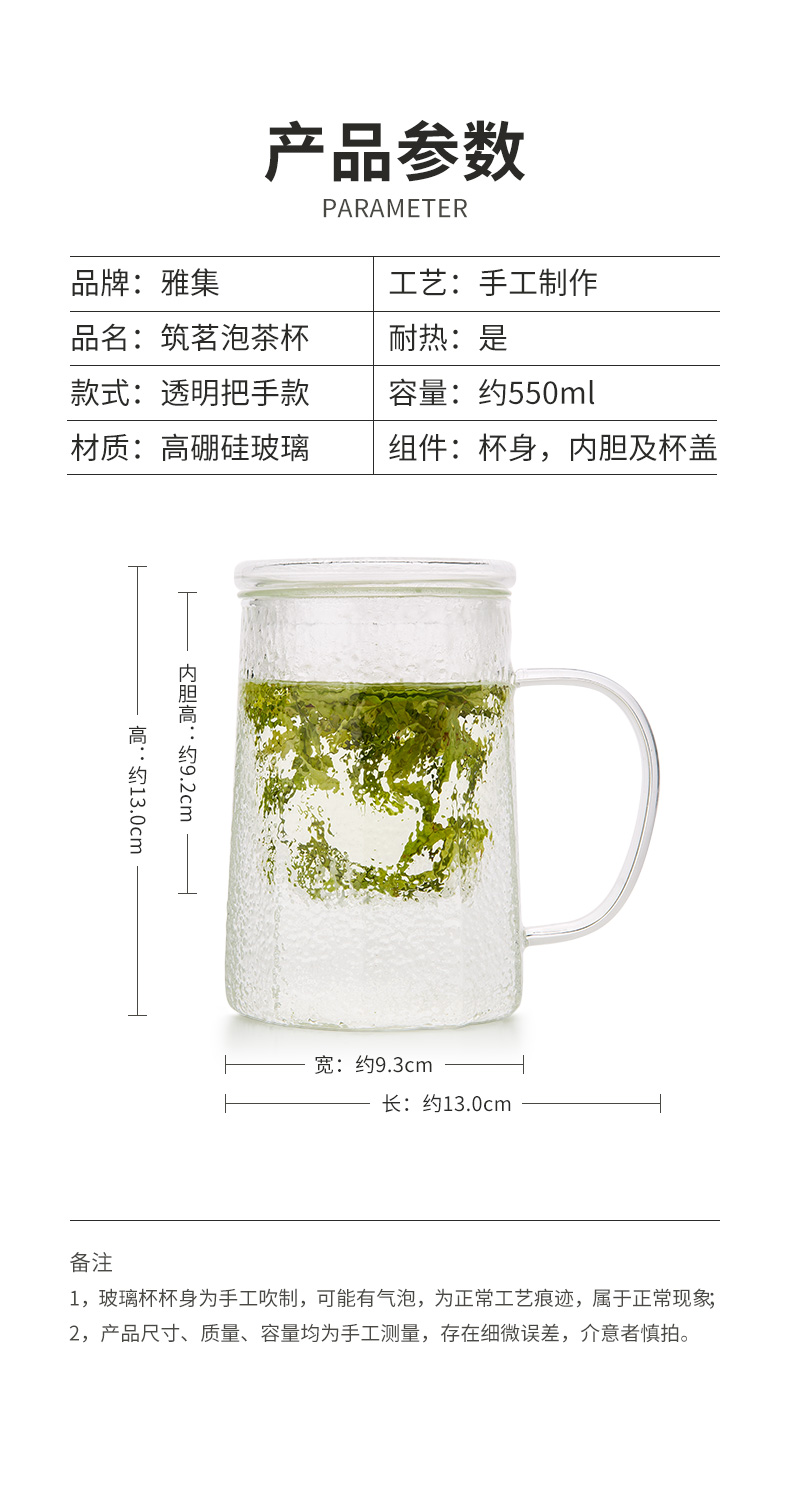 雅集玻璃杯锤纹筑茗杯550ml