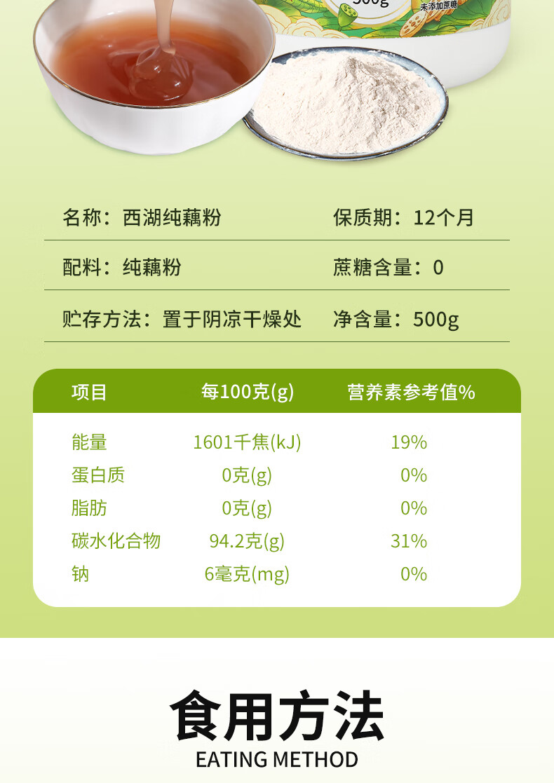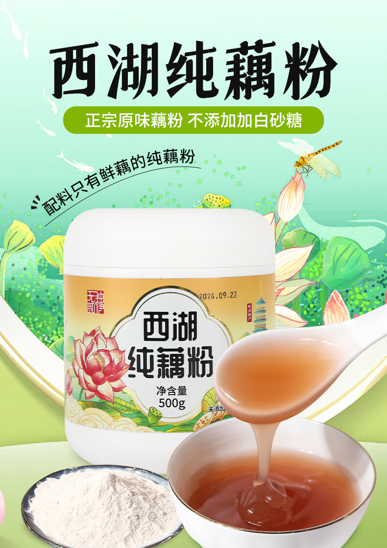 无贰独伊西湖纯藕粉500g