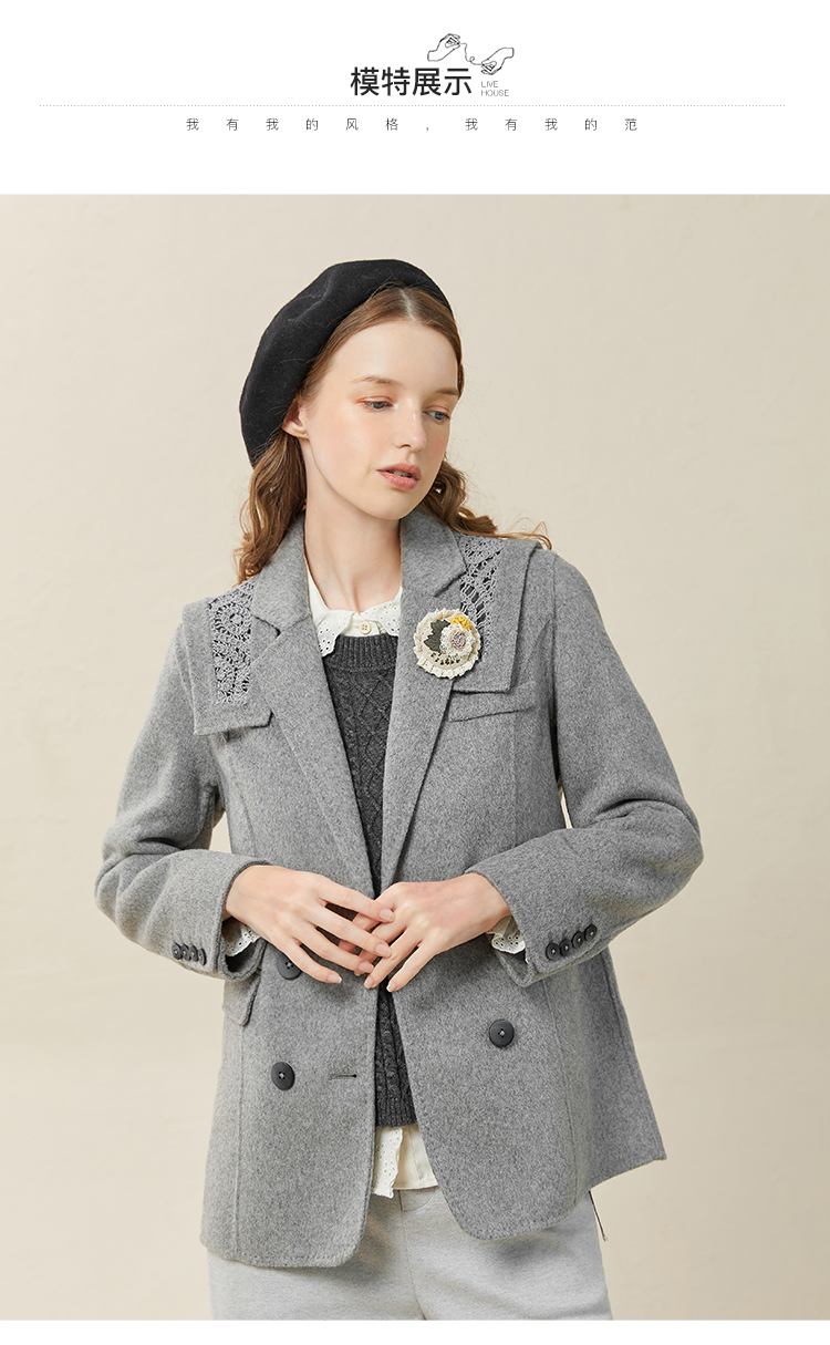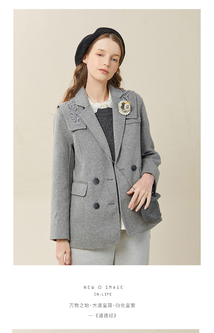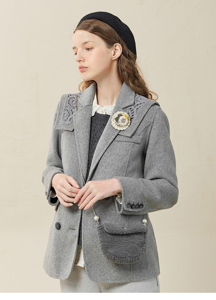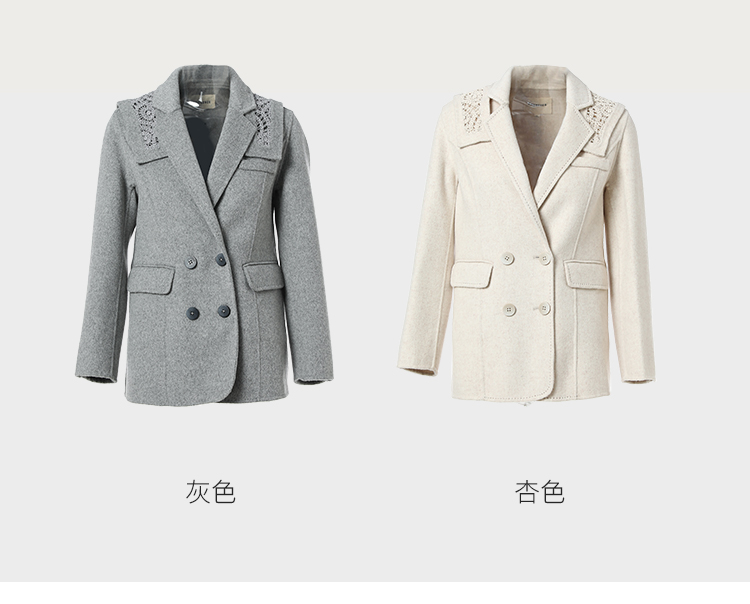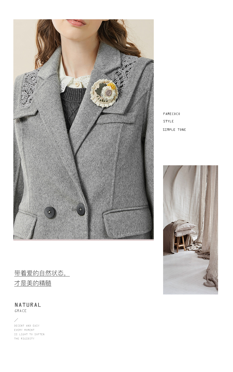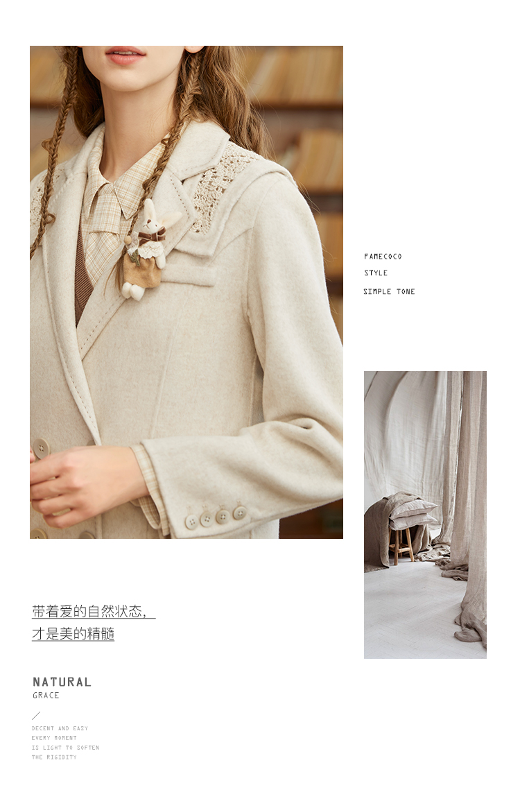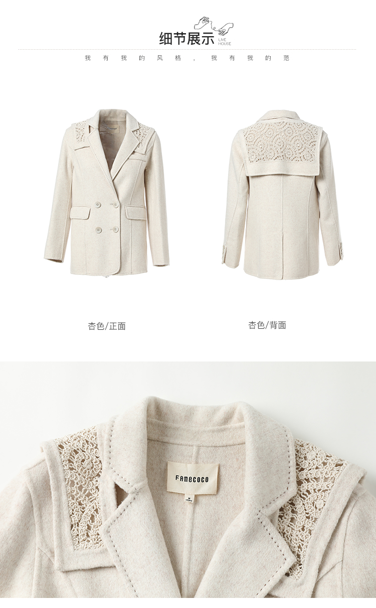 Famecoco范可儿双面呢西服女冬款羊毛西装外套可拆卸披肩F228AW003