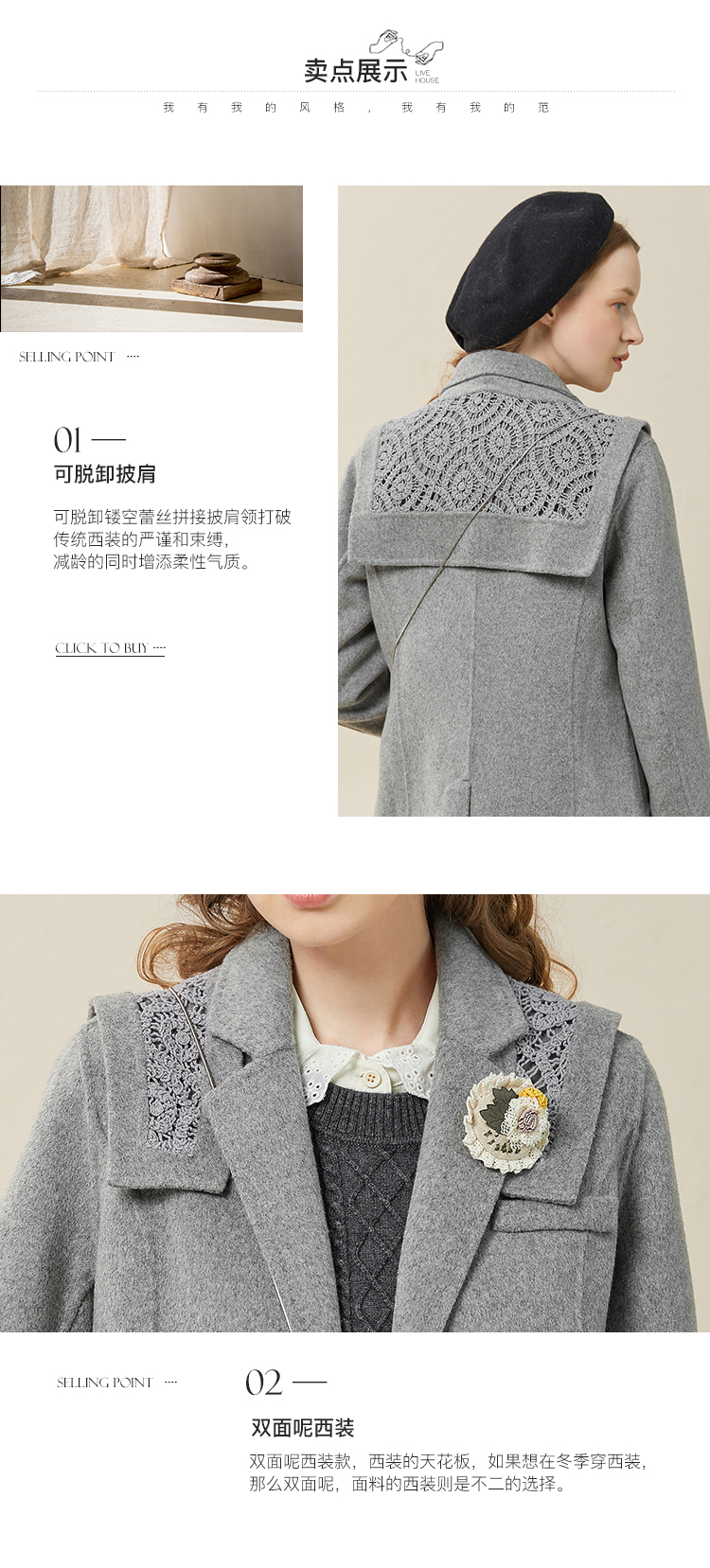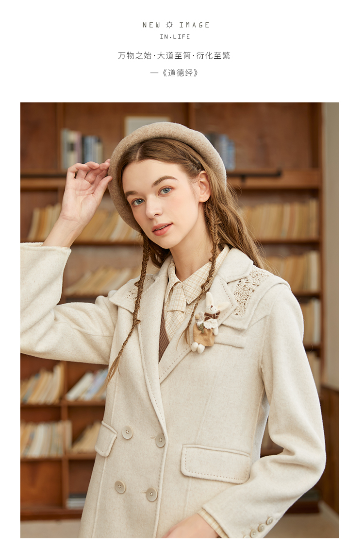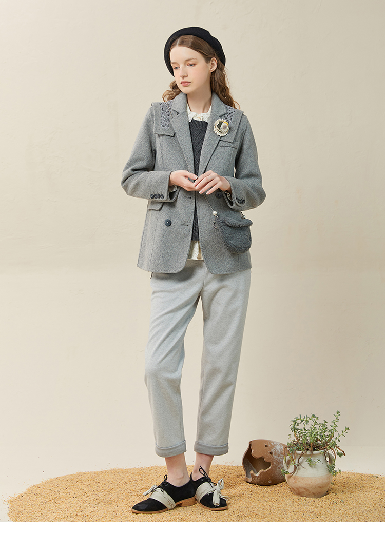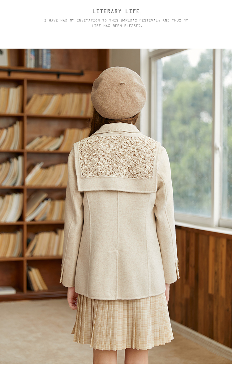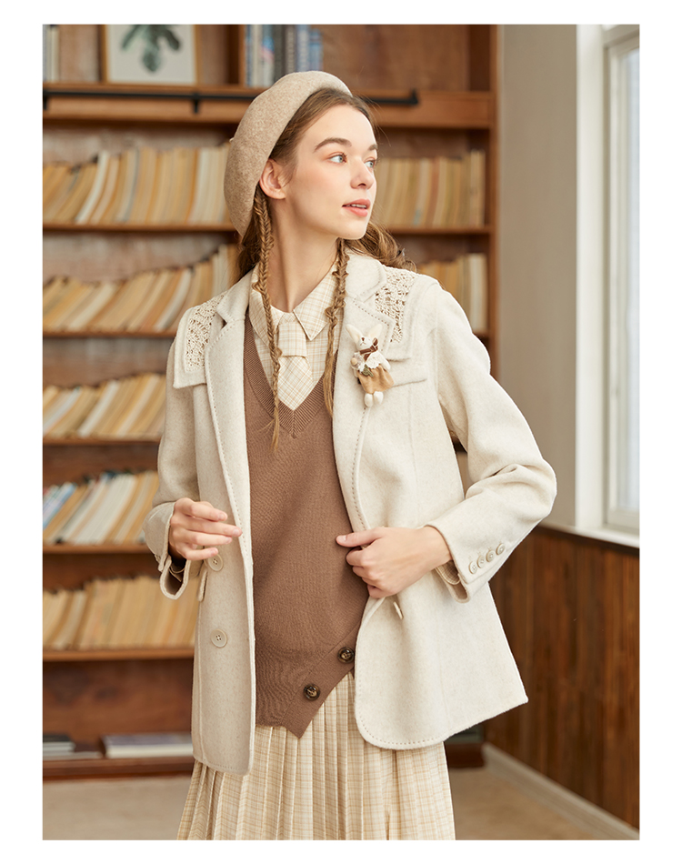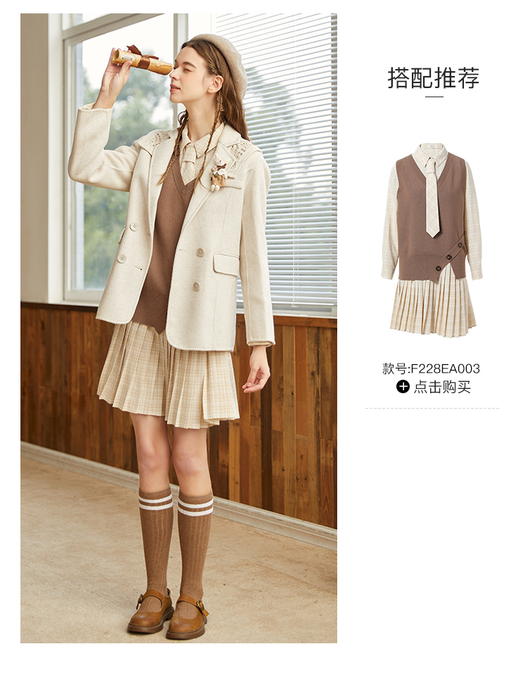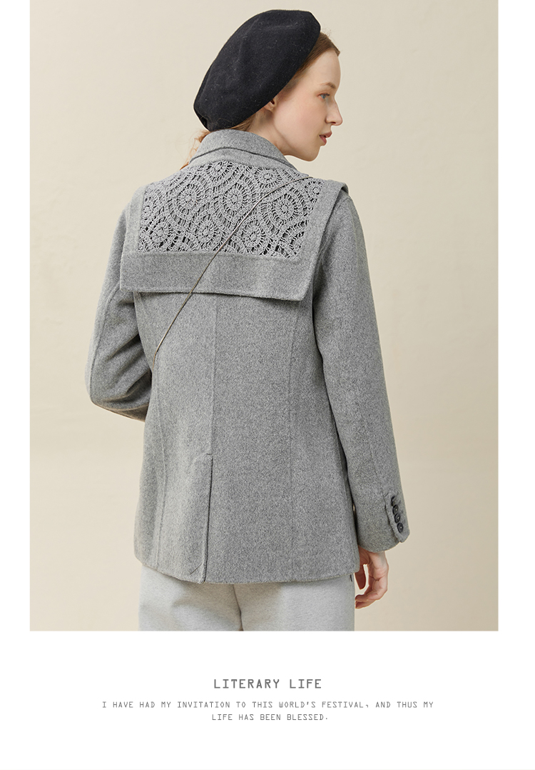 Famecoco范可儿双面呢西服女冬款羊毛西装外套可拆卸披肩F228AW003