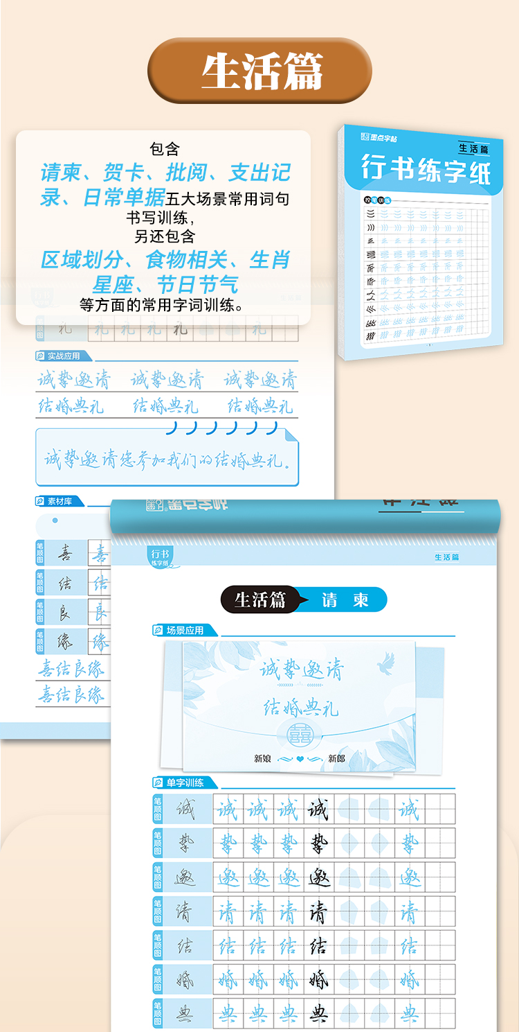 墨点字帖 行书练字纸 郭建明手写体生活职场常用字硬笔书法临摹专用练字本