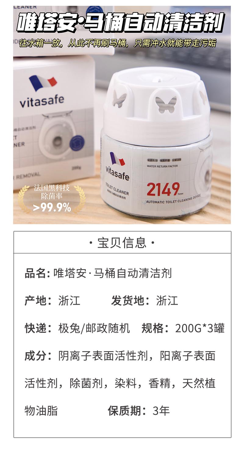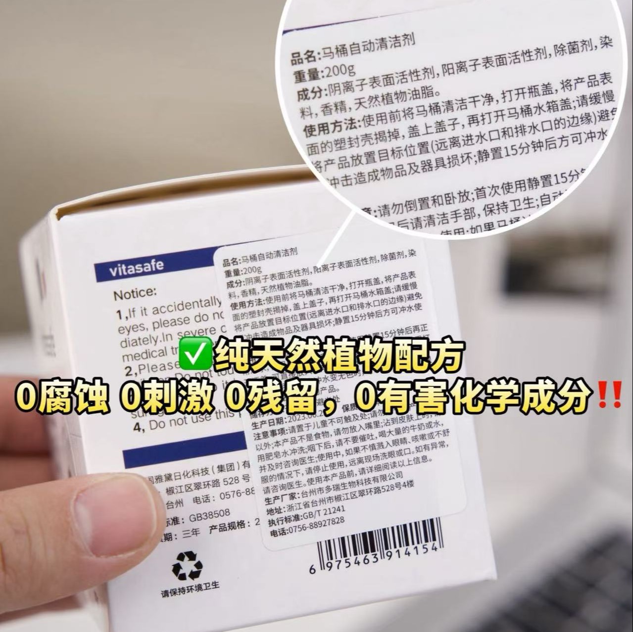 【唯塔安自动除菌马桶清洁剂】法国祛垢黑科技+天然植物配方+99.9%除菌,往水箱放2个月不用刷马桶,每次冲水,都是一次严格的灭菌作业,轻松带走尿便垢、黄渍等陈年老垢,有效期至2026年6月,放心囤
