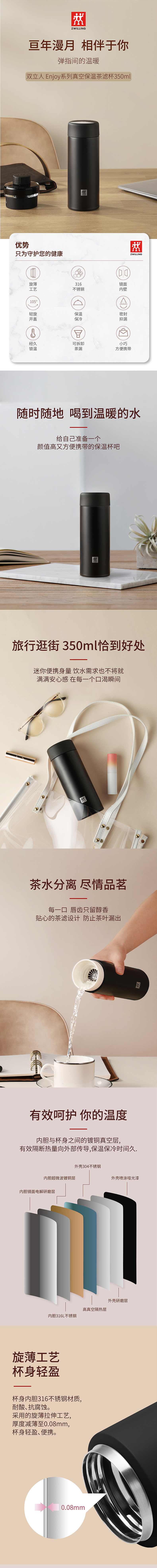 ZW-BP118 双立人 Enjoy系列真空保温茶滤杯350ml(黑色)