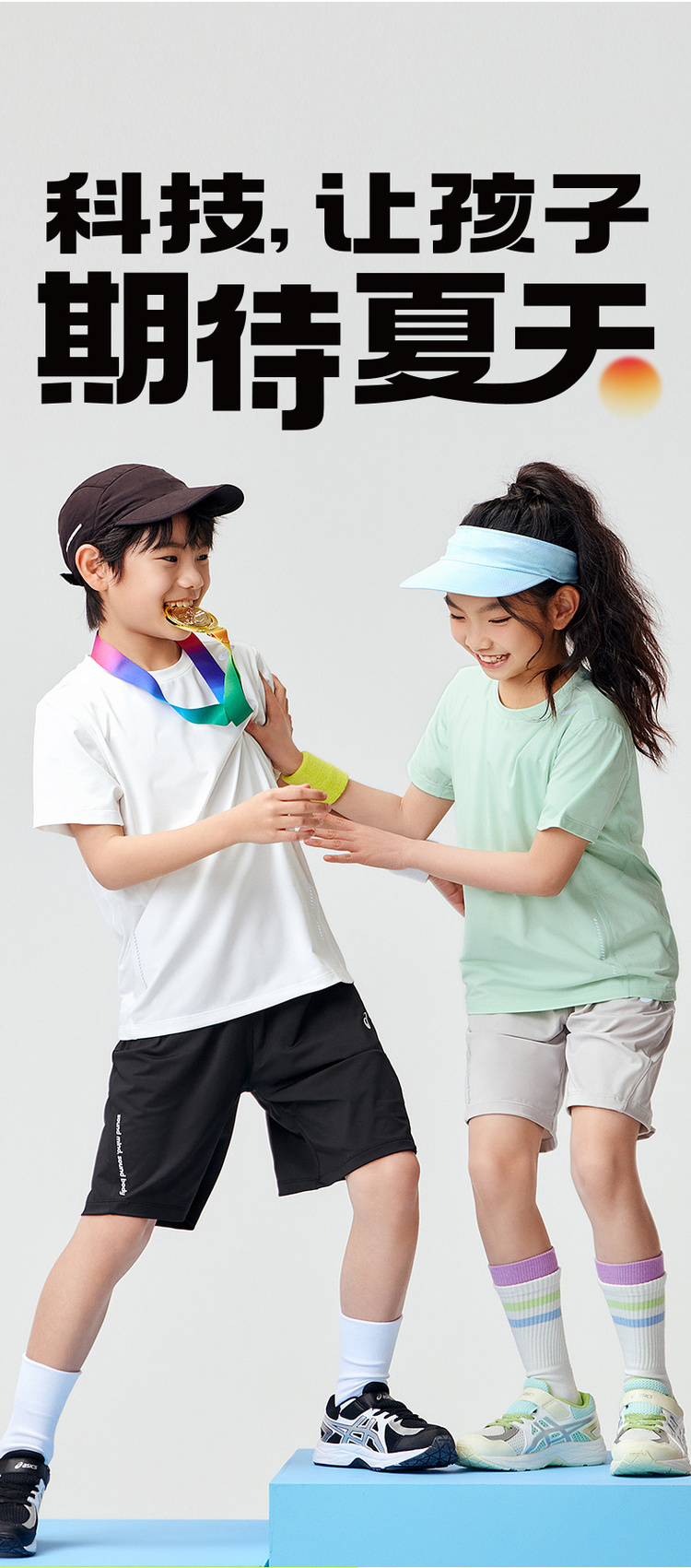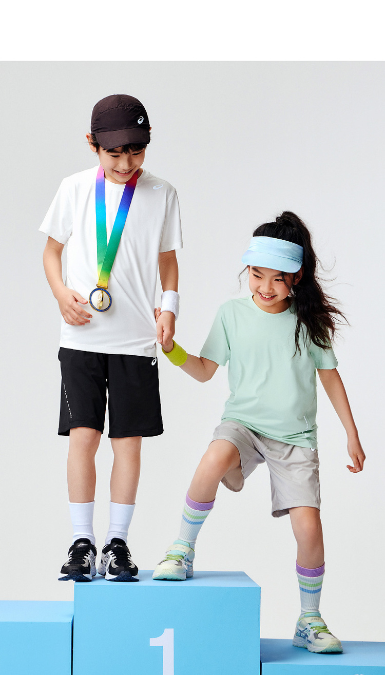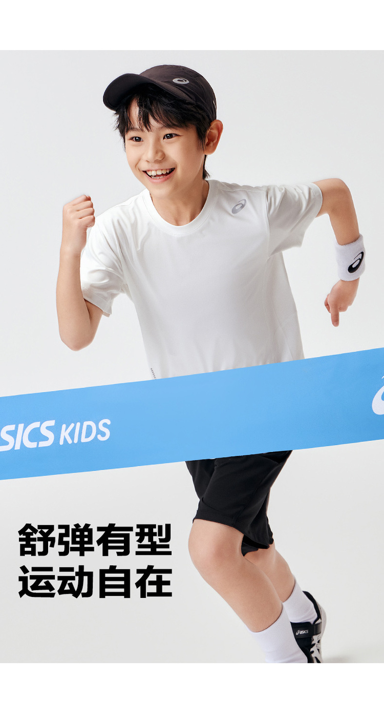 ASICS/亚瑟士童装2024春夏季男女童吸湿速干柔软舒适弹力短袖T恤