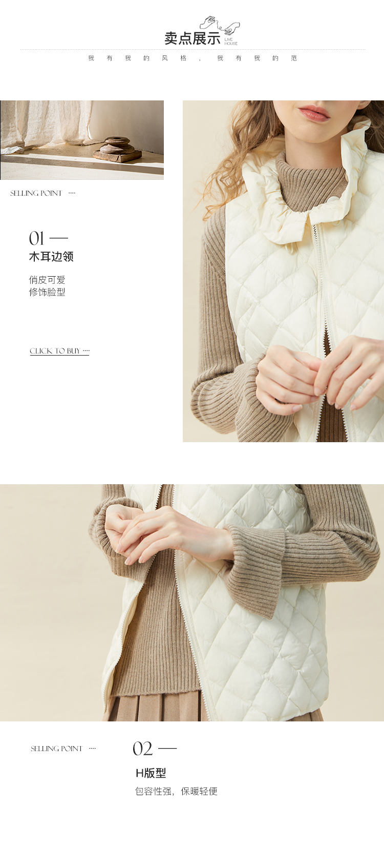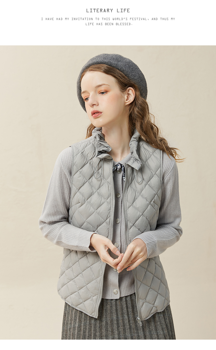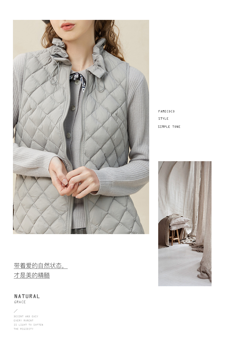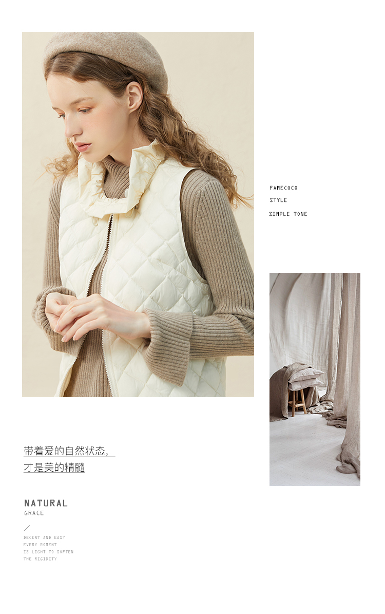 famecoco范可儿木耳花边轻薄羽绒马甲女小个子马夹内搭F228CR015