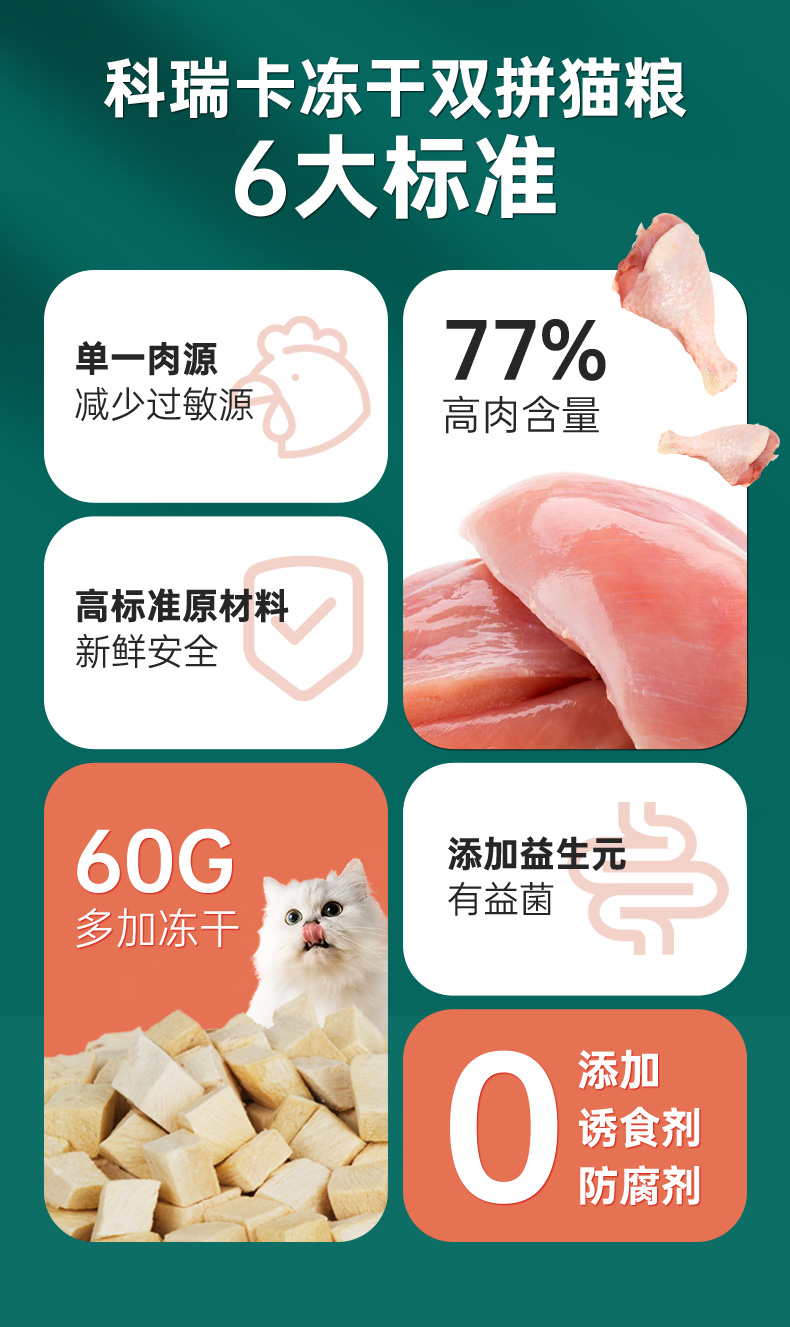 4⃣【福利囤货】【2 包 85 折】【4 包 8 折】科瑞卡低温烘焙猫粮 成猫幼猫全价全期 无谷鲜肉烘焙粮 加冻干碎