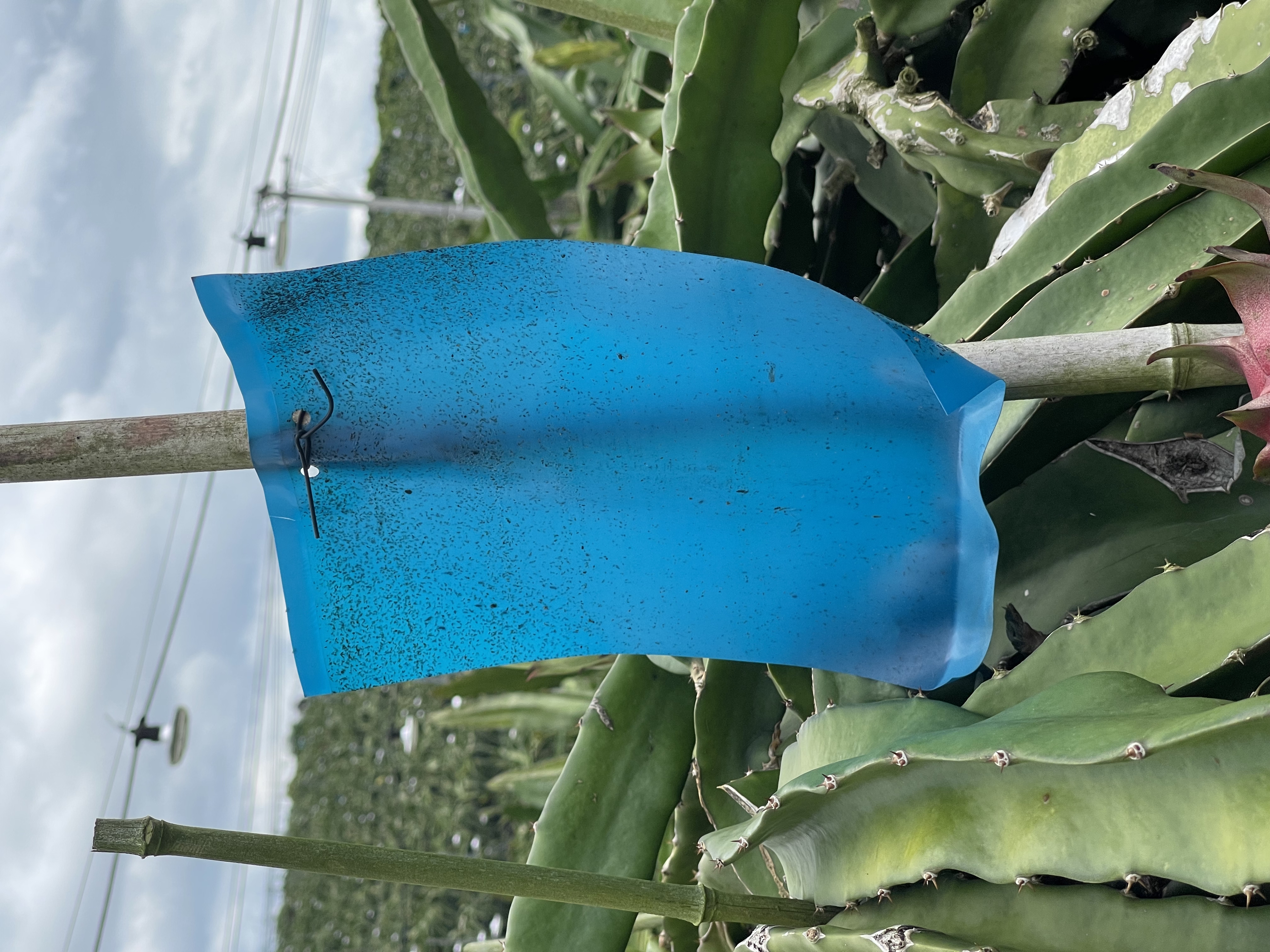 果地中随处可见捕蝇纸,进行对飞虫的物理防治,避免虫害的产生