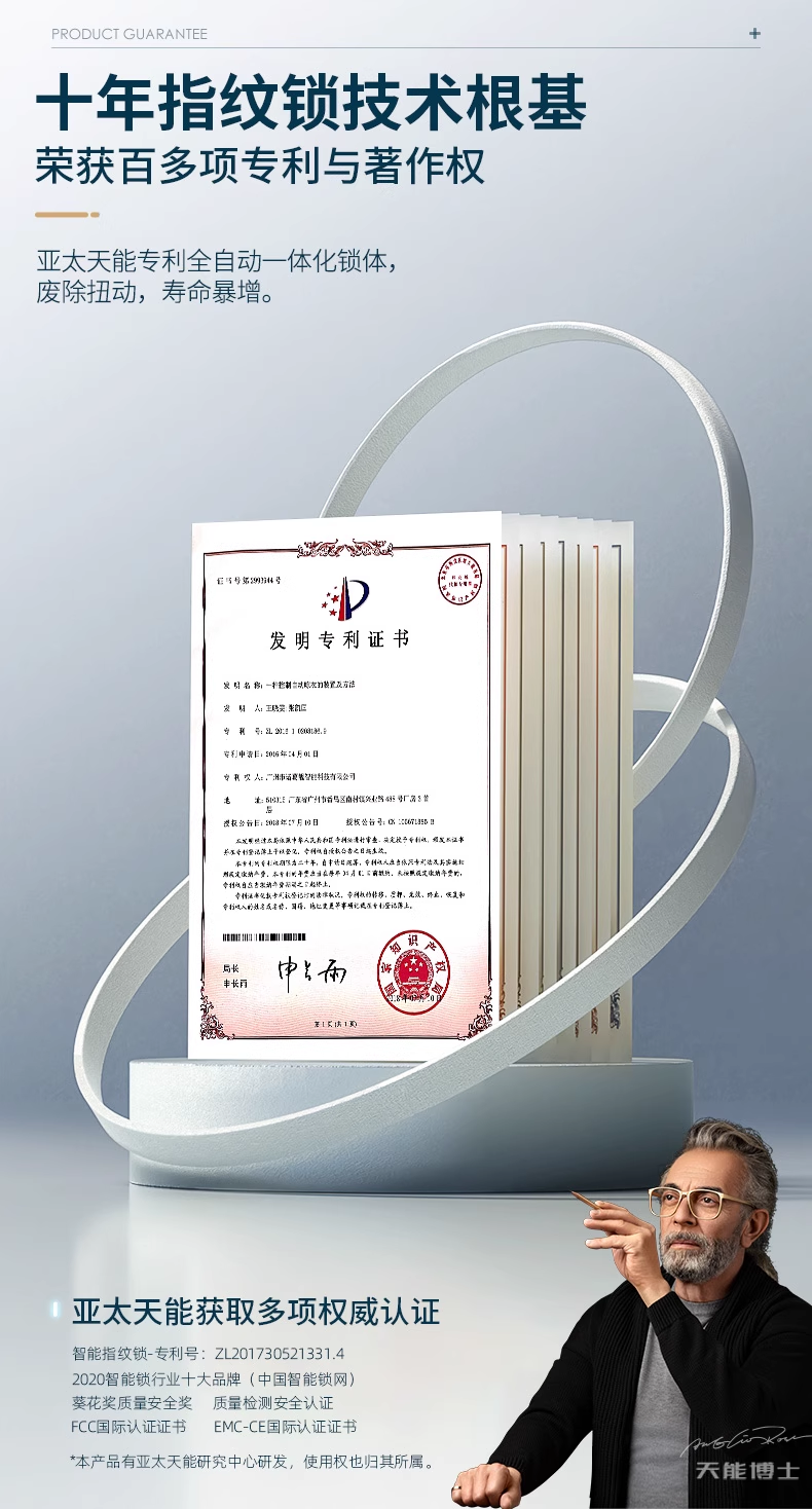 广东亚太天能科技股份有限公司(股票代码833559)成立于2011年,旗下品牌:亚太天能TENON。注册资本1.02亿,是国家高新技术企业、中国首家智能指纹锁行业上市公司。