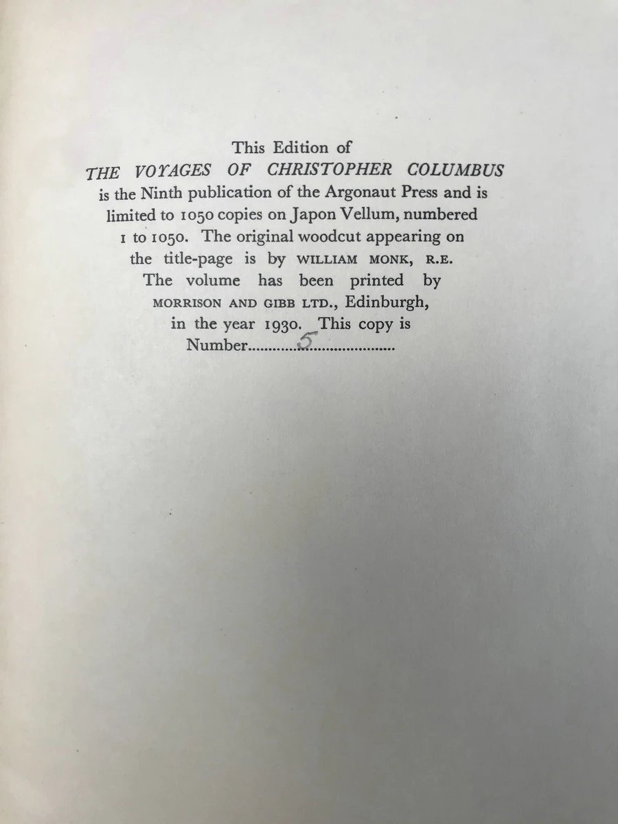 限量版毛边本!有编号!1930年 哥伦布航海记 5幅地图 布面精装16开