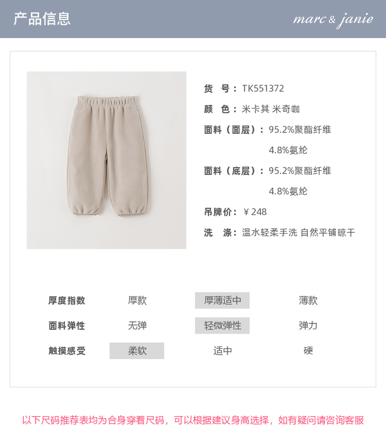 【科技发热】马克珍妮男童双面奥奥绒出行暖肤裤2025年冬装新款551372