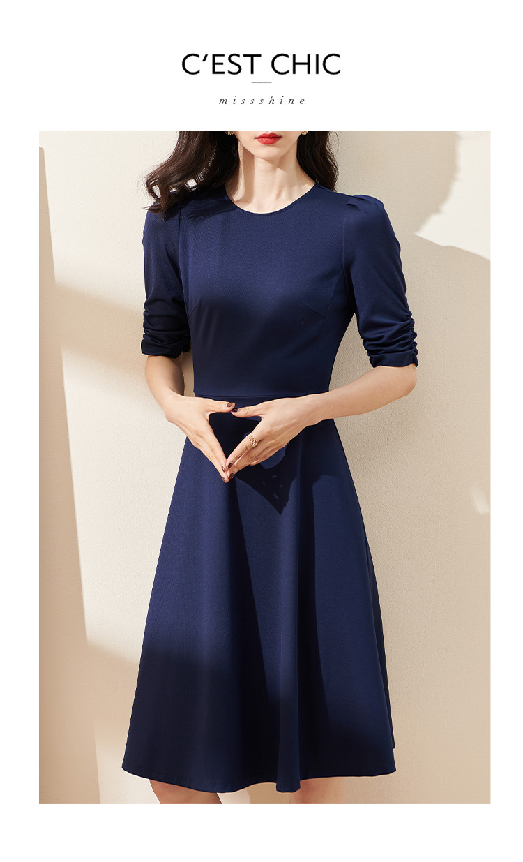 剩M/L 米思阳复古A字裙春季新款时尚泡泡袖针织连衣裙