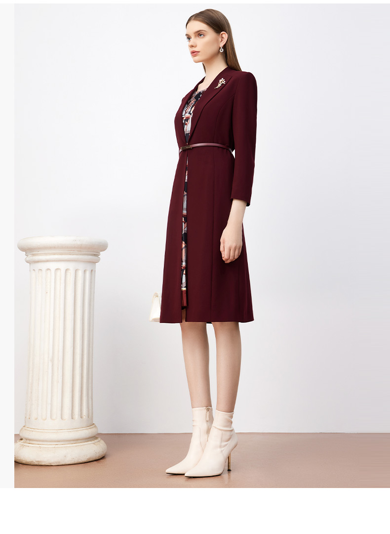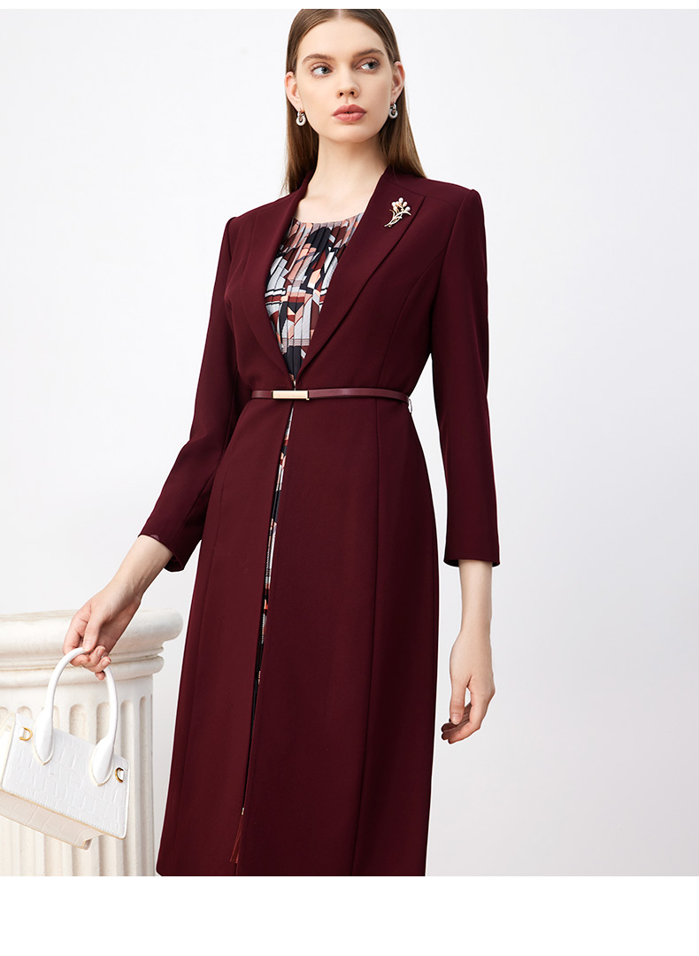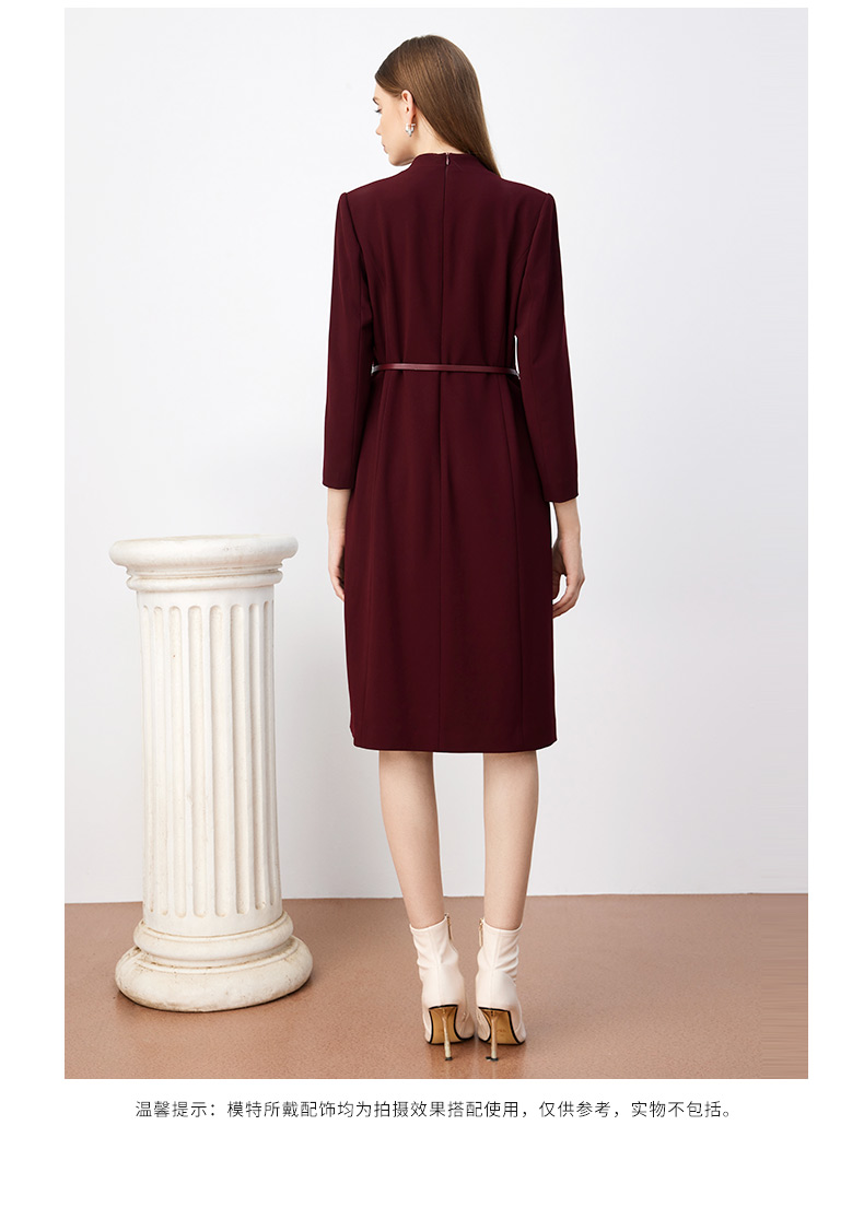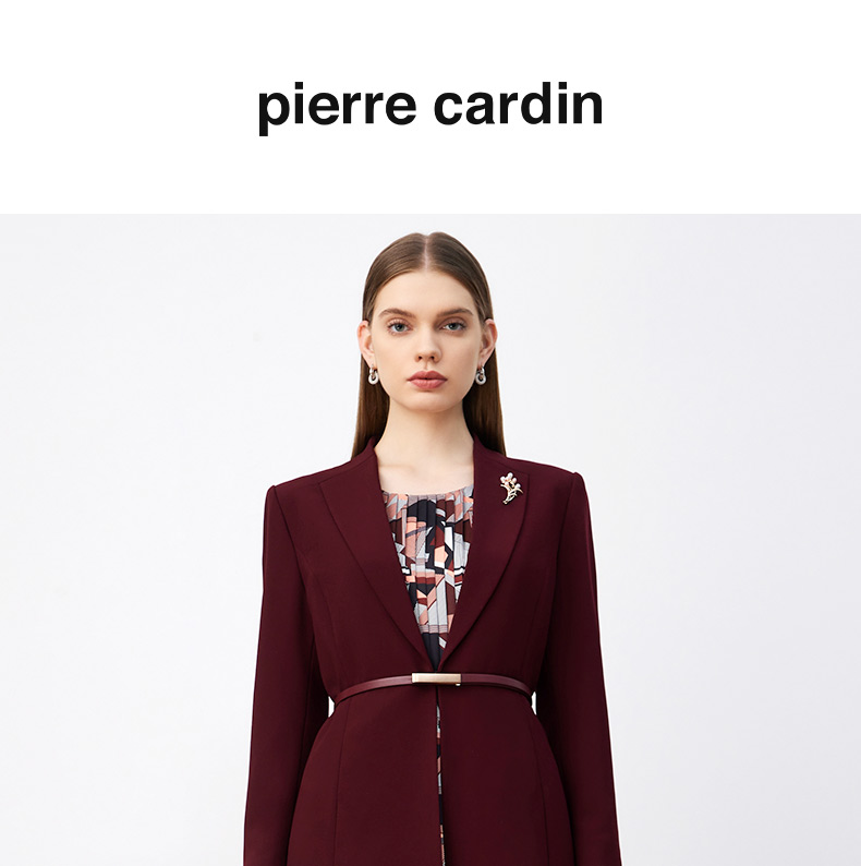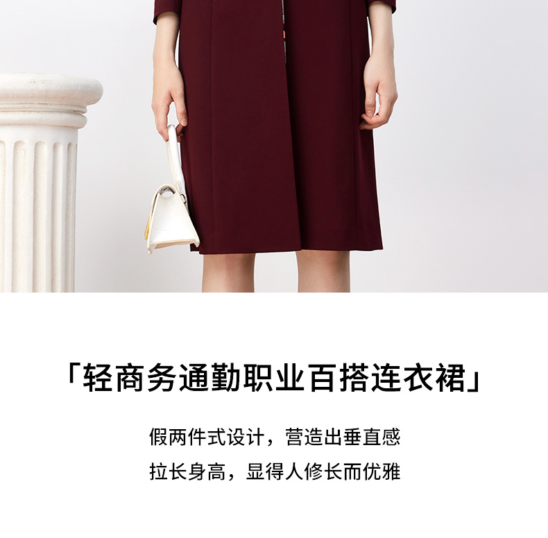 皮尔卡丹女装连衣裙秋季新款红色假两件端庄气场裙子P3344E3931T0