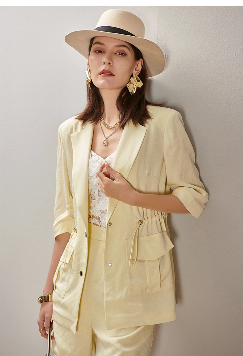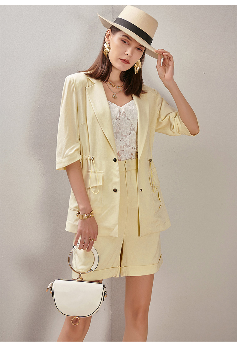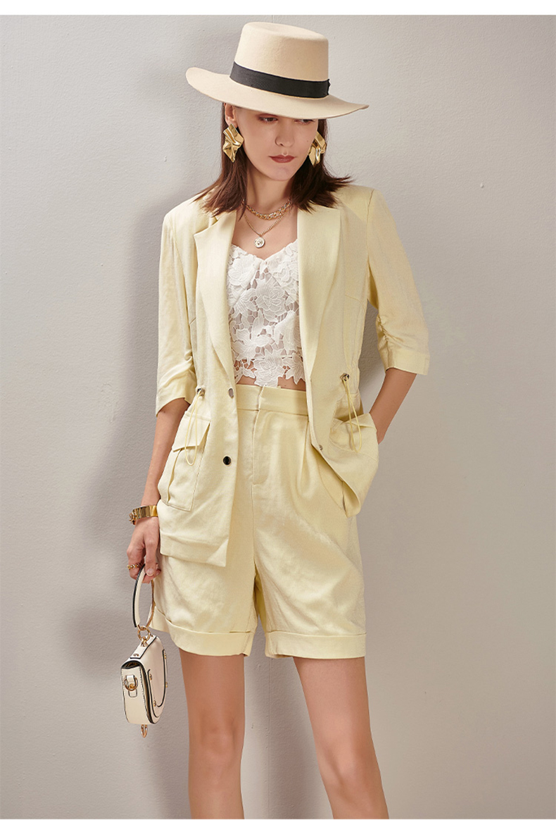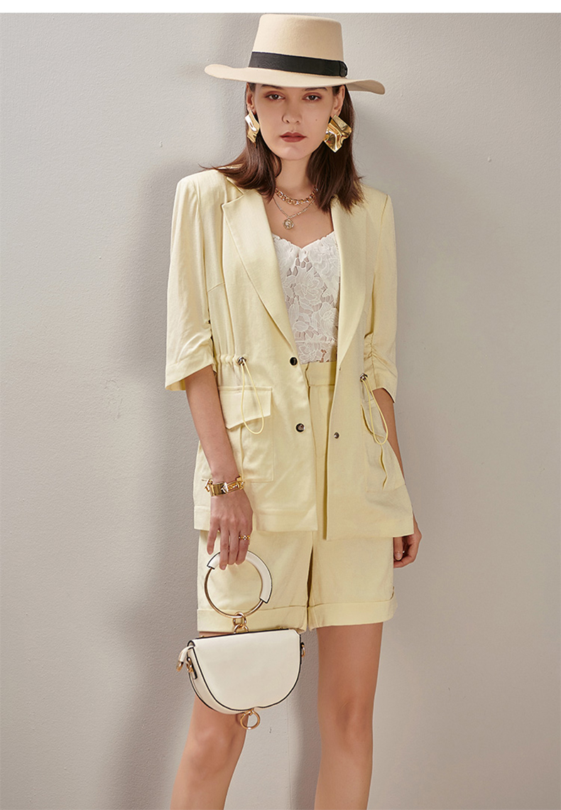 【松紧带收腰设计】2026新款夏季五分袖西服瘦腿短裤女式套装0738