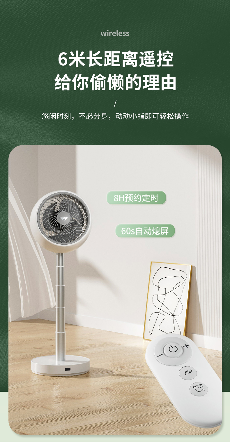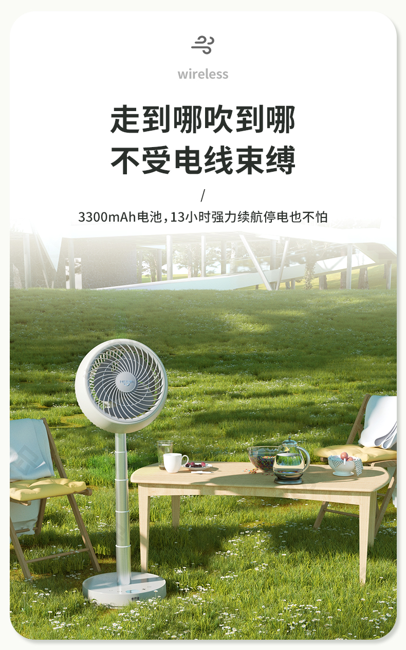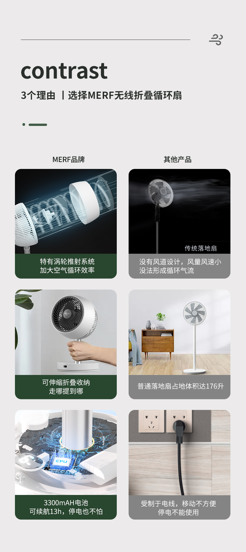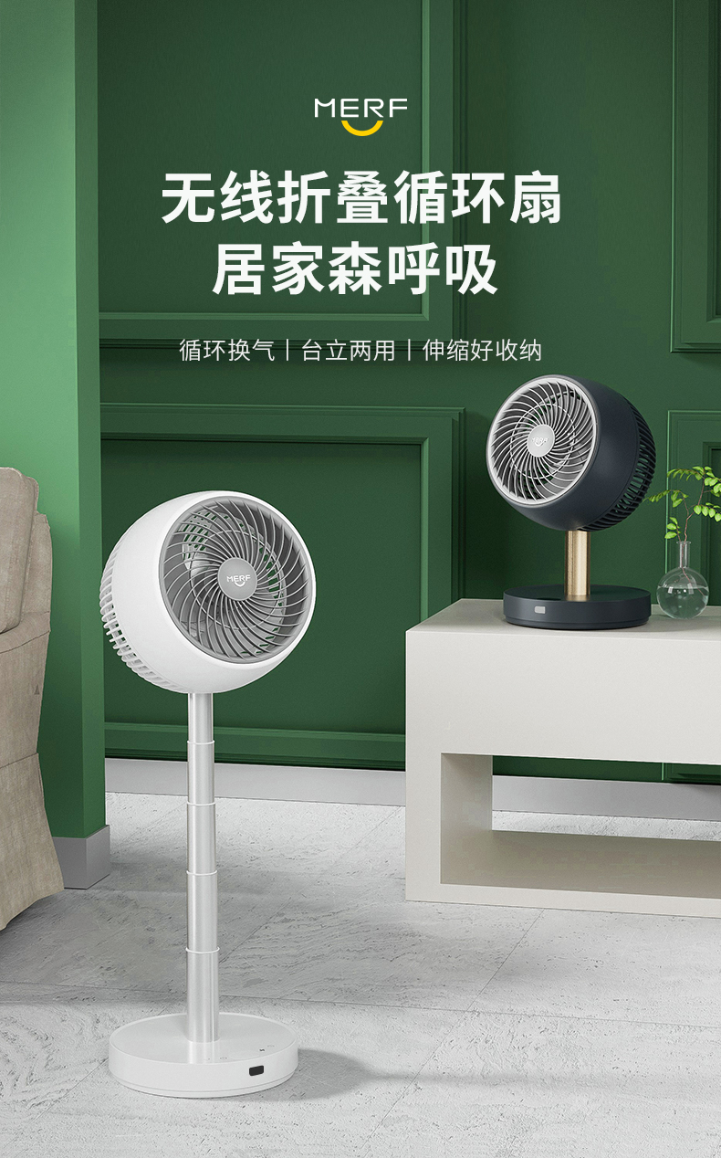 【台立两用 无线便携易收纳】MERF无线折叠空气循环扇 可折叠可伸缩 6档变频3D整屋循环风 底噪运行 续航13小时MF-2201