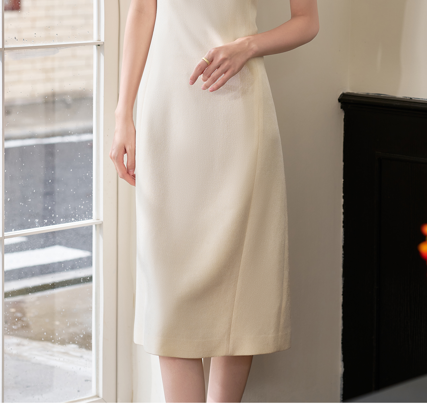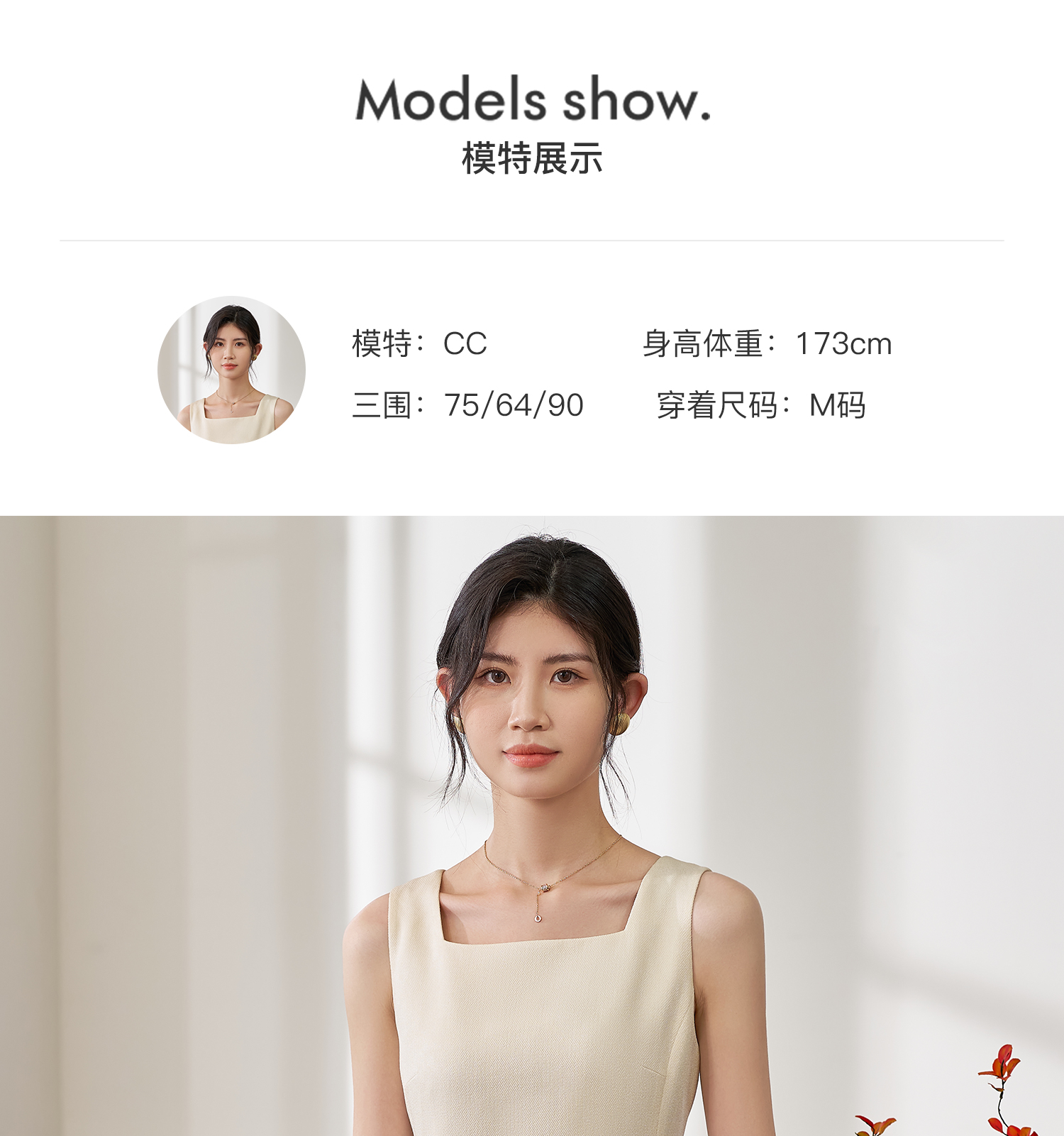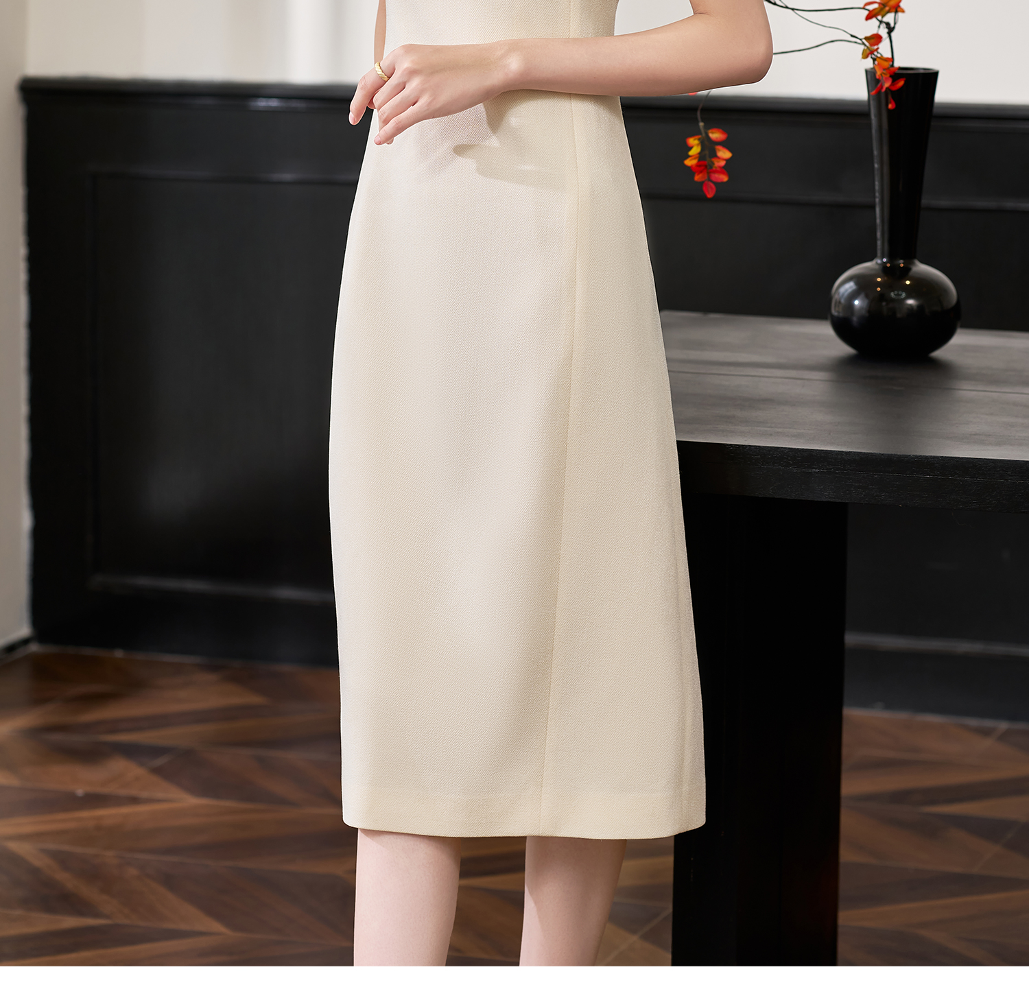 米思阳2026春季新款法式赫本风高端醋酸连衣裙商务白色礼服背心裙
