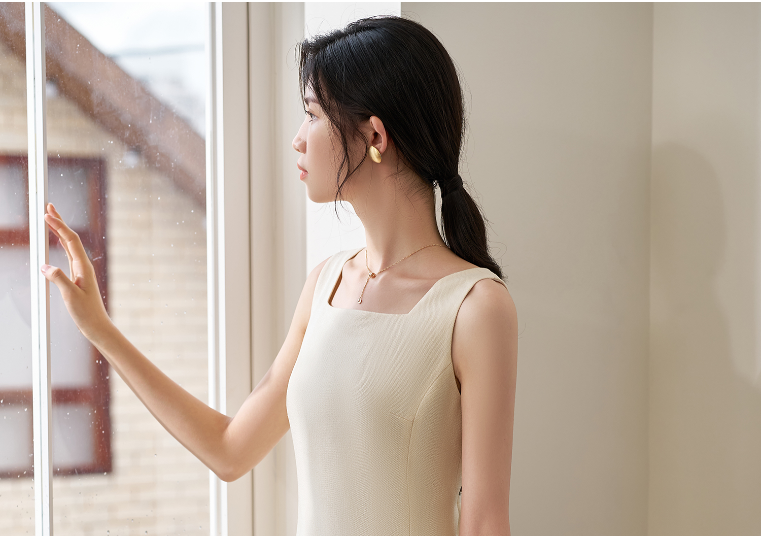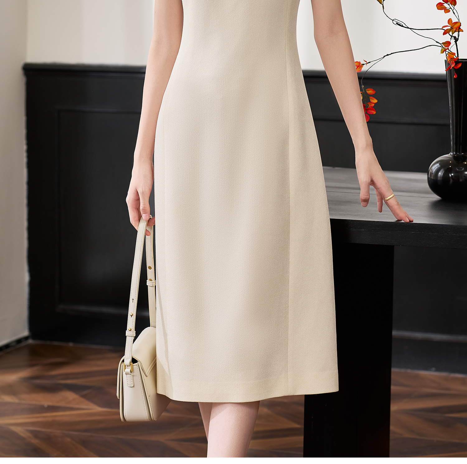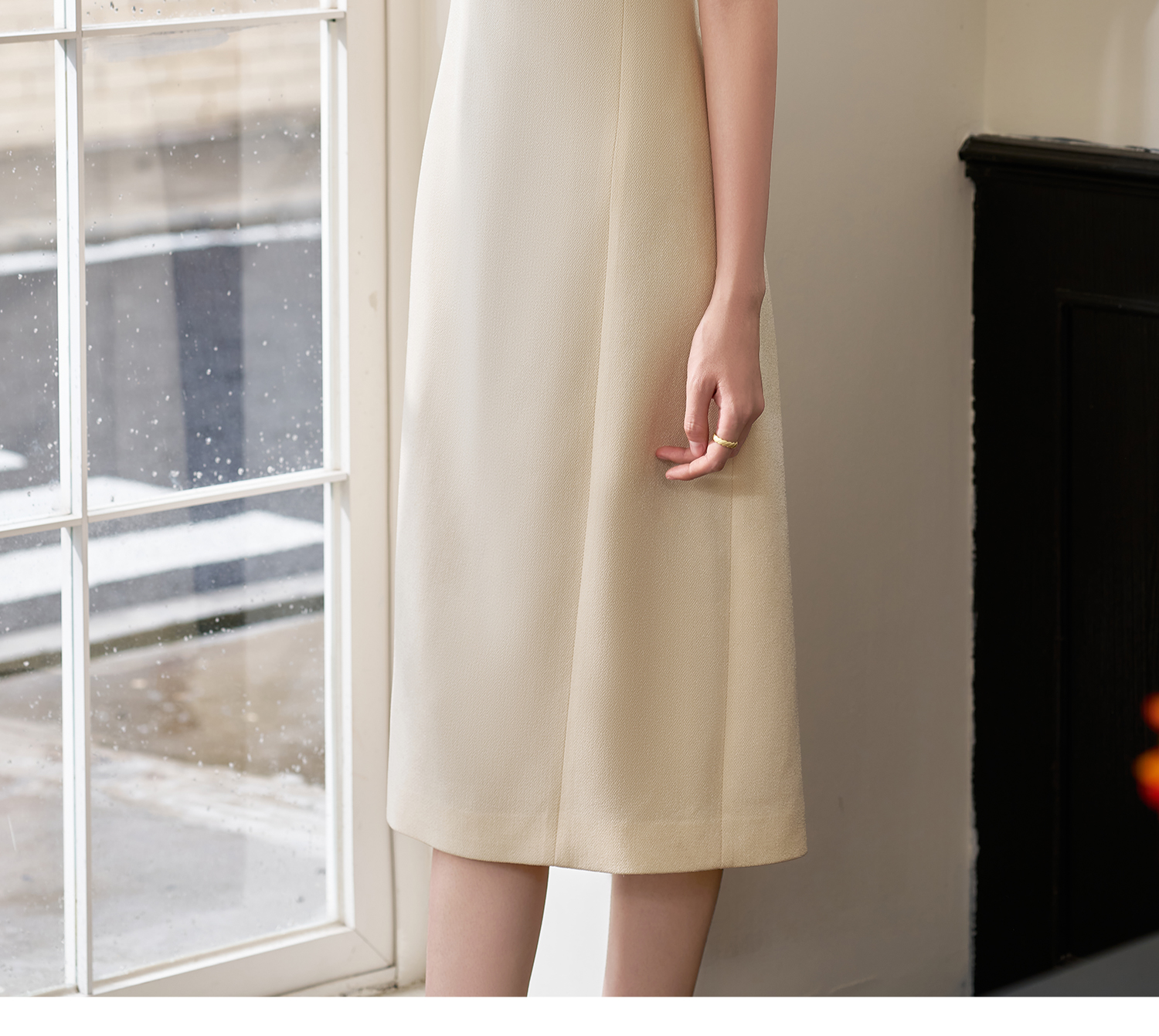 米思阳2026春季新款法式赫本风高端醋酸连衣裙商务白色礼服背心裙