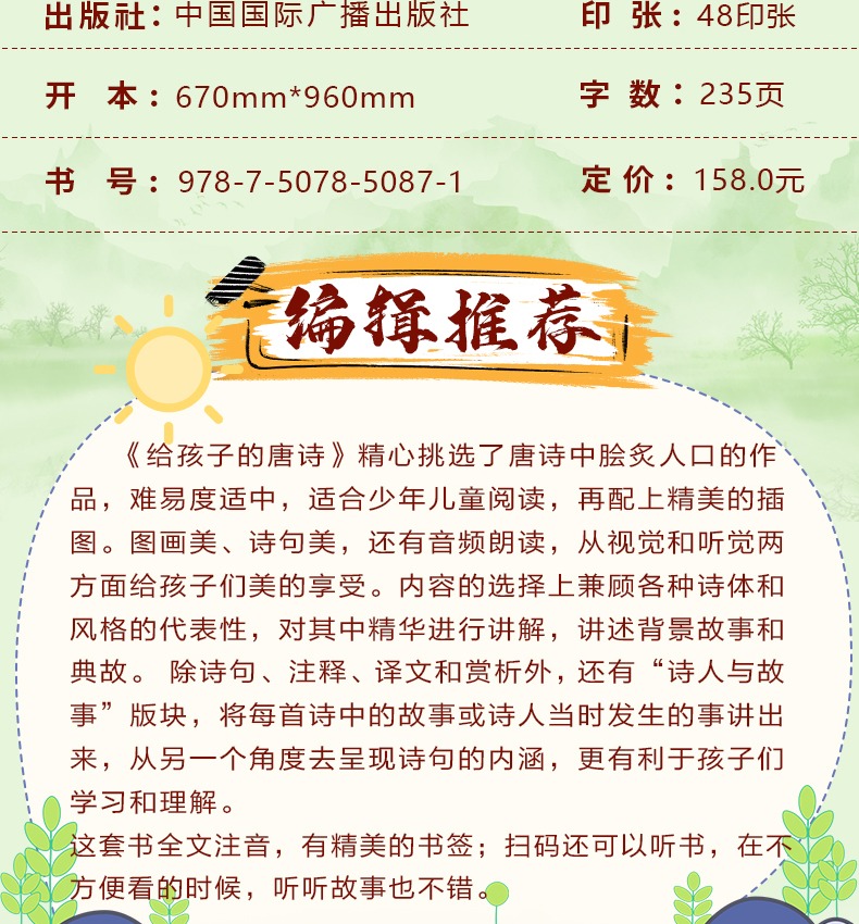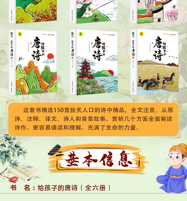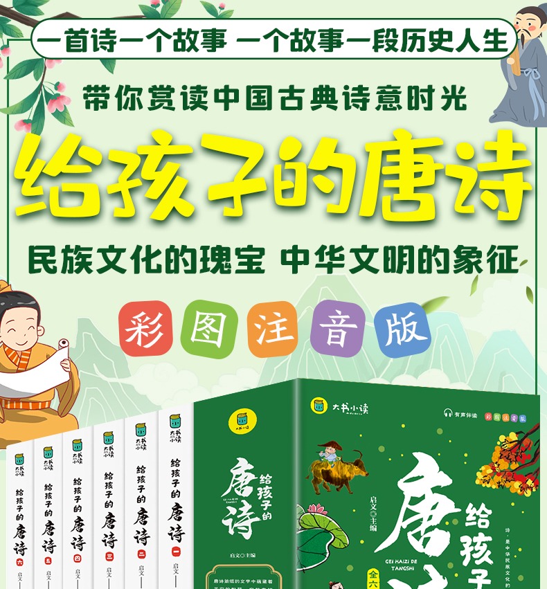 【6-12岁】《彩图注音版:给孩子的唐诗》全6册 有声伴读 150首必学唐诗,用一诗一故事的方式,让孩子熟读唐诗,并了解背后的历史故事和人文常识