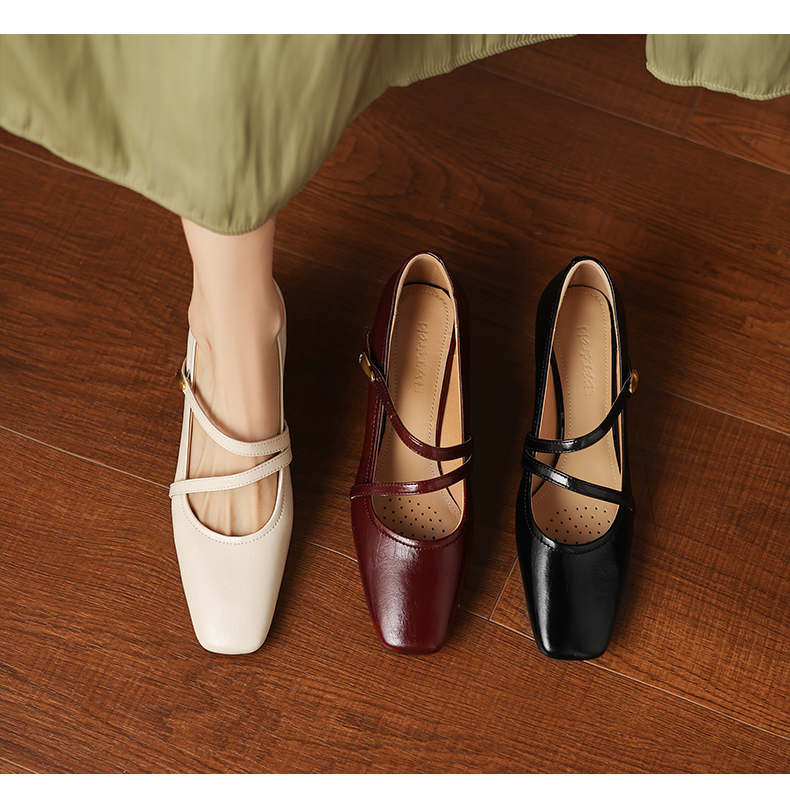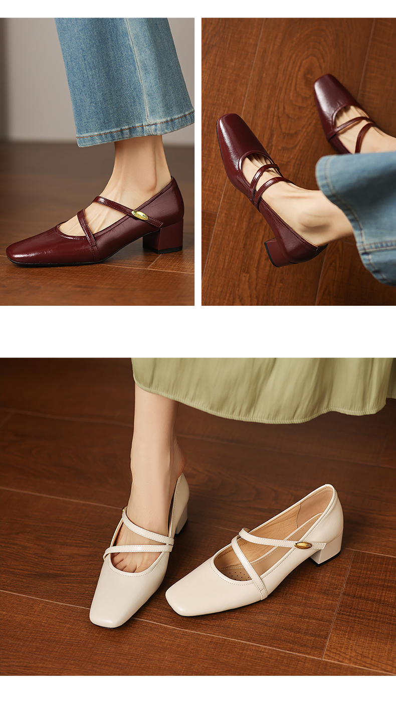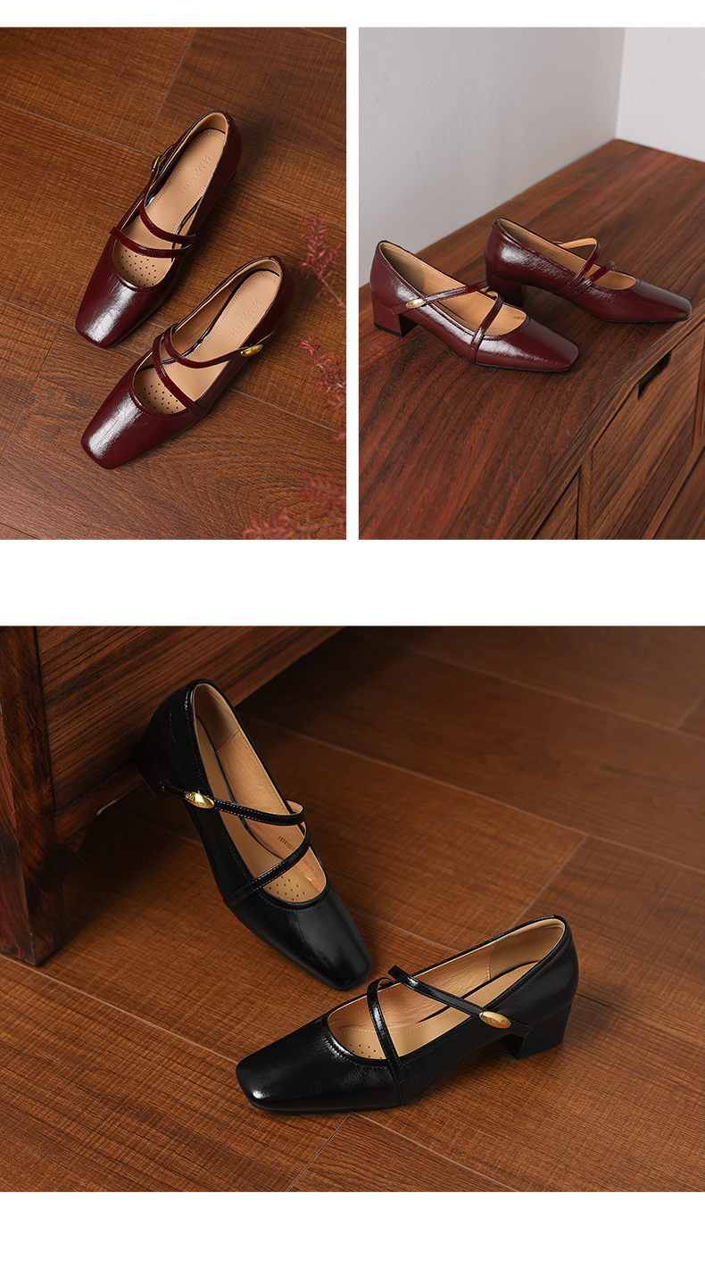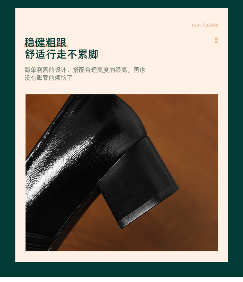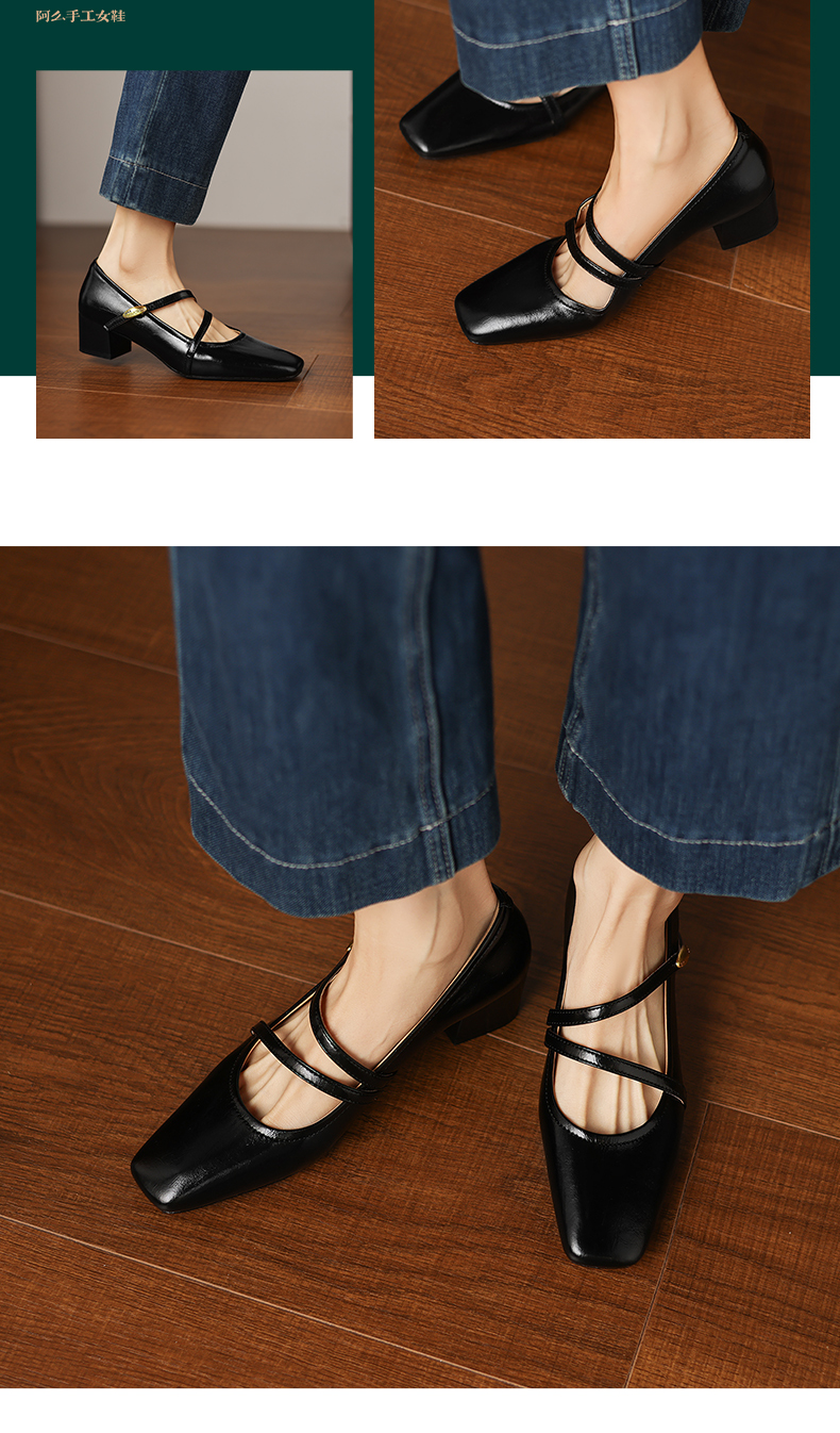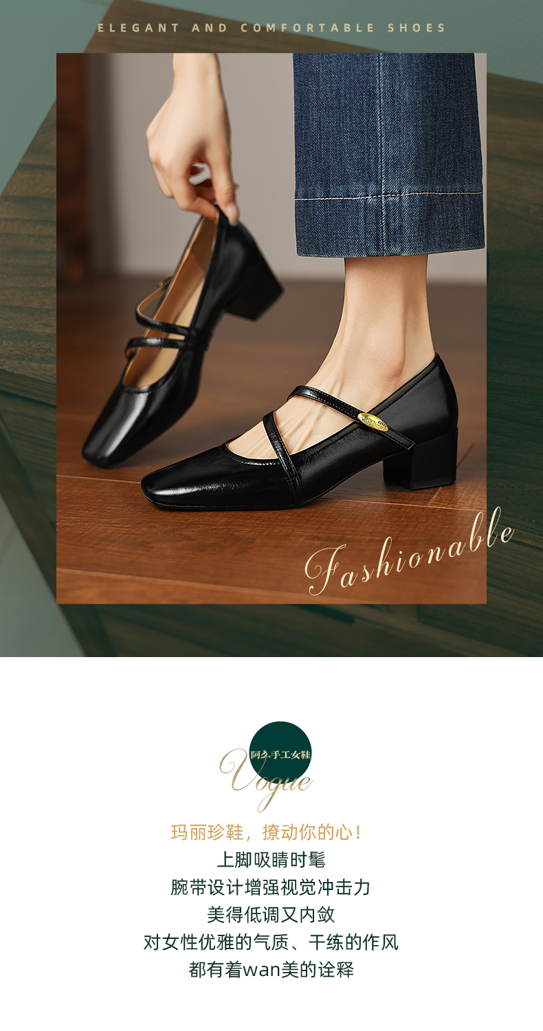 阿么手工女鞋法式粗跟玛丽珍鞋2026新款方头浅口单鞋配裙子4.2CM