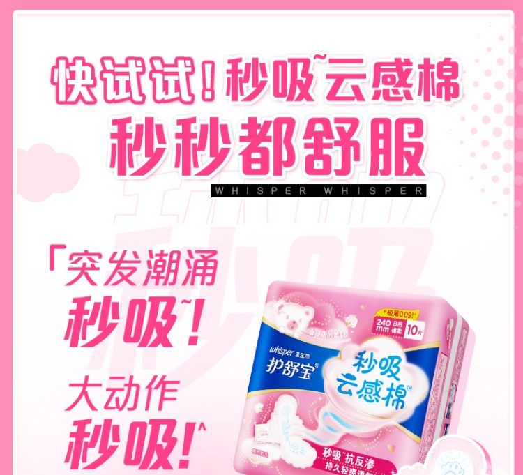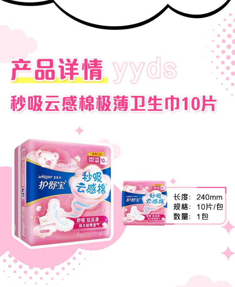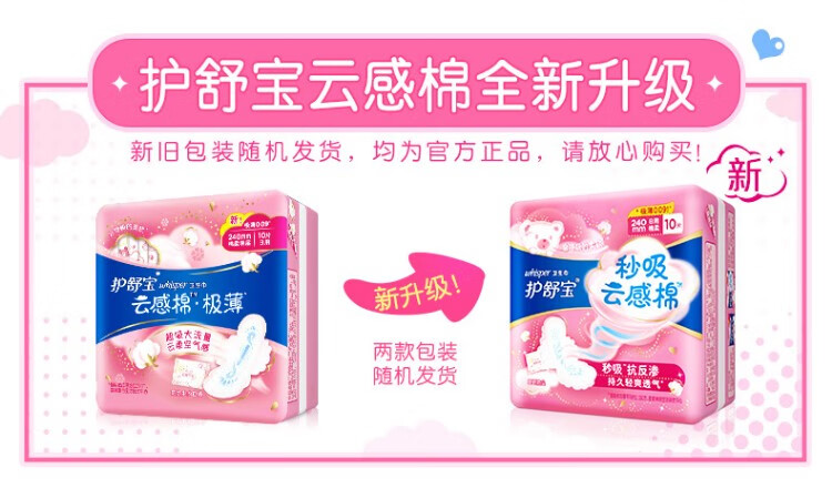 护舒宝卫生巾秒吸云感棉极薄日用夜用女学生云感超净棉卫生姨妈巾自选 日用240mm5片