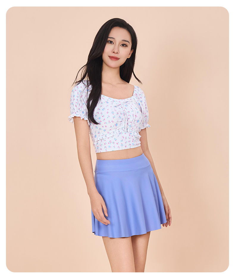 【商场同款】熳洁儿 女士泳衣夏季分体裙装甜美碎花泡泡袖24206215