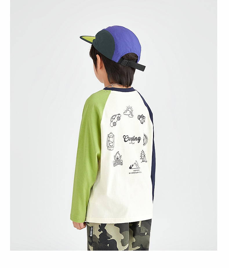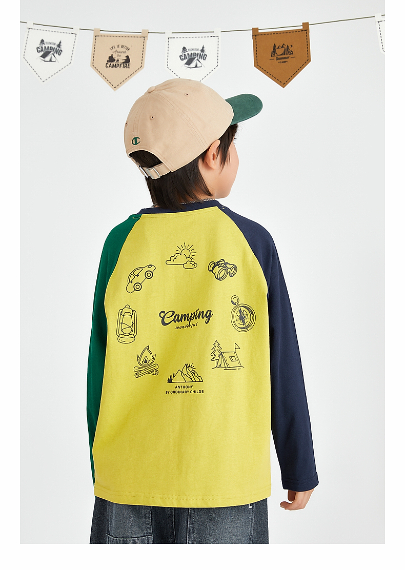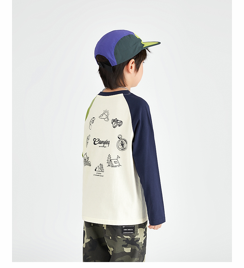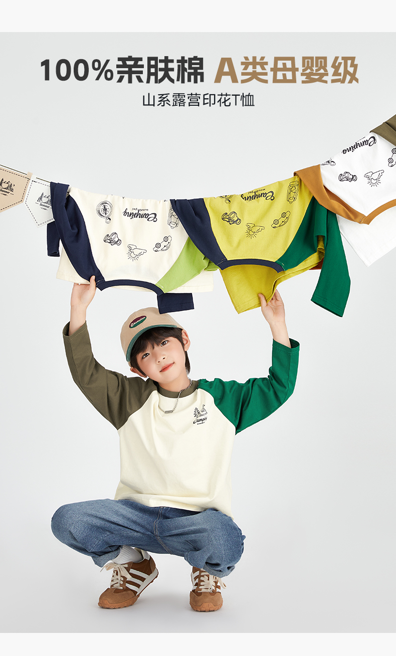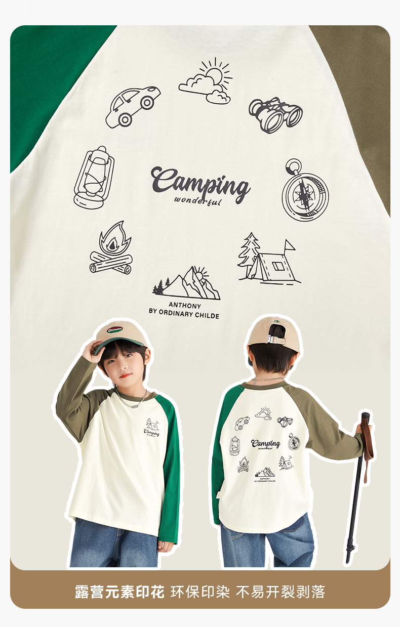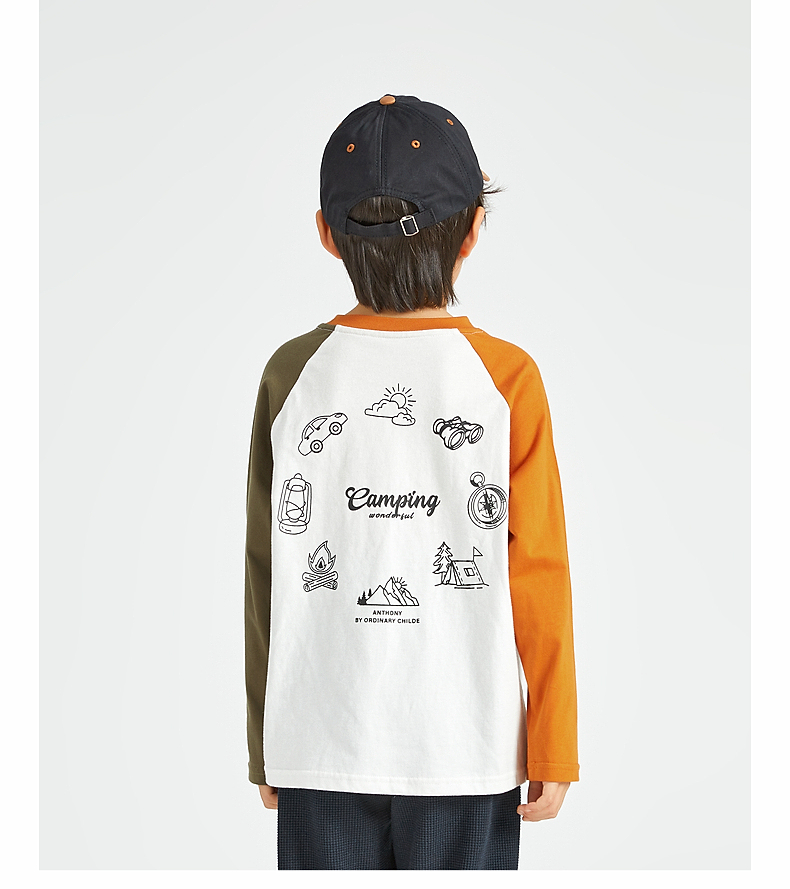【团购价49.9】多多家 男童长袖T恤2024新款春秋季儿童中大童纯棉露营印花上衣潮9656