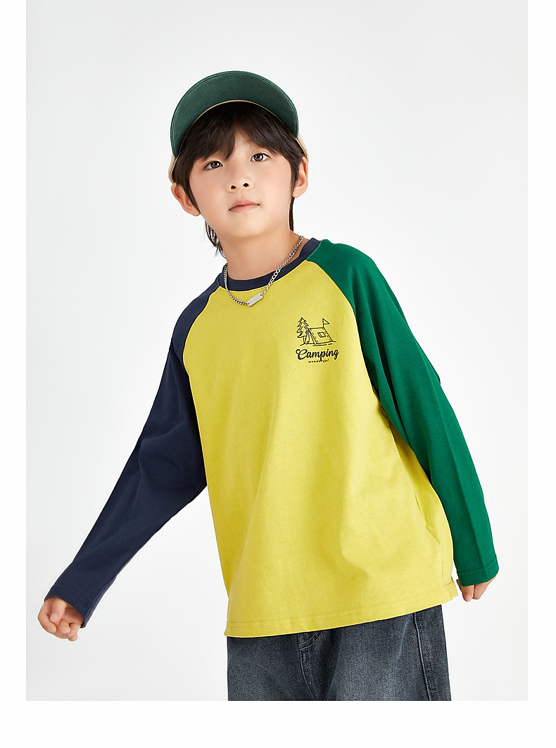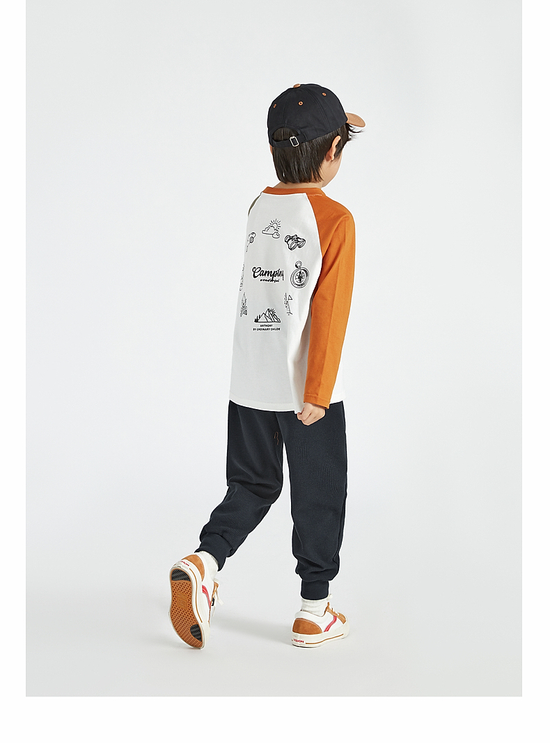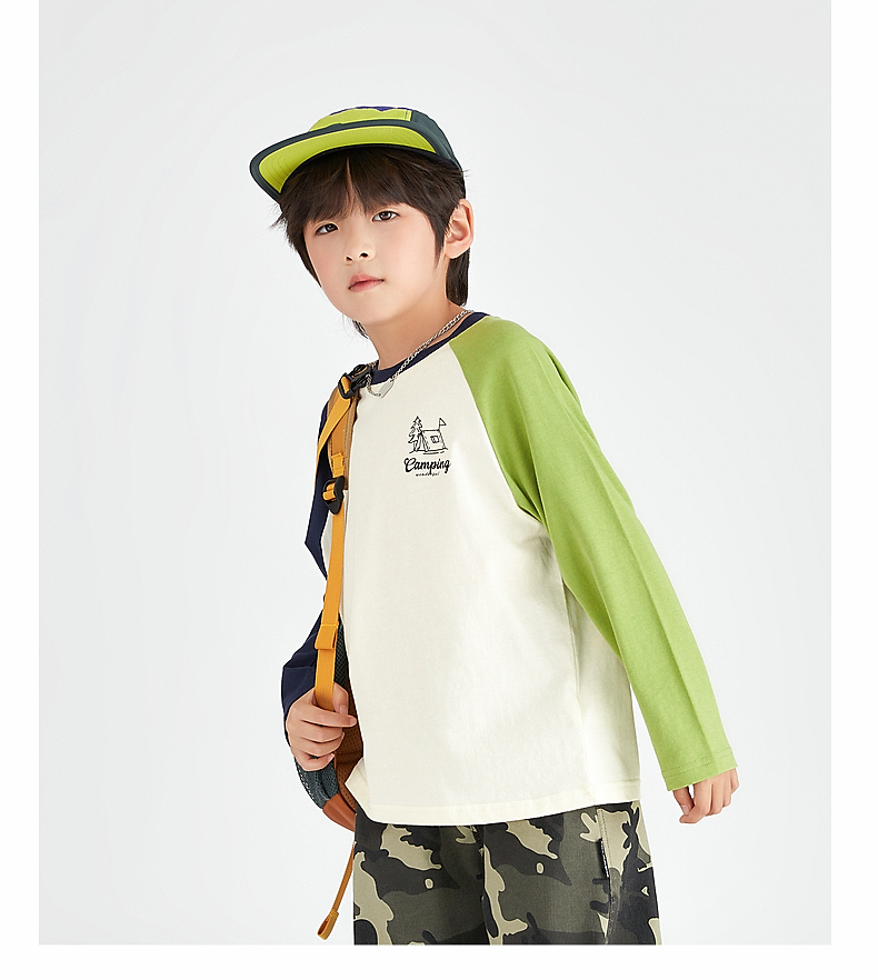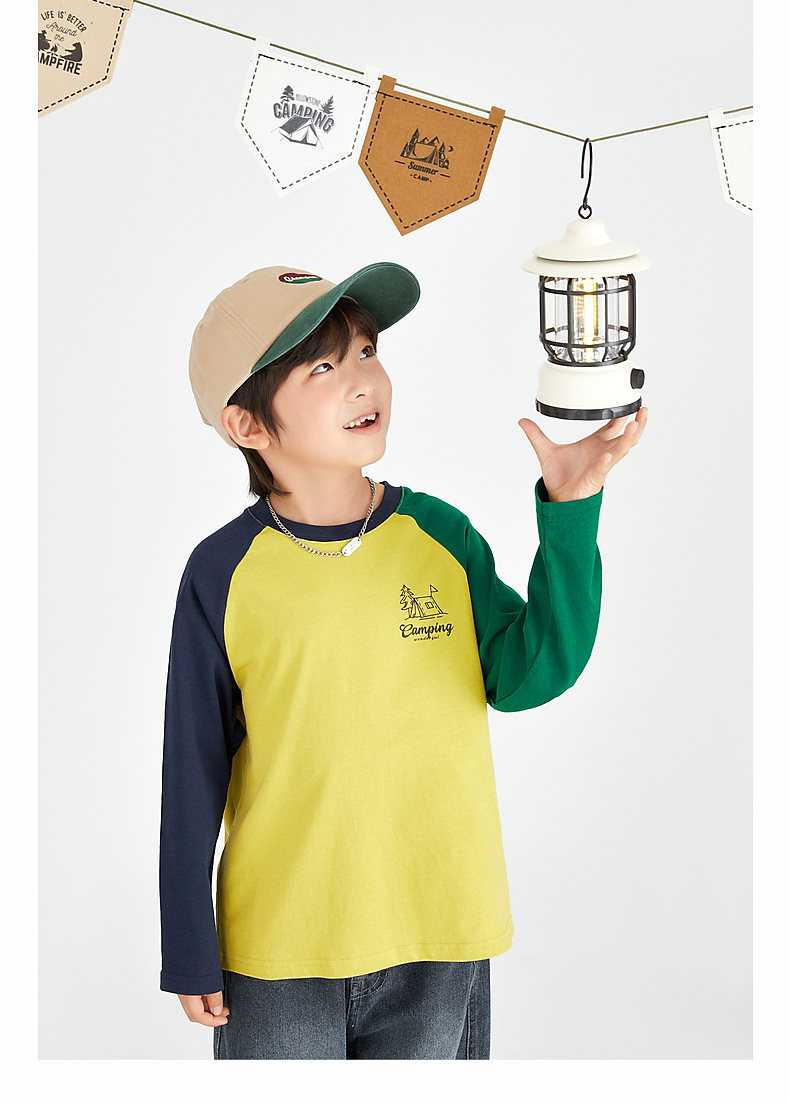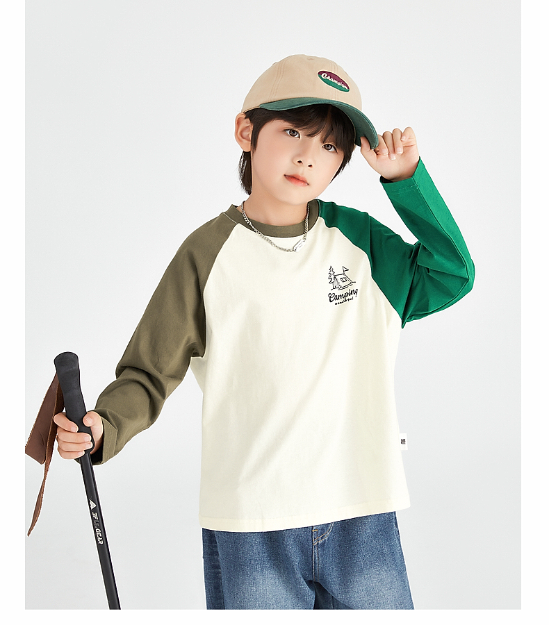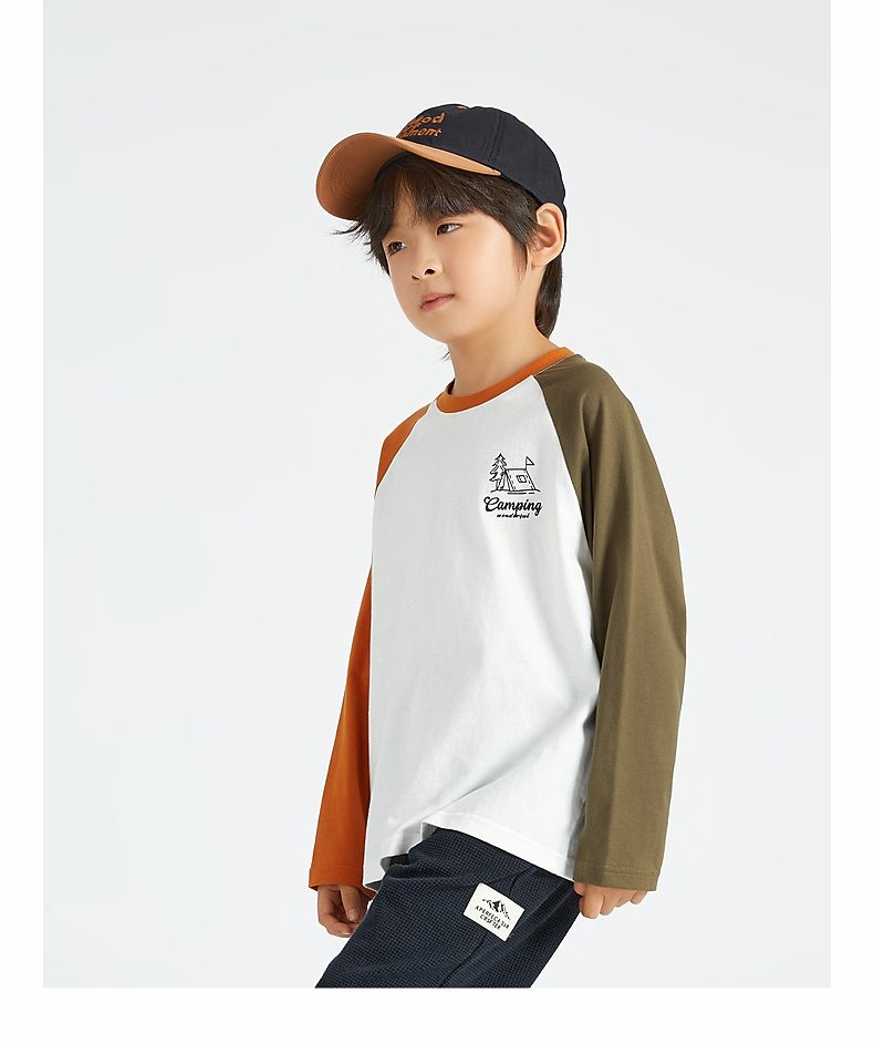 【团购价49.9】多多家 男童长袖T恤2024新款春秋季儿童中大童纯棉露营印花上衣潮9656