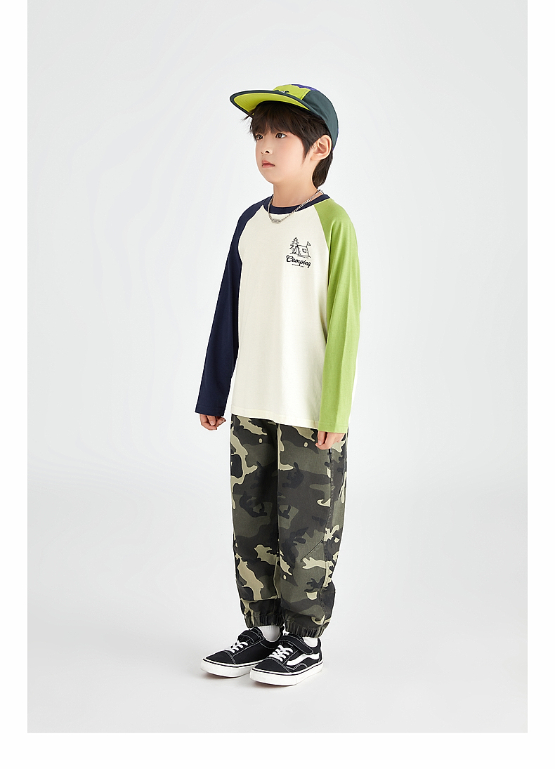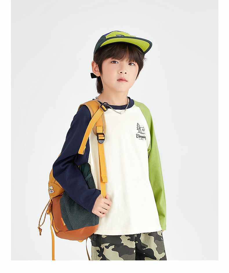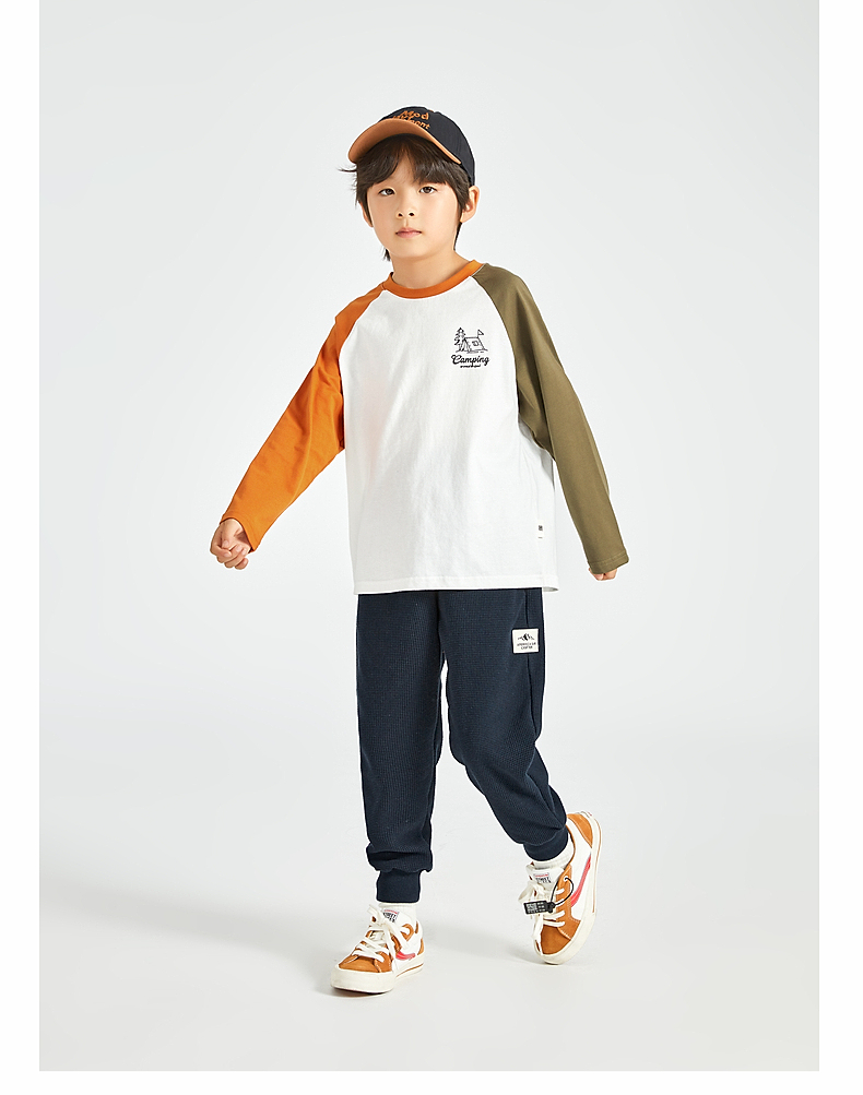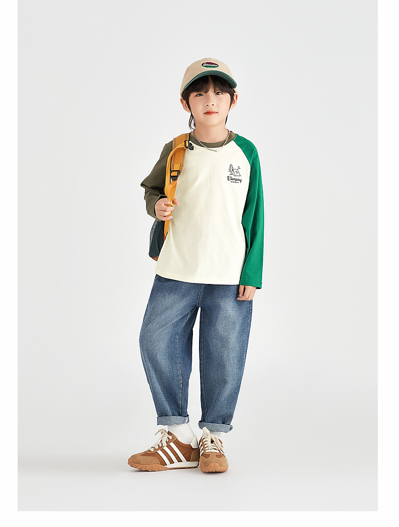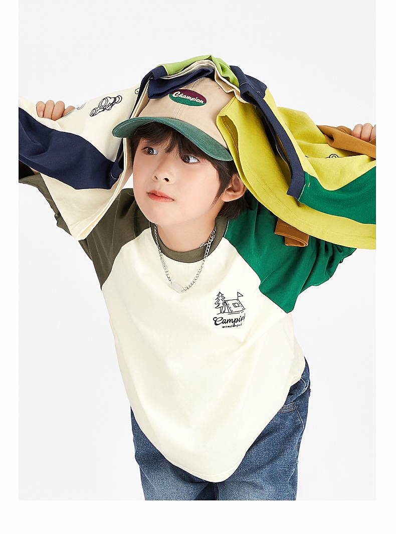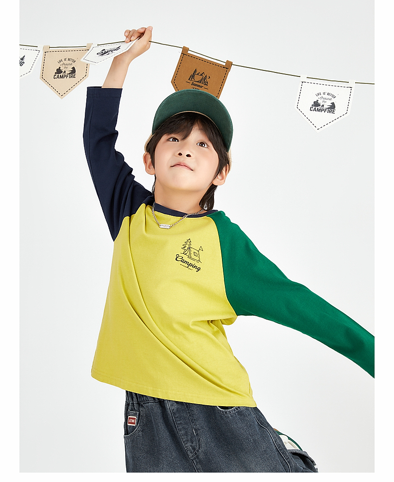 【团购价49.9】多多家 男童长袖T恤2024新款春秋季儿童中大童纯棉露营印花上衣潮9656