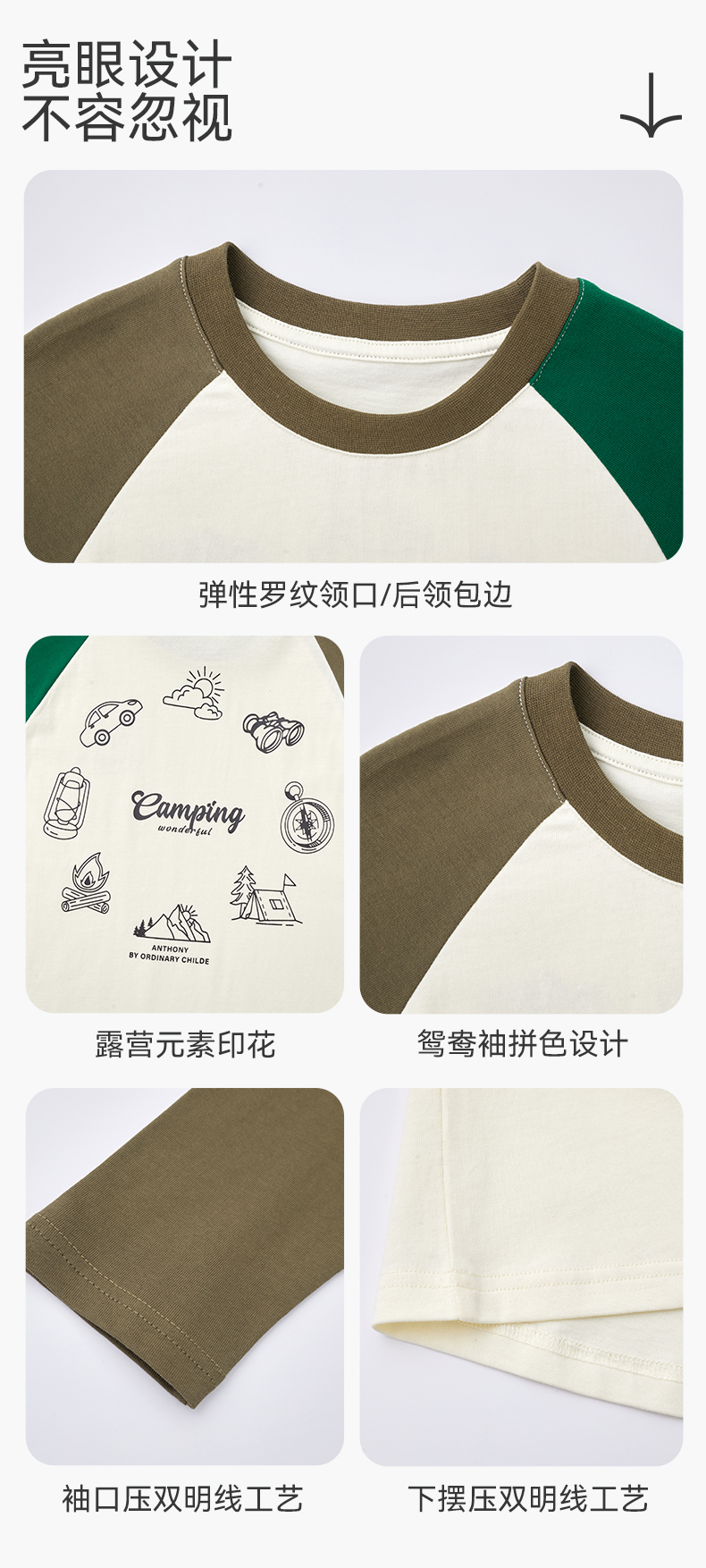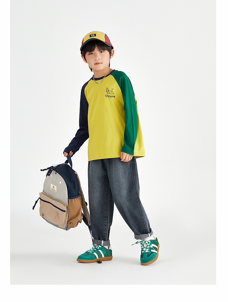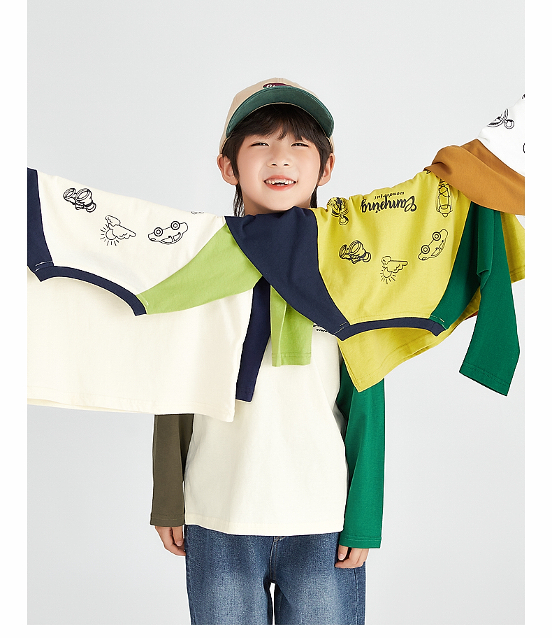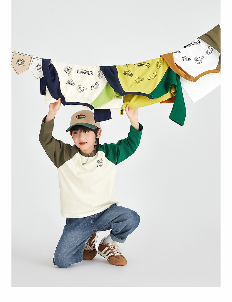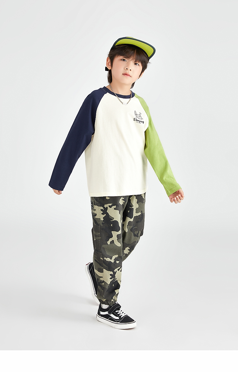 【团购价49.9】多多家 男童长袖T恤2024新款春秋季儿童中大童纯棉露营印花上衣潮9656