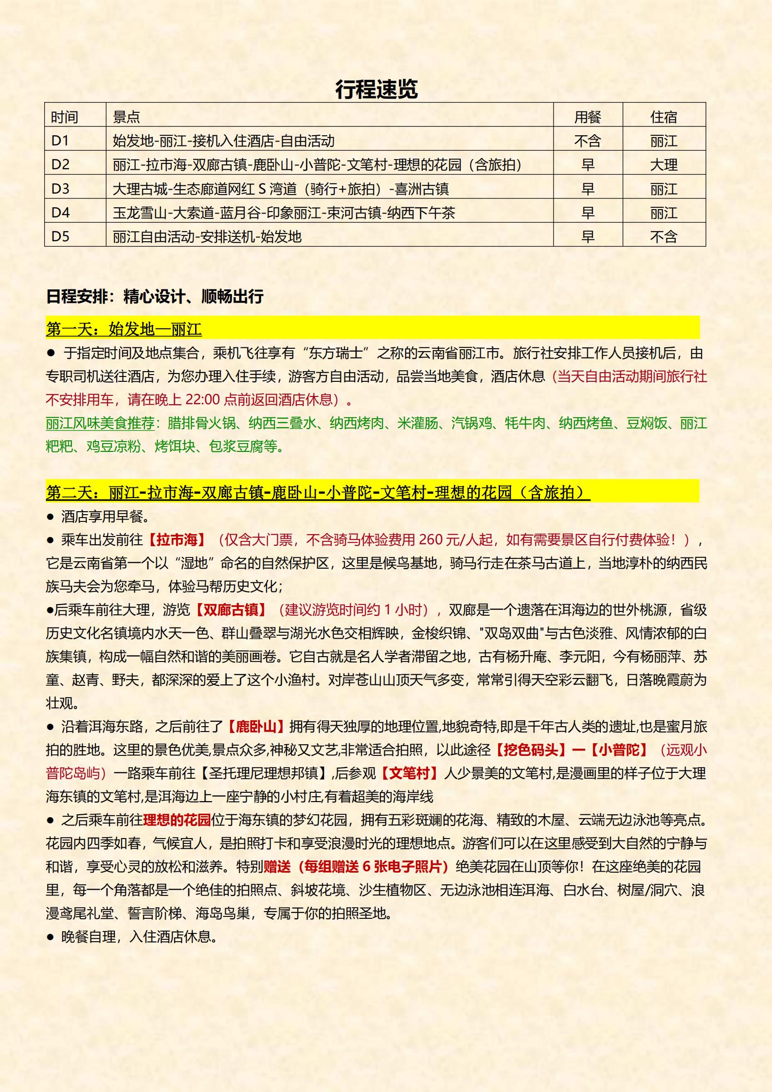 【私家小团】<云南大理+丽江5天双飞>拉市海、双廊古镇、鹿卧山、小普陀、文笔村、理想的花园(含旅拍)、大理古城、生态廊道网红S湾道、喜洲古镇、丽江古城、玉龙雪山、蓝月谷、《印象丽江》、束河古镇