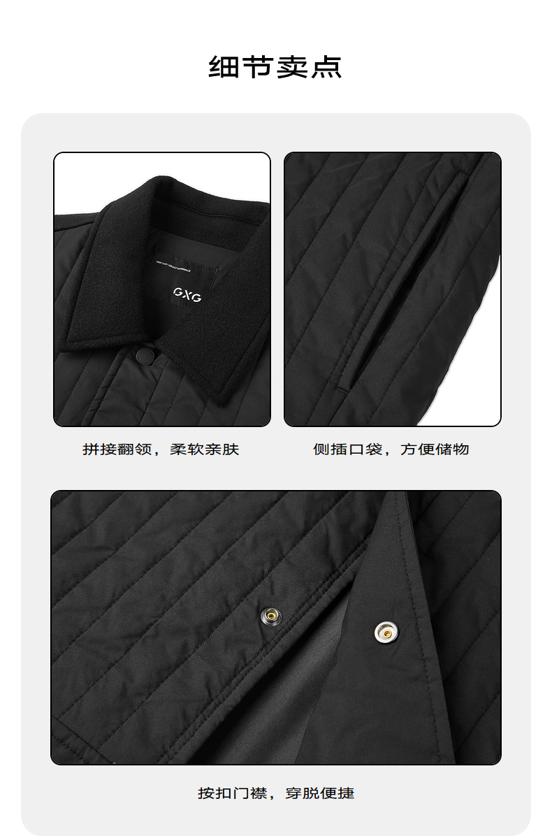 GXG男装 续能棉黑色翻领夹克 冬季热卖夹克外套 GEX12126864