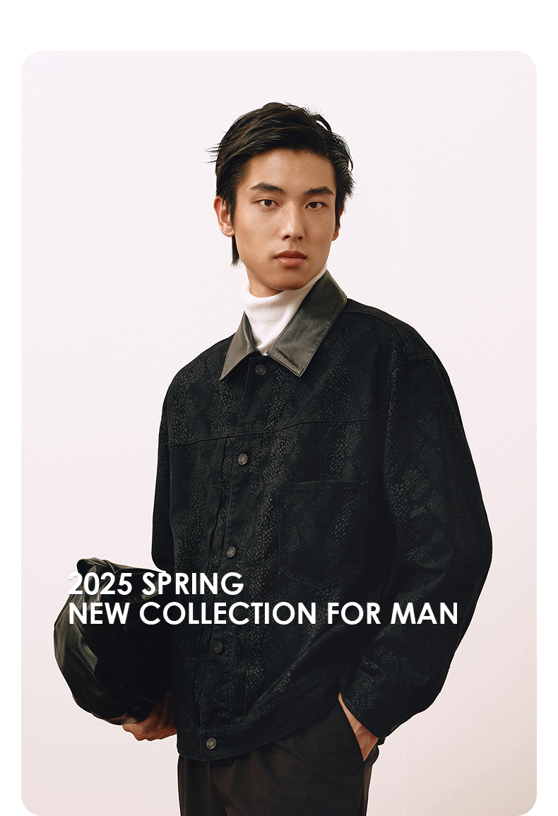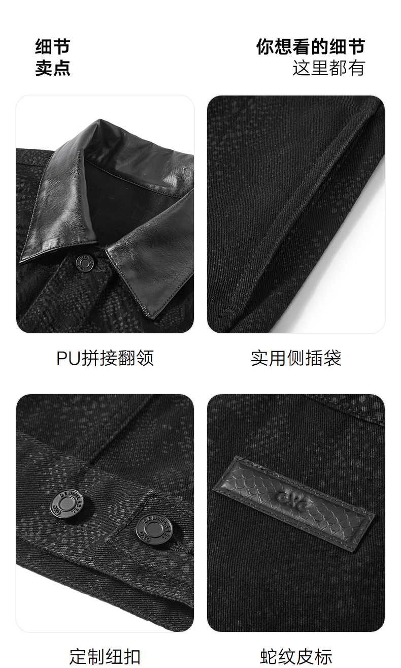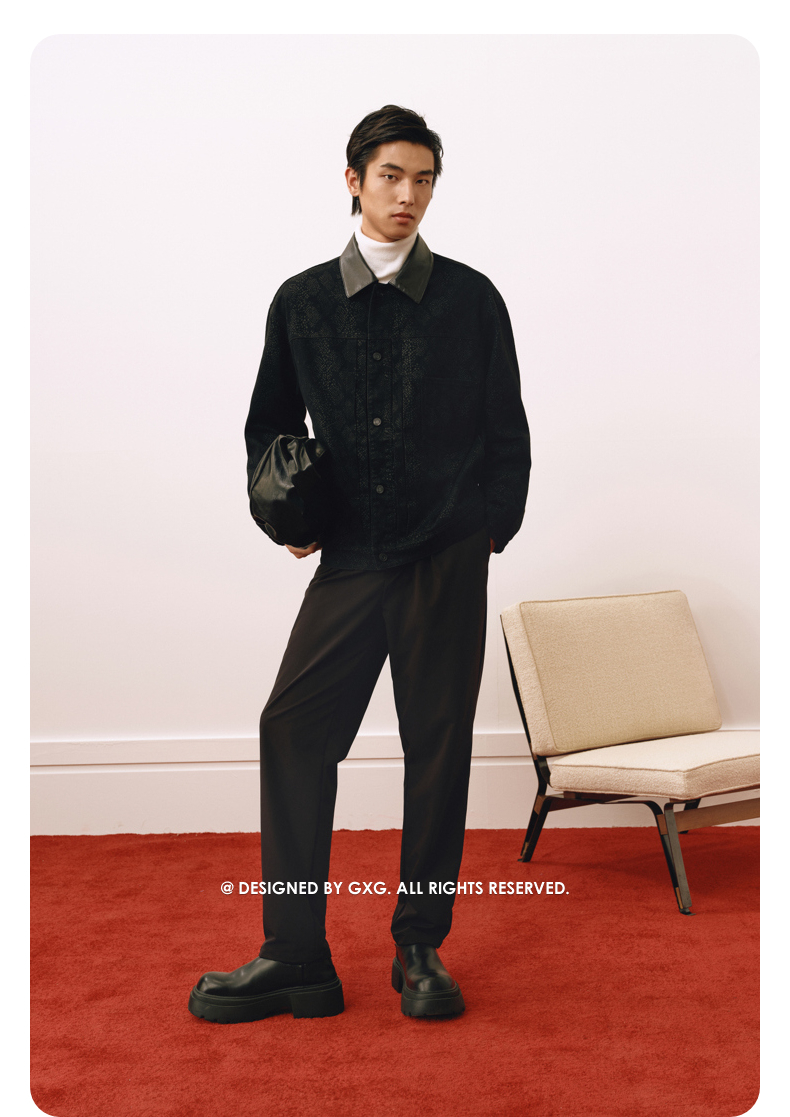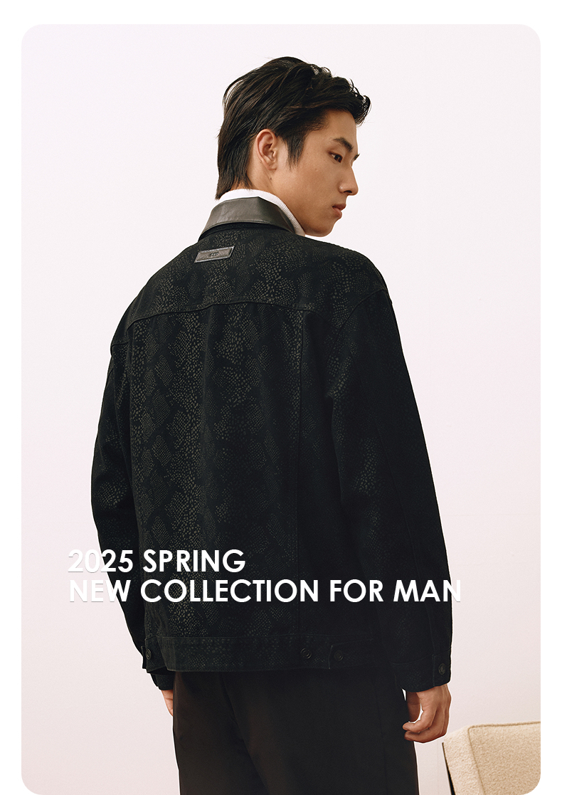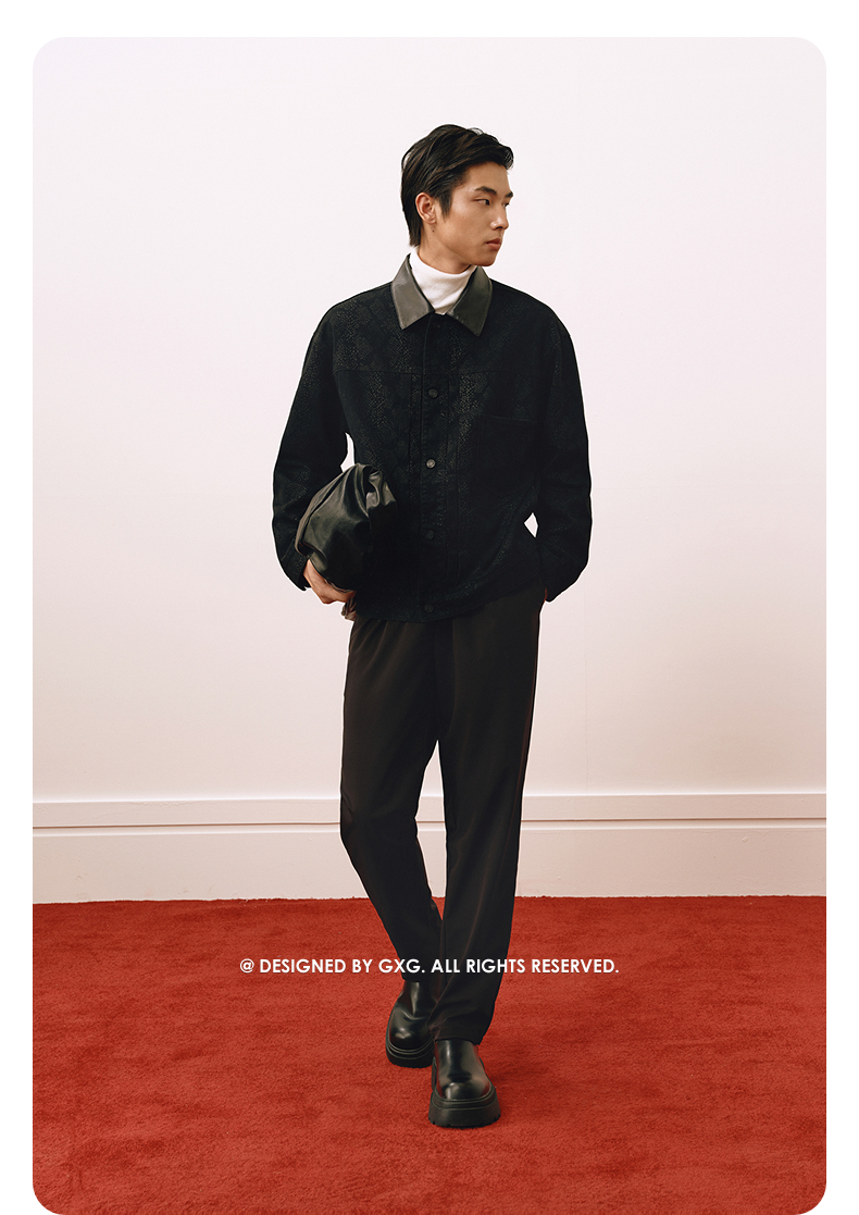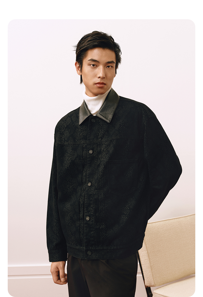 GXG男装 新年系列复古蛇纹印花PU拼接教练夹克外套 25年春热卖