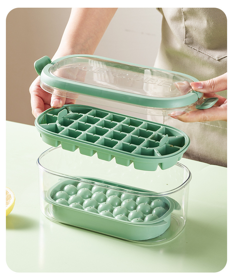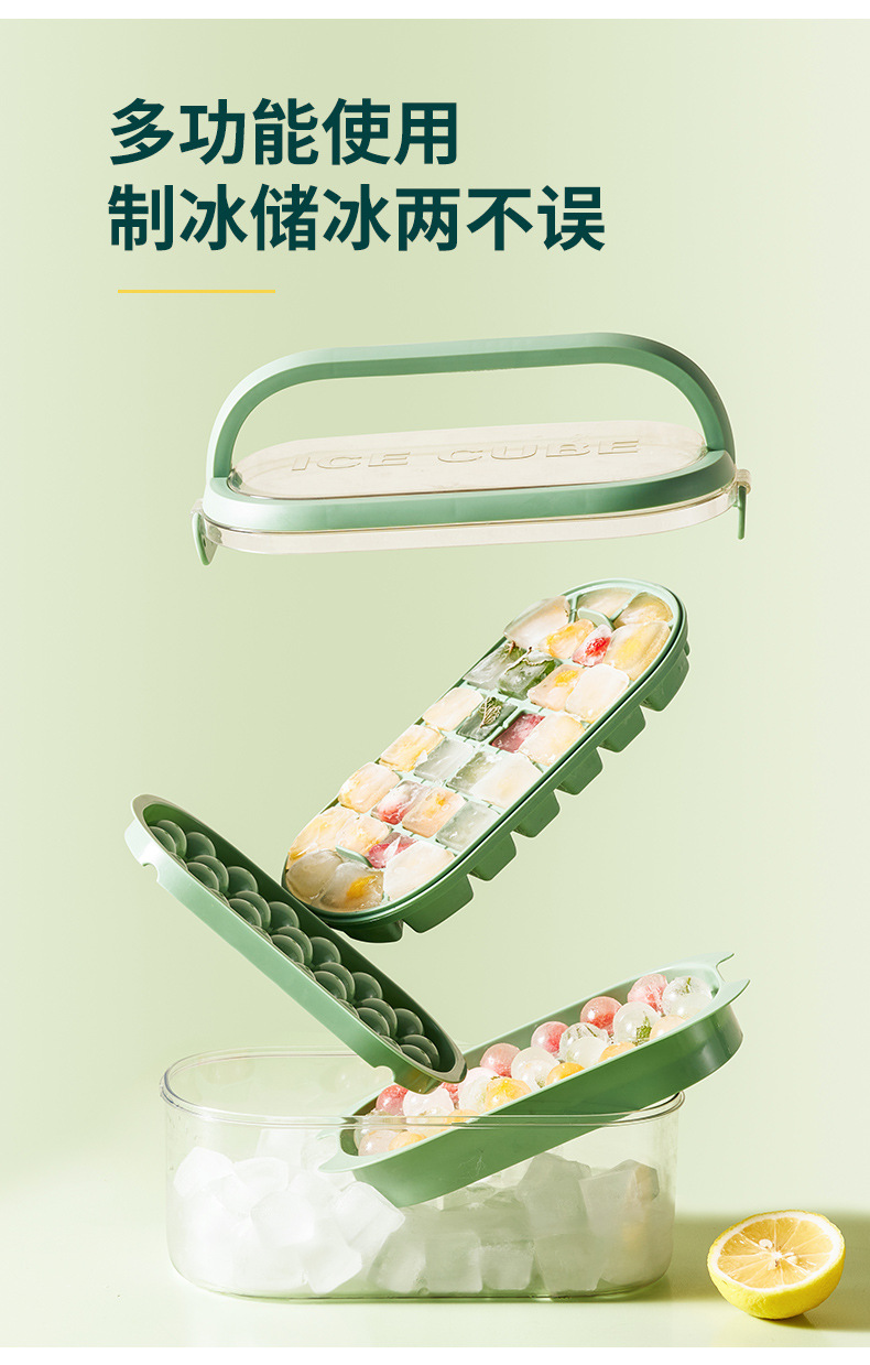 「制冰储冰两用」冰格冰块模具 按压硅胶冰格冰球塑料手提制冰盒大容量冰箱冻冰块盒餐饮用具