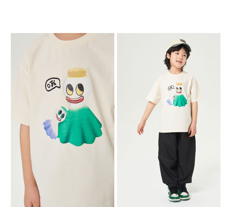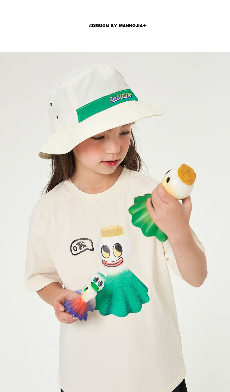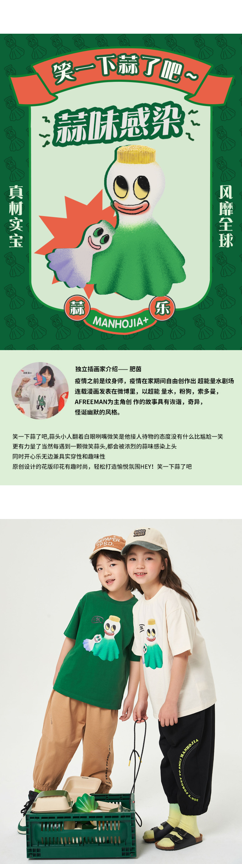 漫画家潮牌童装亲子装T恤夏季新品蒜头印花趣味街头短袖儿童T恤