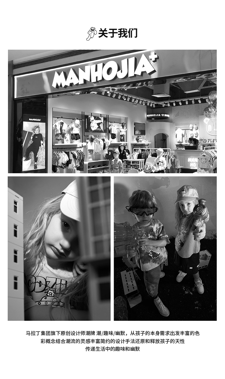 - 马拉丁旗下的城市户外潮童品牌,为3-12岁的孩子提供实用与细节设计的时尚度童装,打造现代简潮和城市户外感的着装,man游童年的冒险jia!