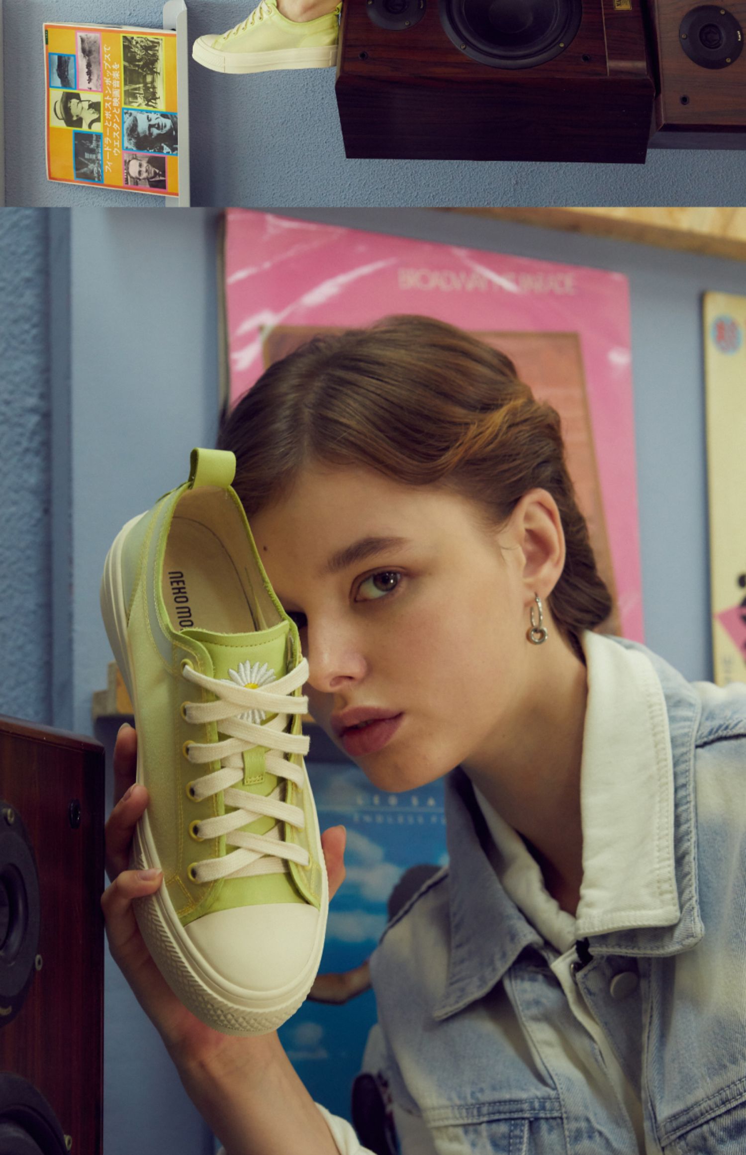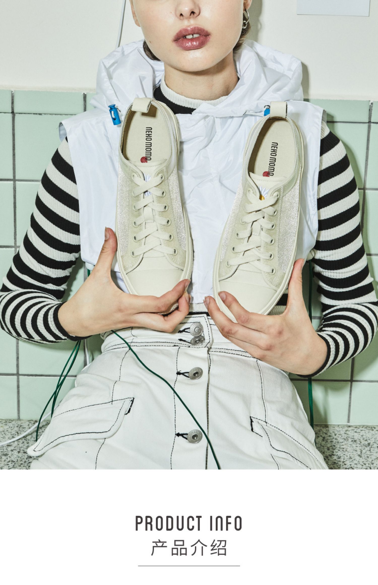 nekomomo2023年秋季新款商场同款牛皮网纱面小雏菊休闲低帮板鞋女