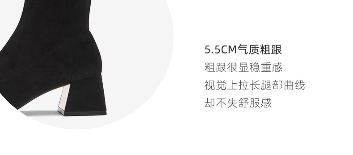 西村名物2021冬季新款高跟靴子黑色袜靴方头潮流时尚单靴女43471
