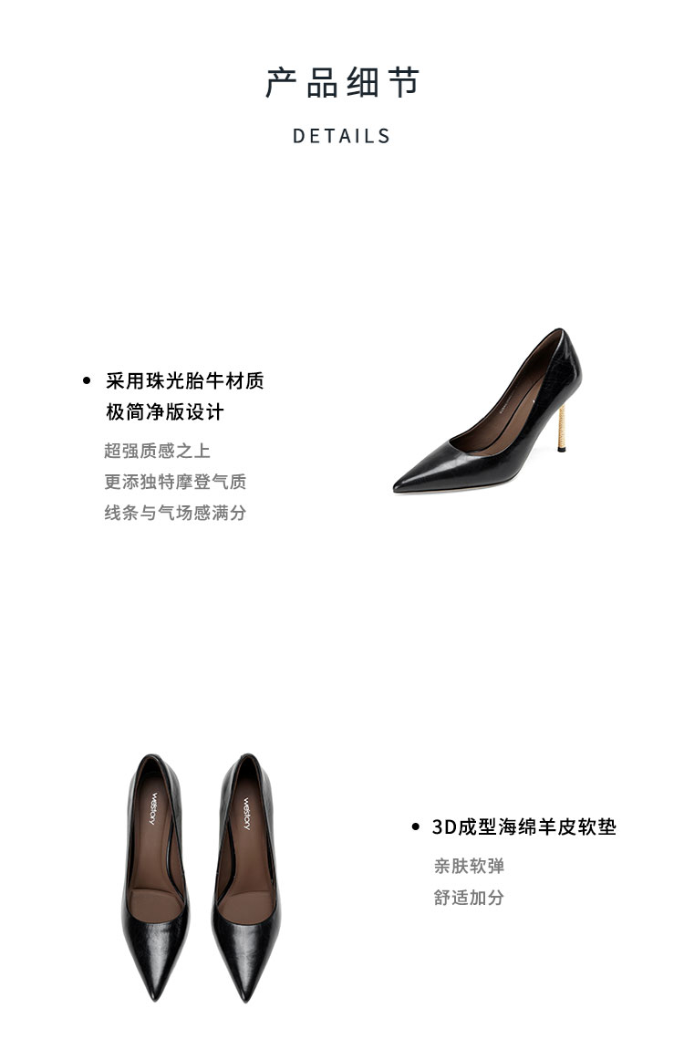 Westory2026年春季尖头高跟极简单鞋宴会鞋通勤百搭浅口鞋S26AE50401