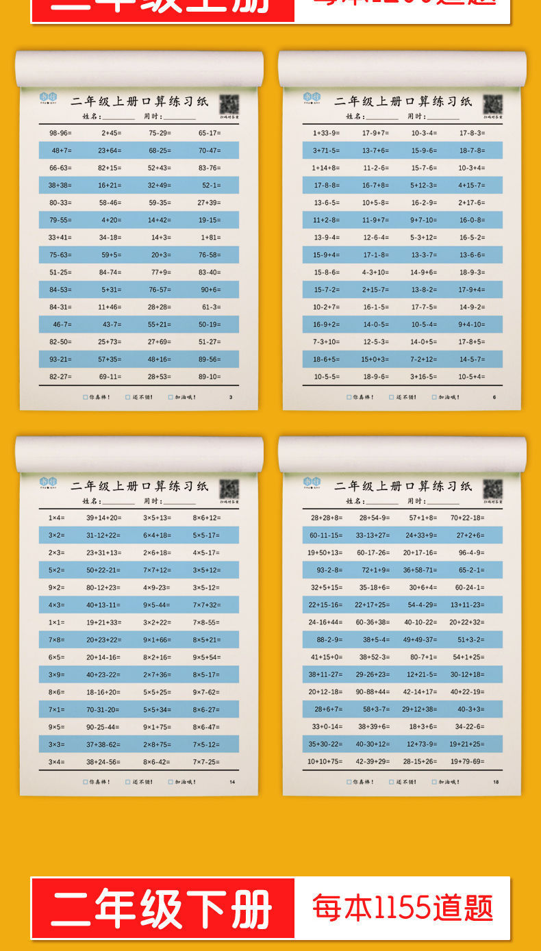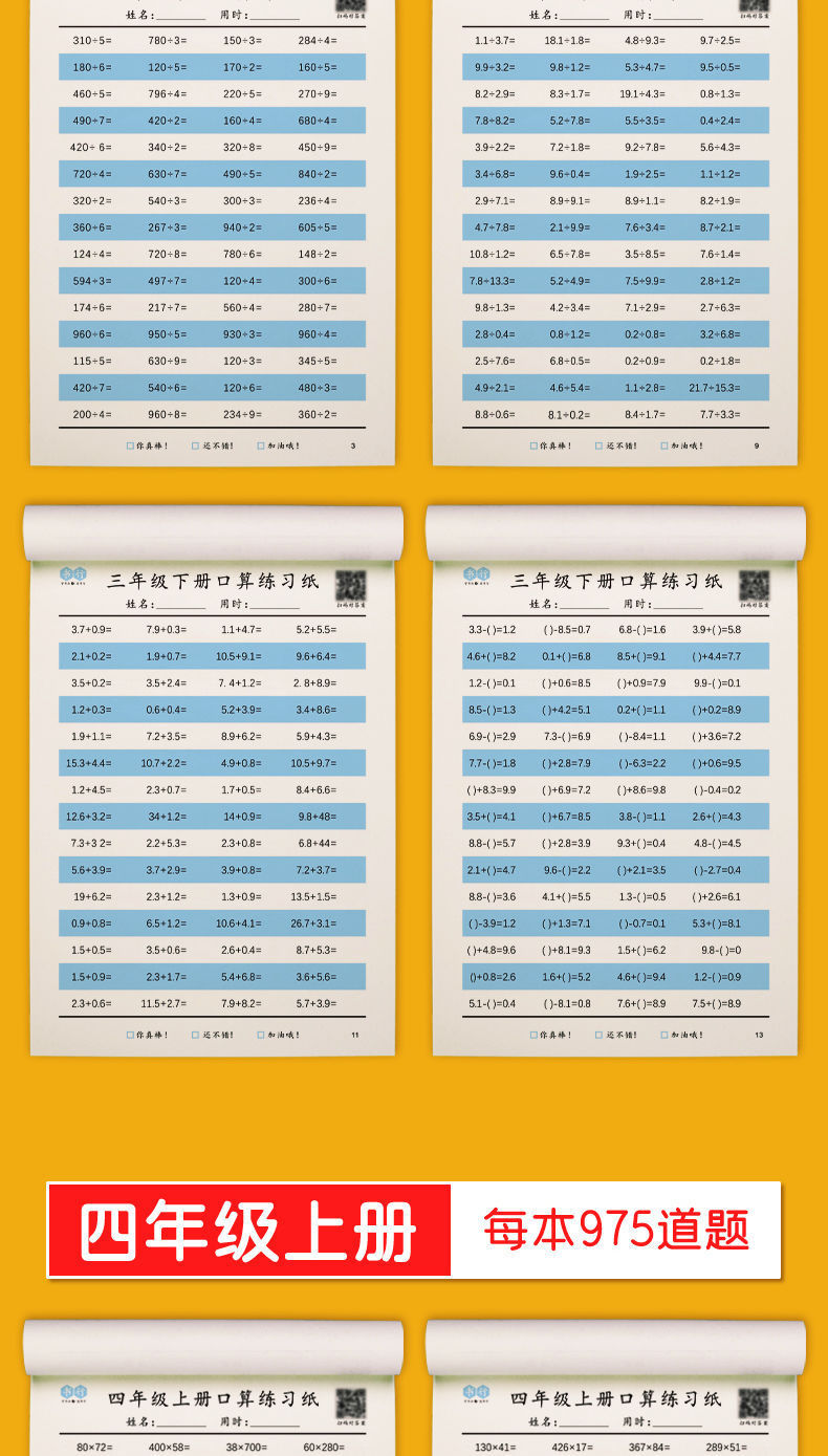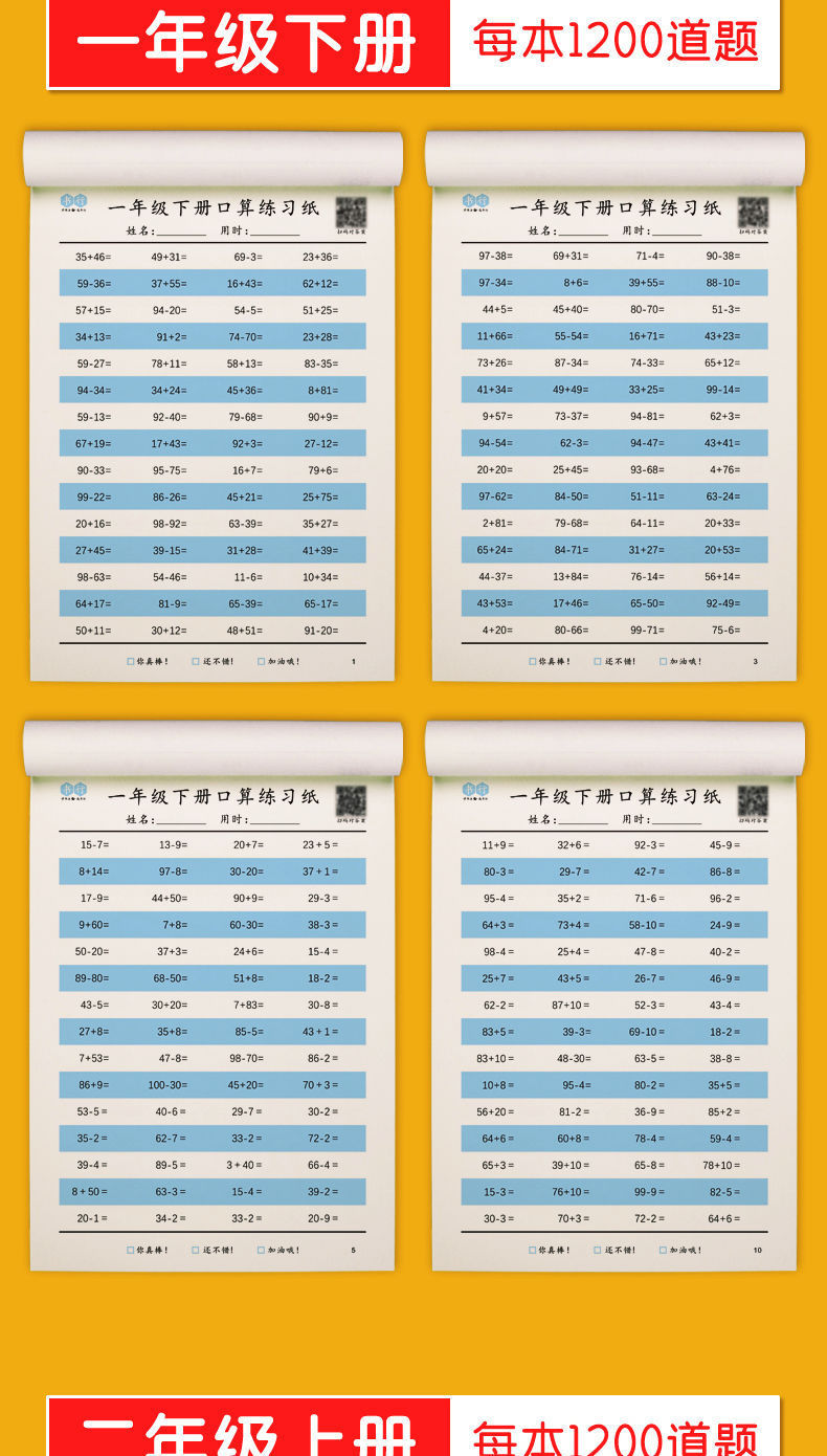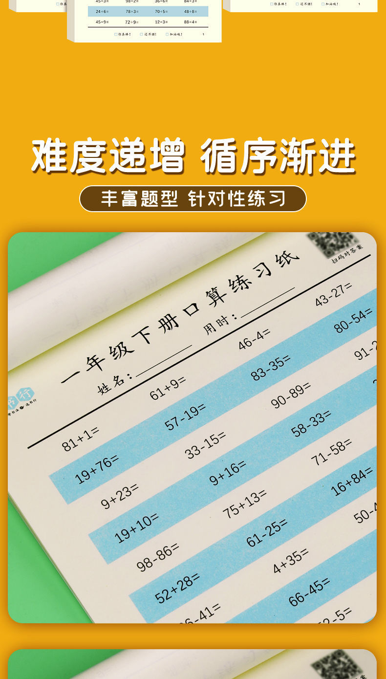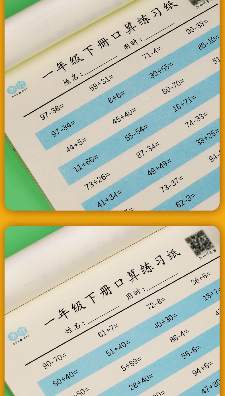 【扫码对答案】 书行小学1-4年级上下册口算练习纸 共2400道题