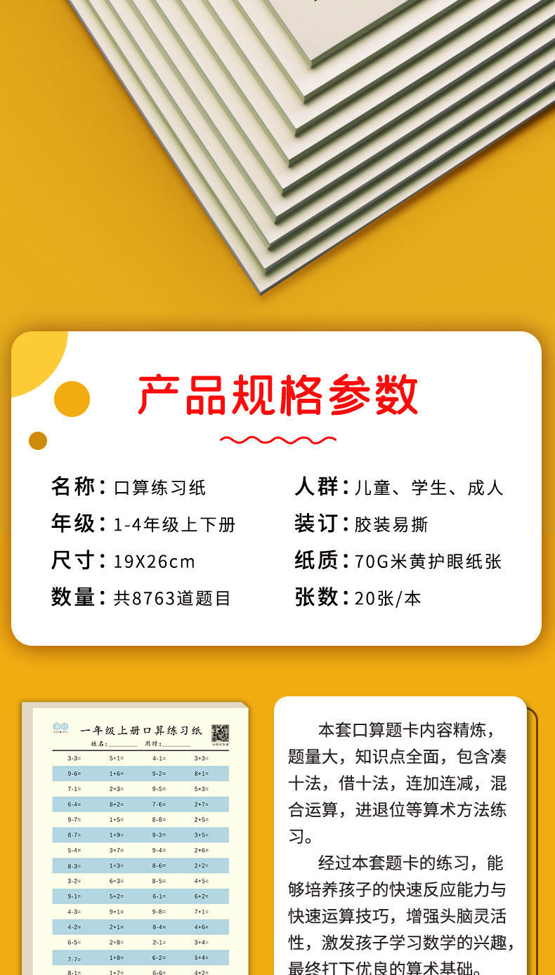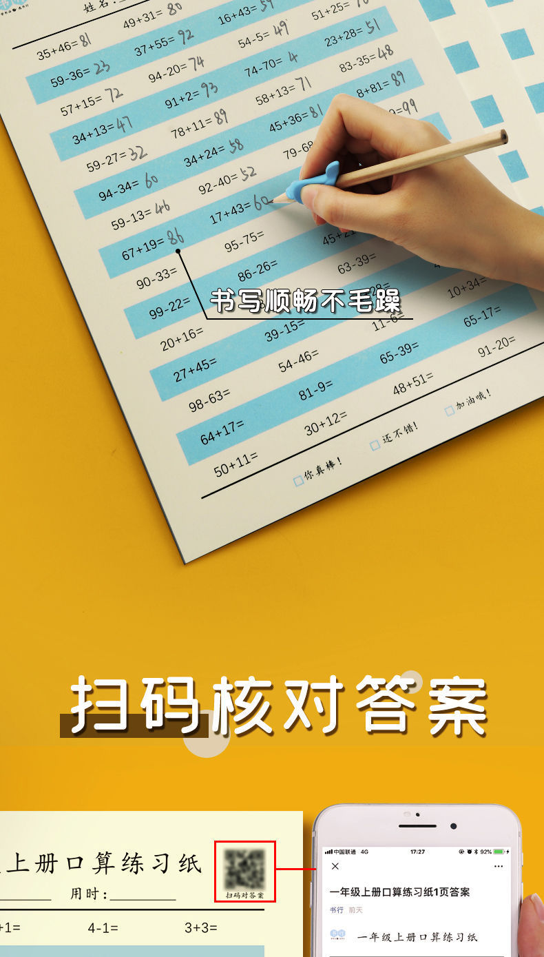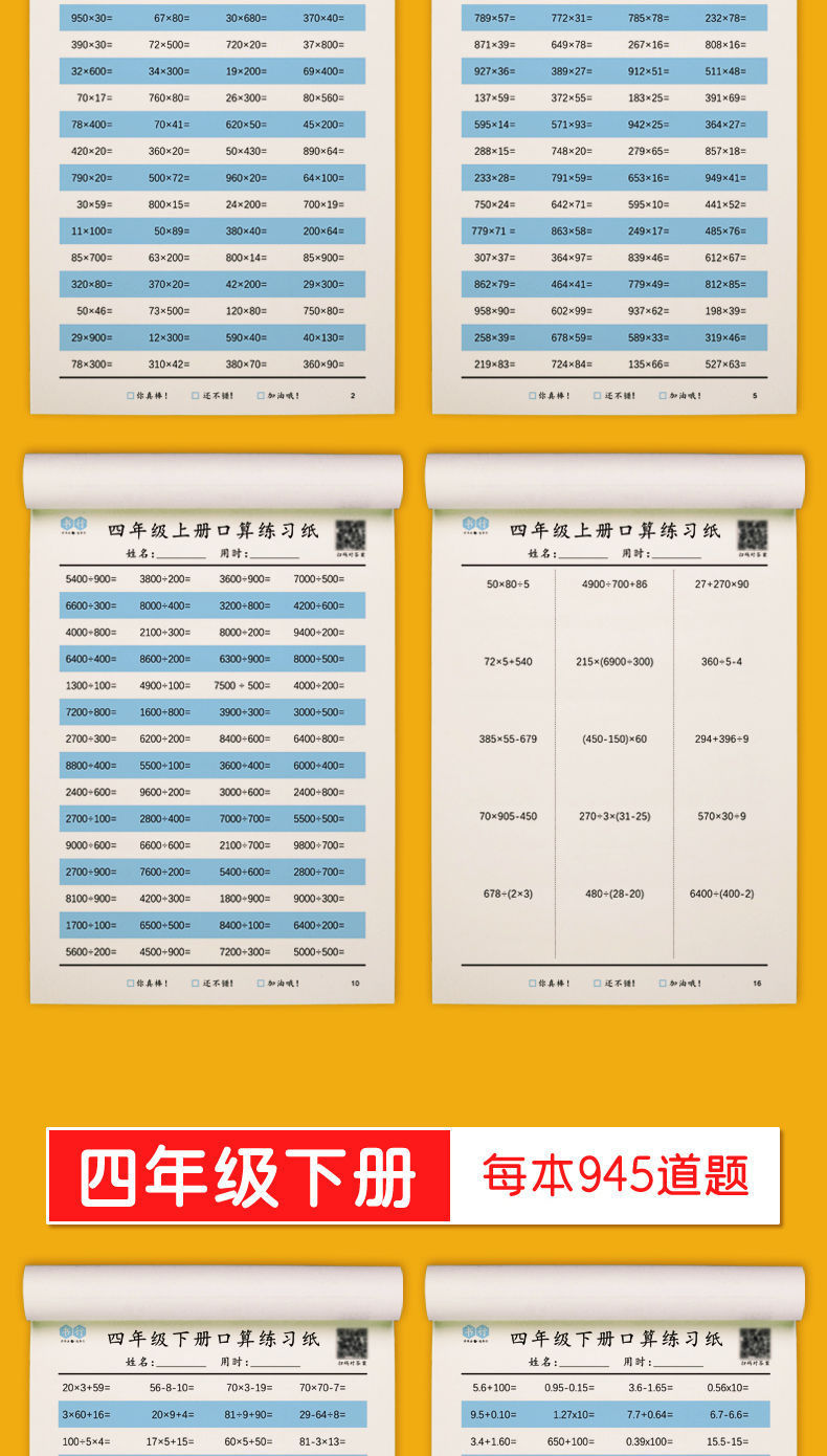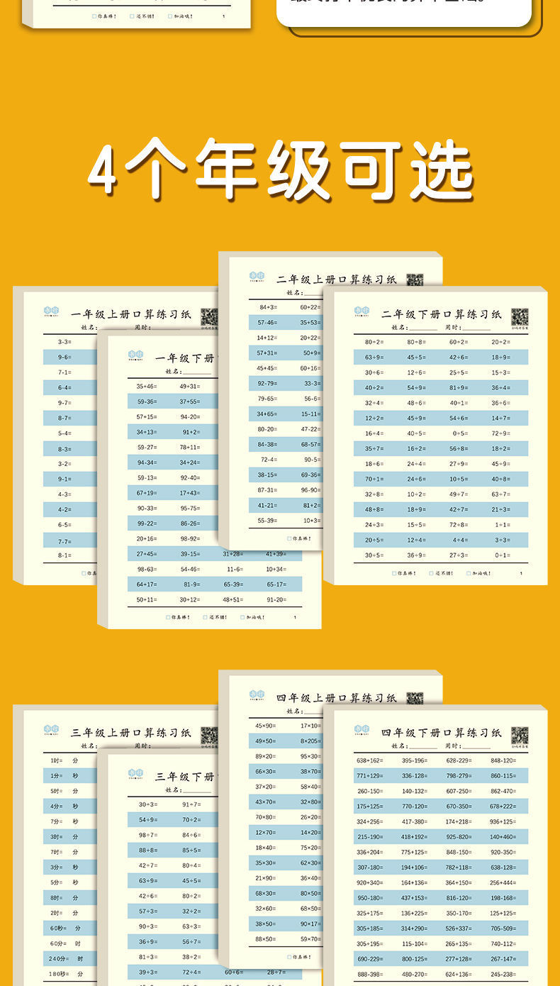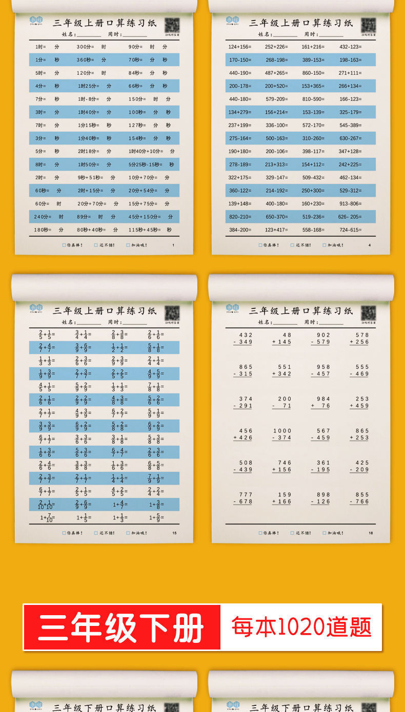 【扫码对答案】 书行小学1-4年级上下册口算练习纸 共2400道题