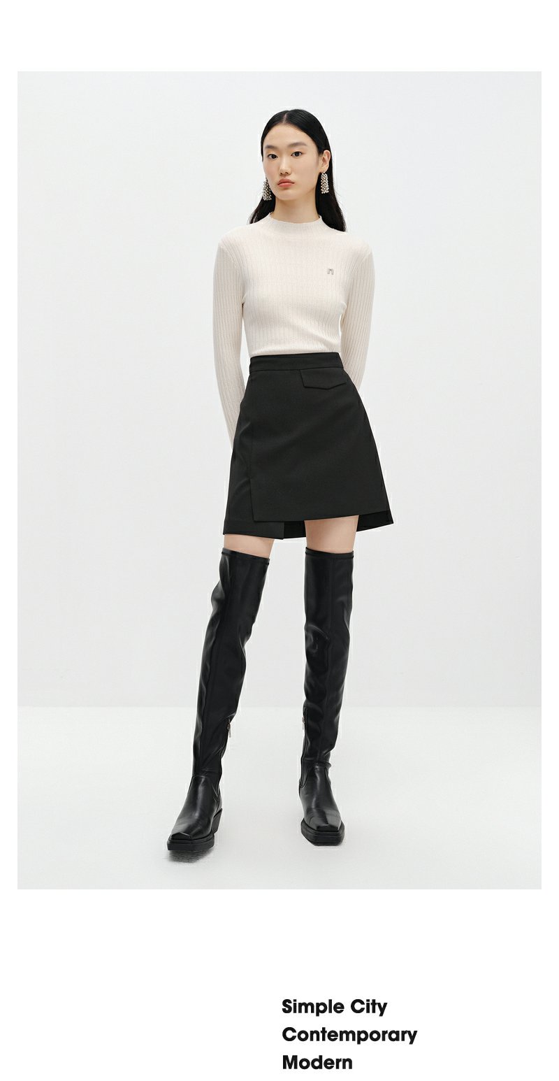 NEELLY纳俪商场同款不规则半身裙女冬高腰显瘦百搭时尚遮胯A字裙N22111E01115