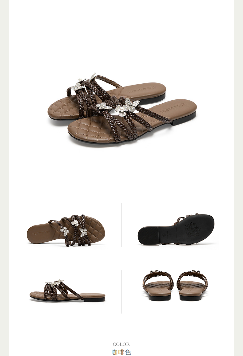 【上新】natursun灵动钻扣一字拖女2026夏季新款编织时尚休闲外穿平底拖鞋N26360202