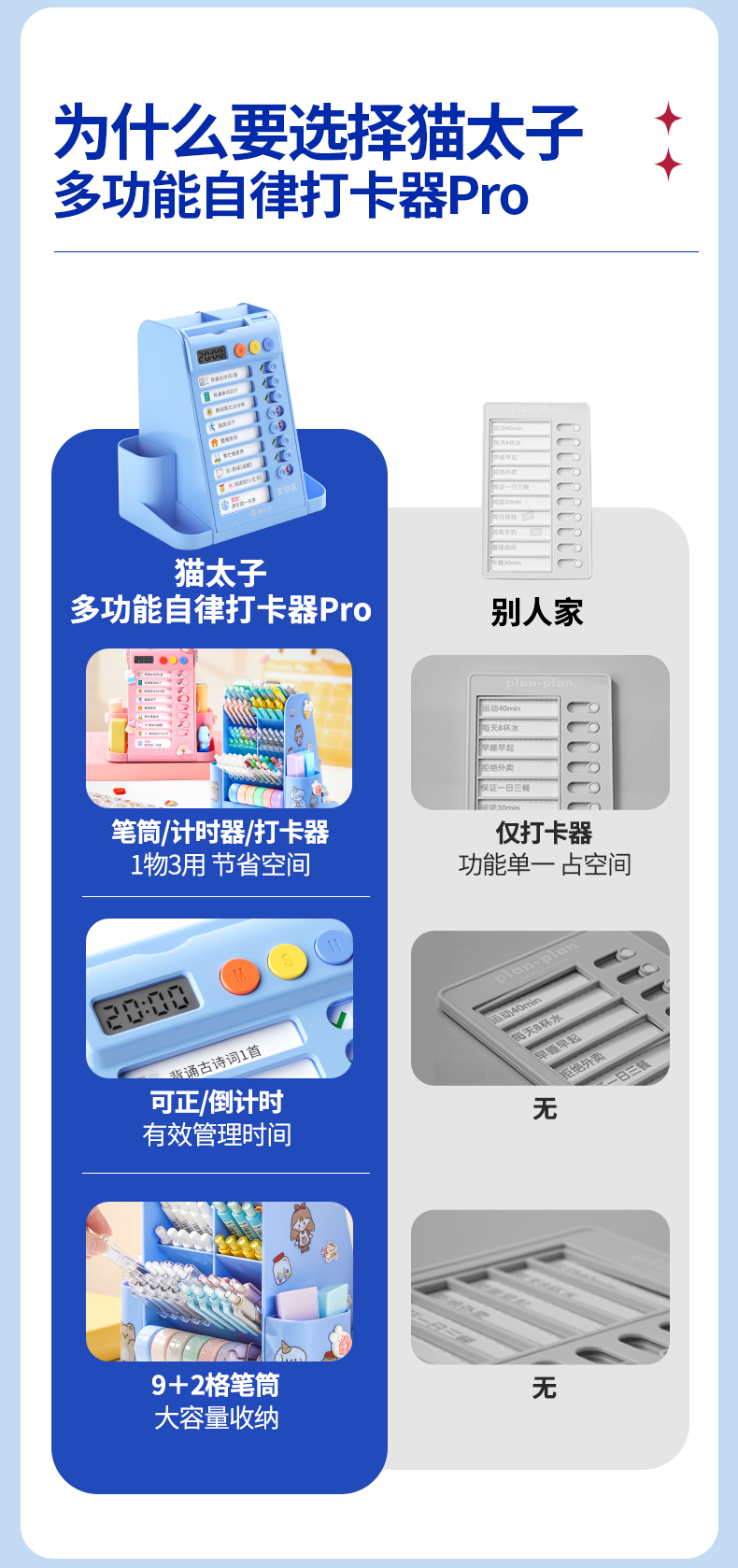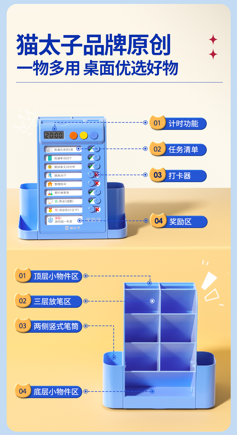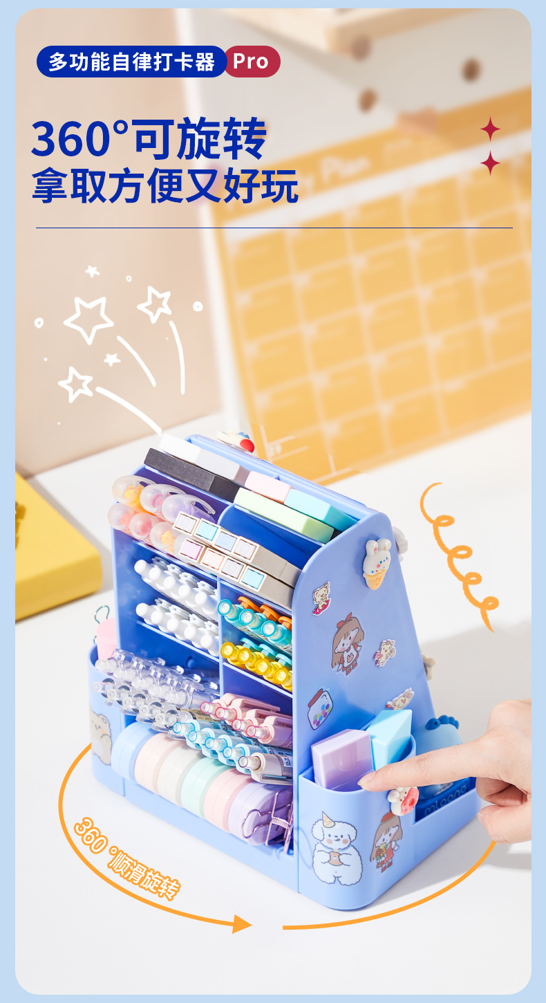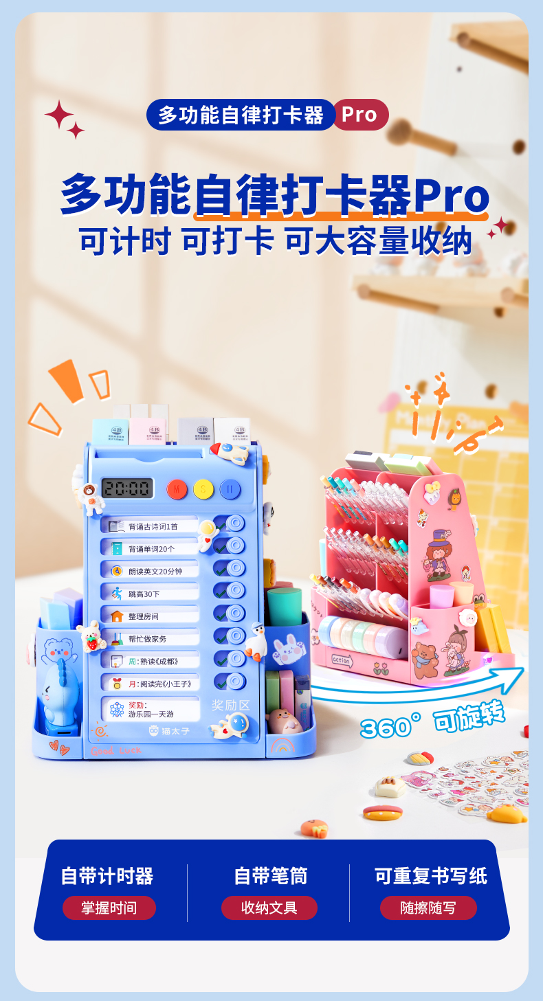【云优选】猫太子自律旋转笔筒大容量学生桌面多功能收纳笔盒儿童男女孩文具超大笔桶打卡器创意高颜值轻奢高级感暑假