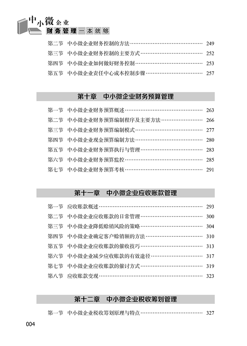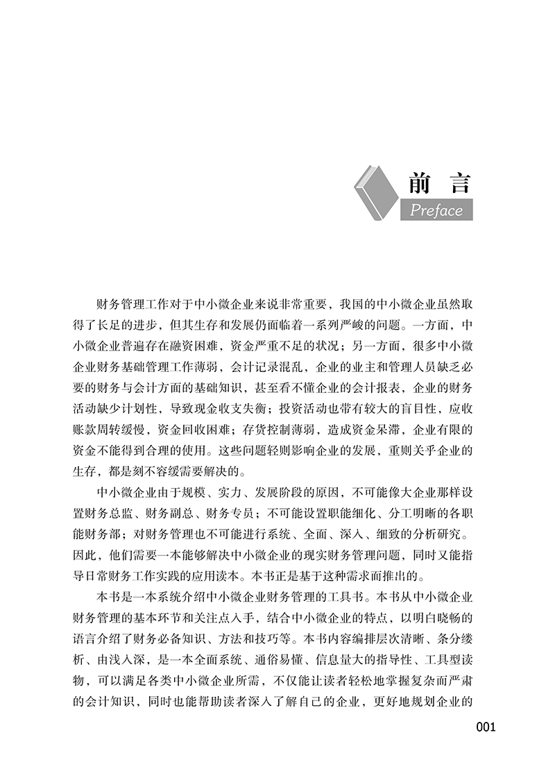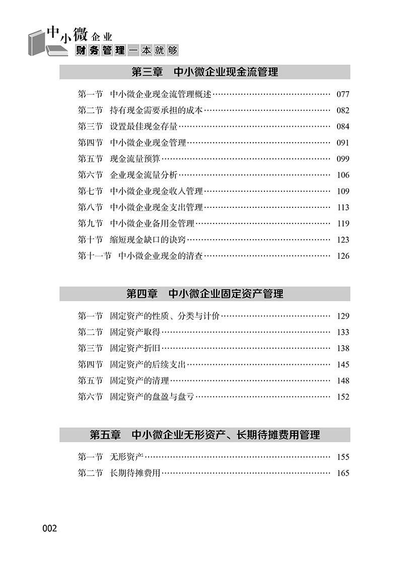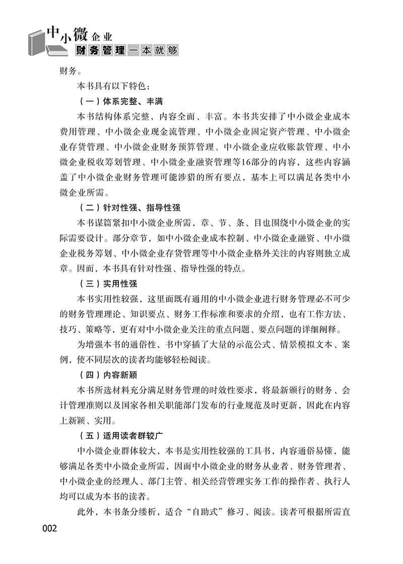 《中小微企业财务管理一本就够》是一本系统地介绍中小企业财务管理理论与实务的工具集。从中小企业财务管理的基本环节和关注点入手,结合中小企业的特点,以明白晓畅的语言介绍了财务管理的知识、方法、技巧等,括中小企业财务管理的基本理论、财务管理制度、财务管理图表等。本书内容编排层次清晰、条分缕析、由浅入深,是一本通俗易懂、信息量较大的中小企业财务管理指导性、工具型读物。
